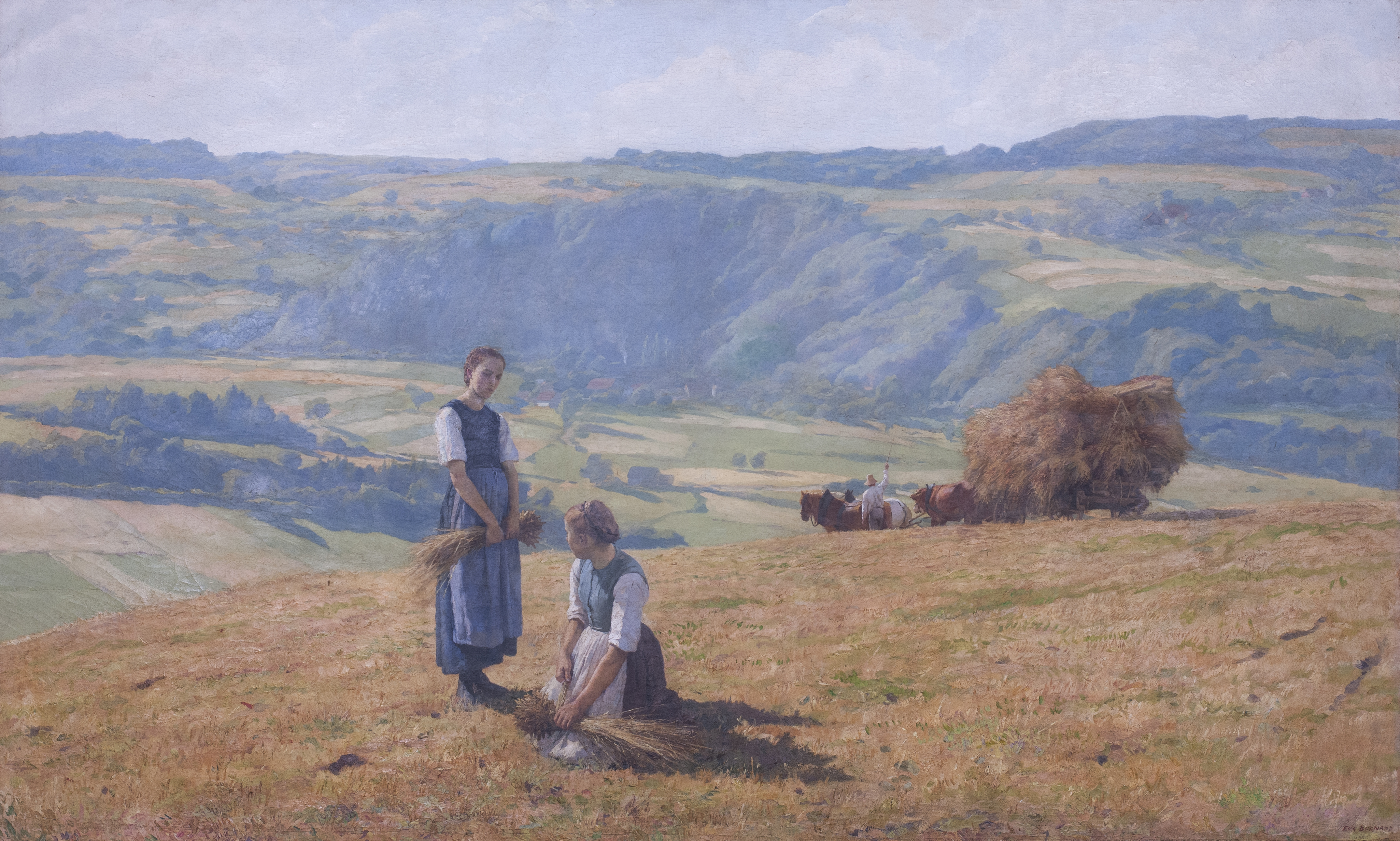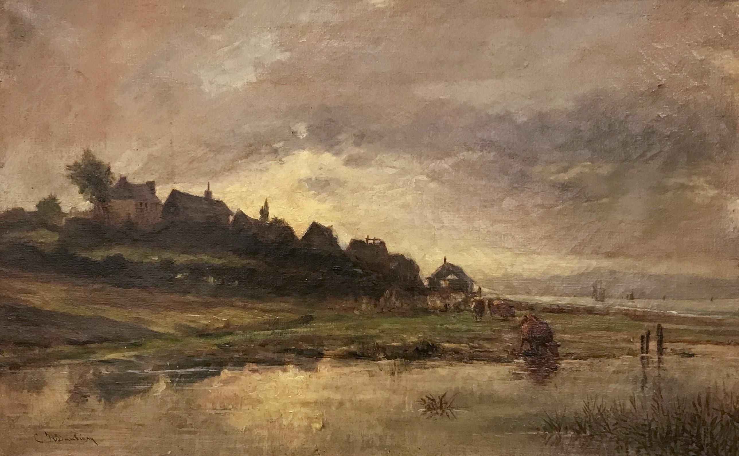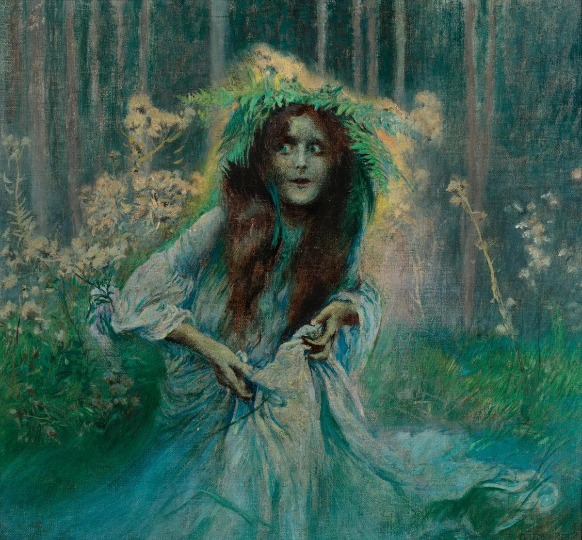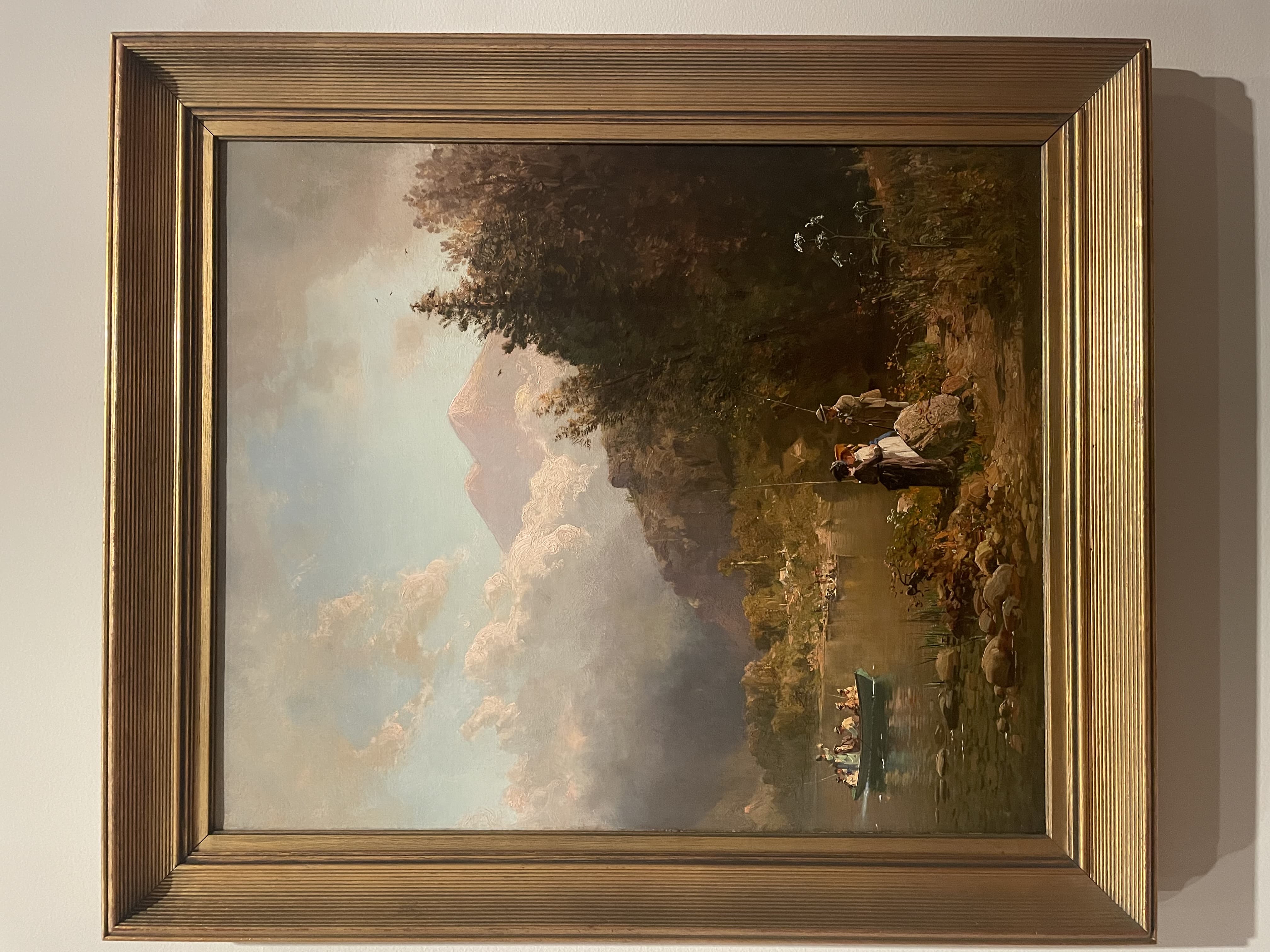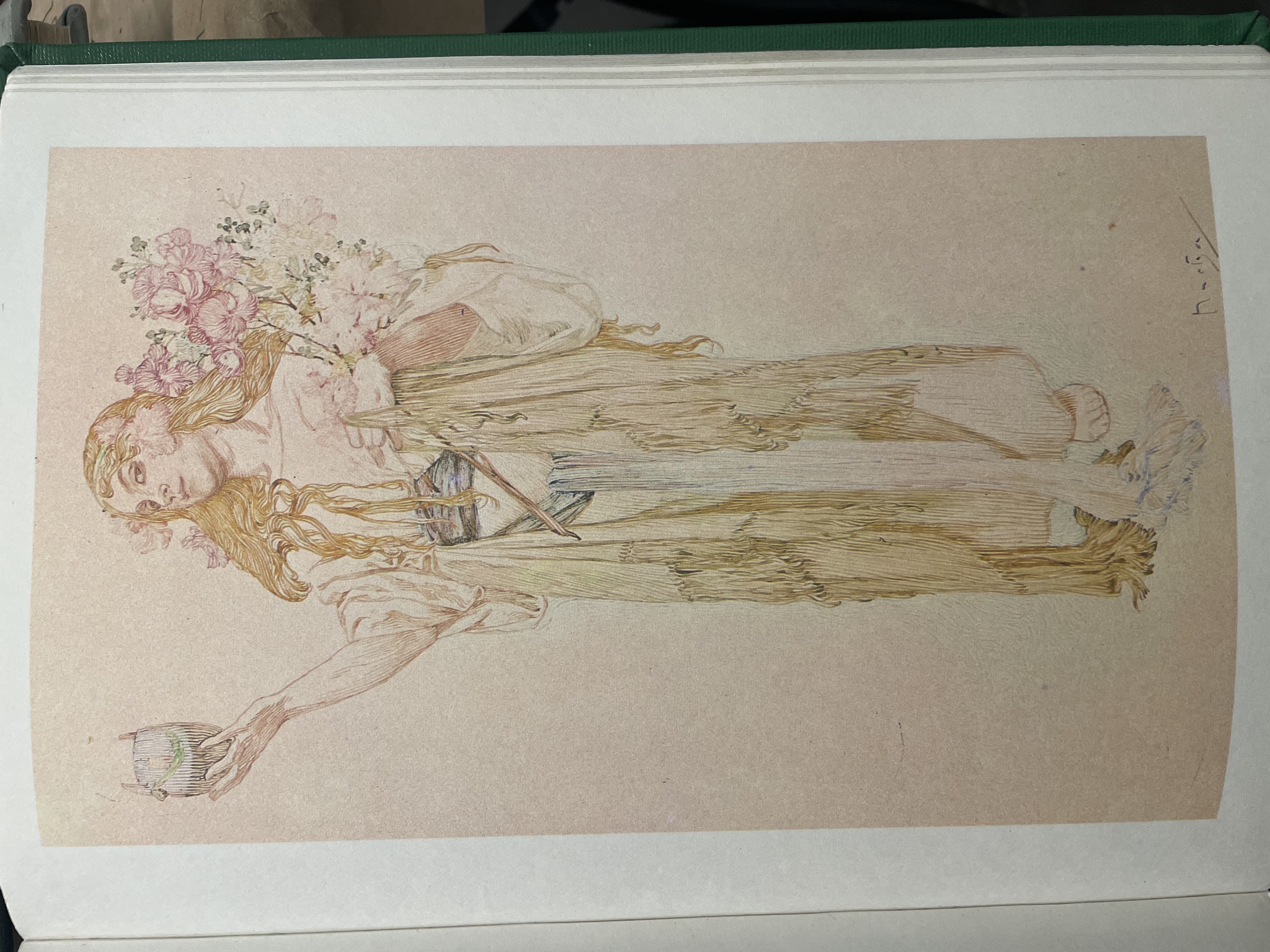 hans dahl young woman gathering flowers by a fjord (late 1900s)