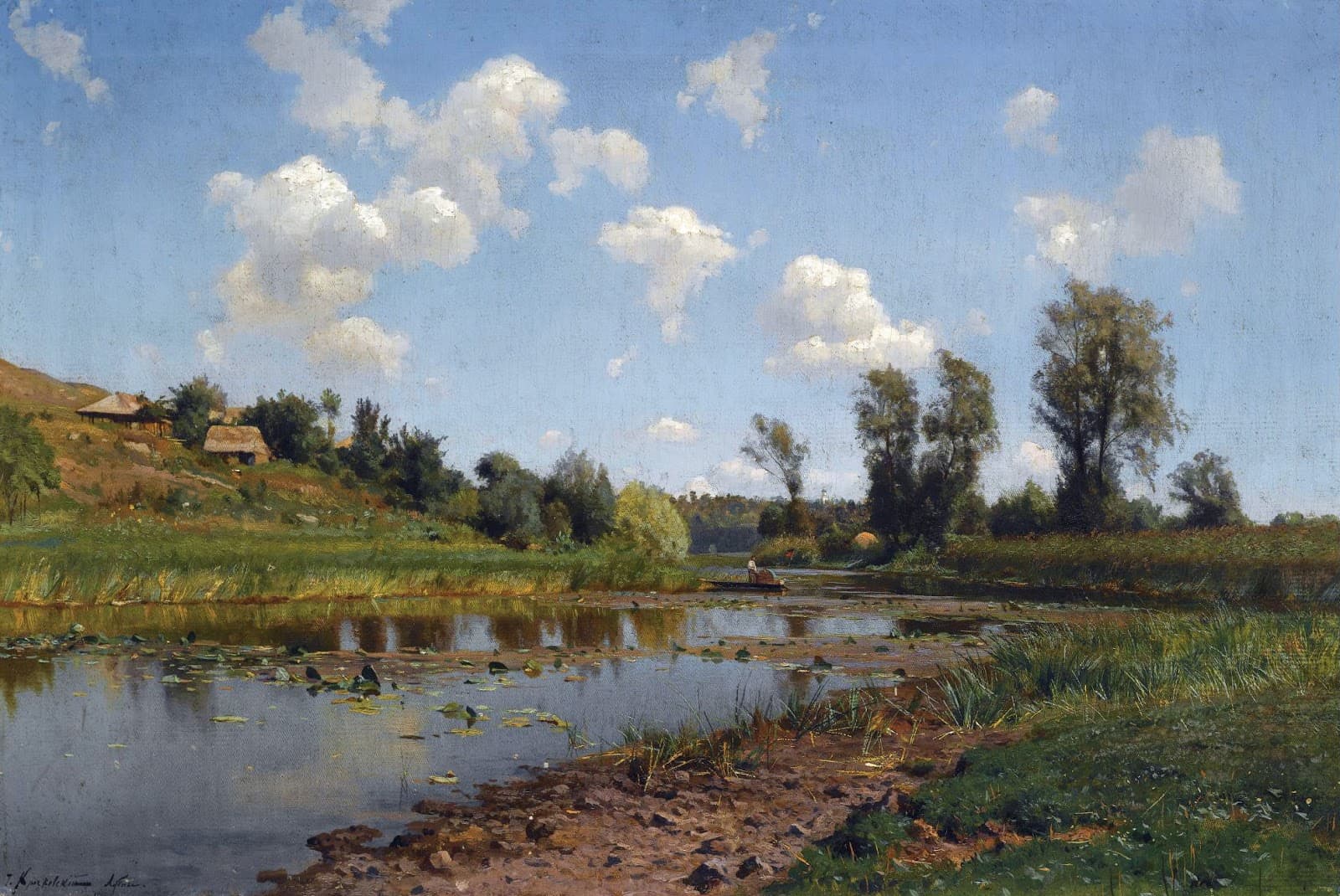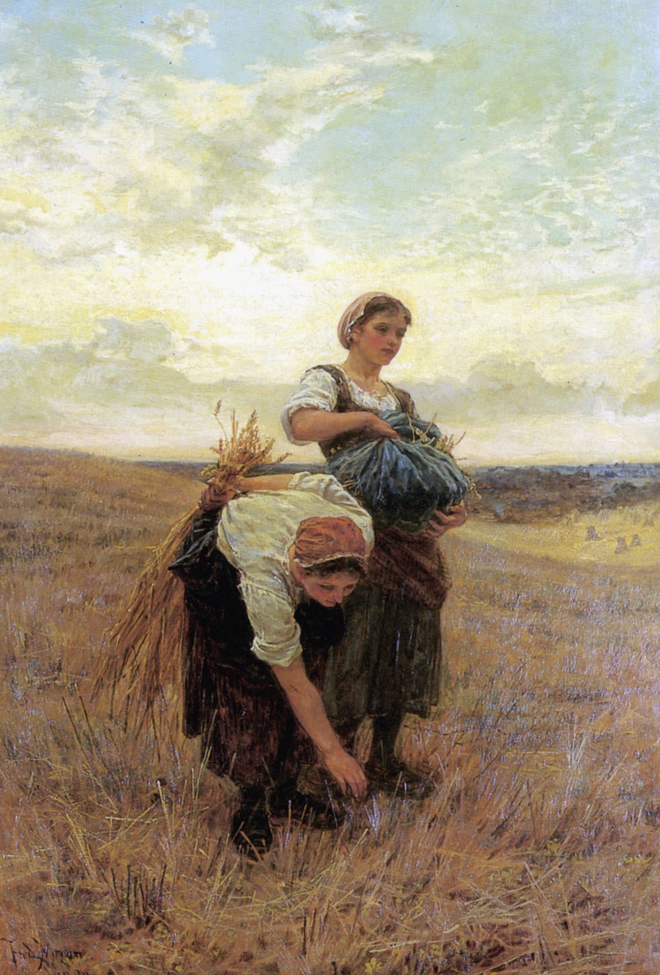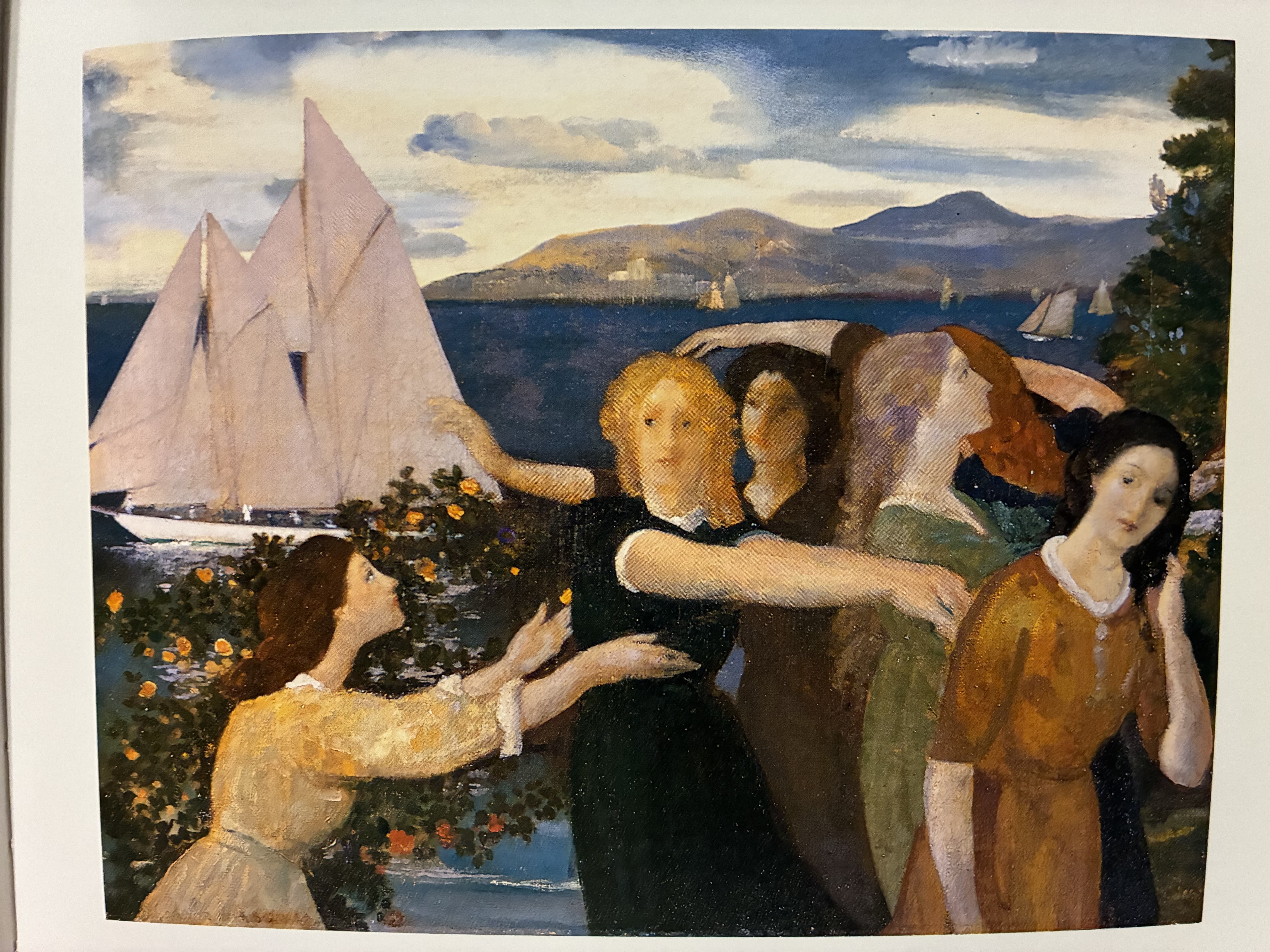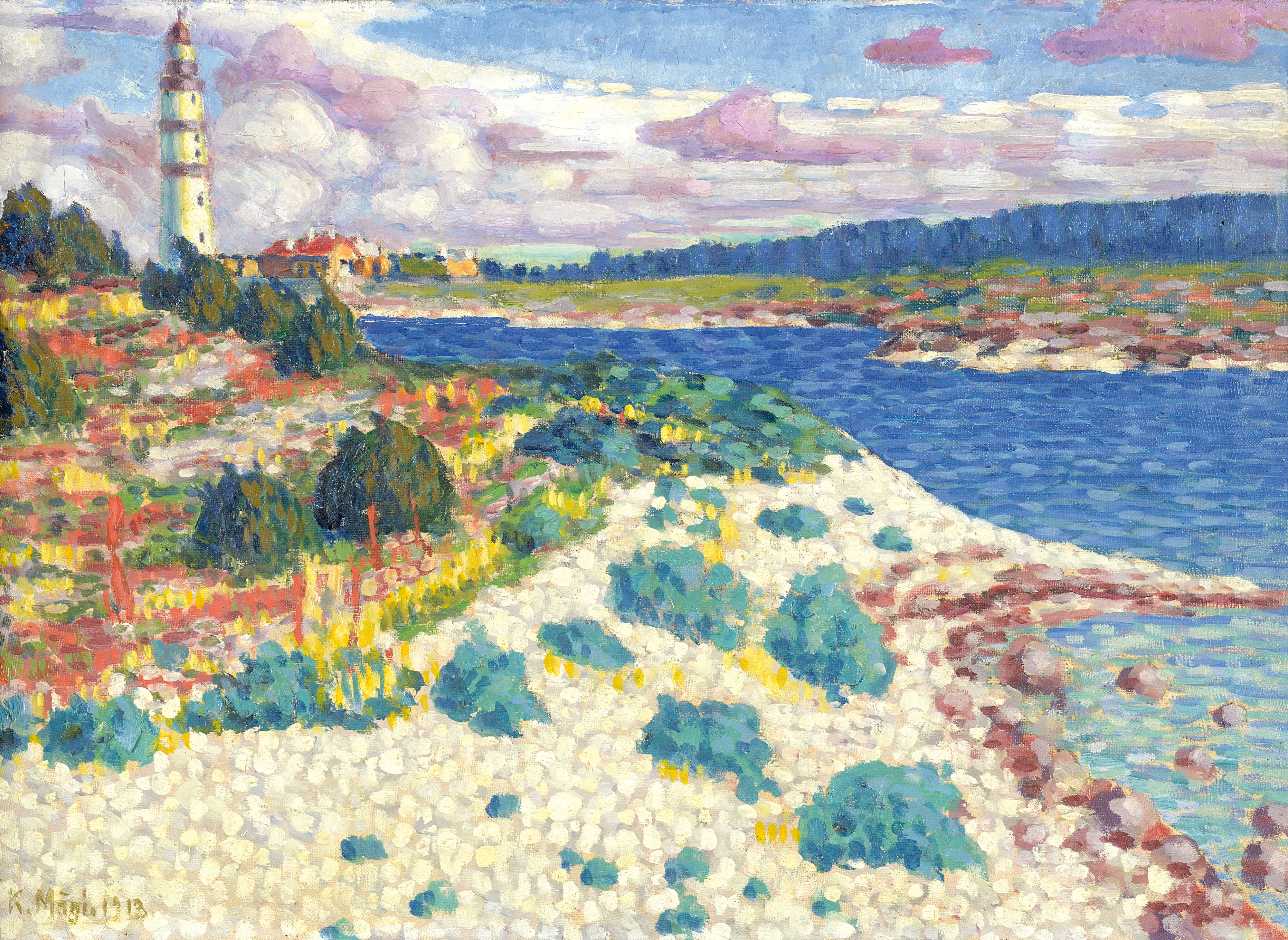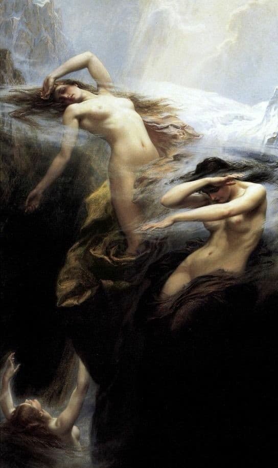 hans dahl young woman gathering flowers by a fjord (late 1900s)