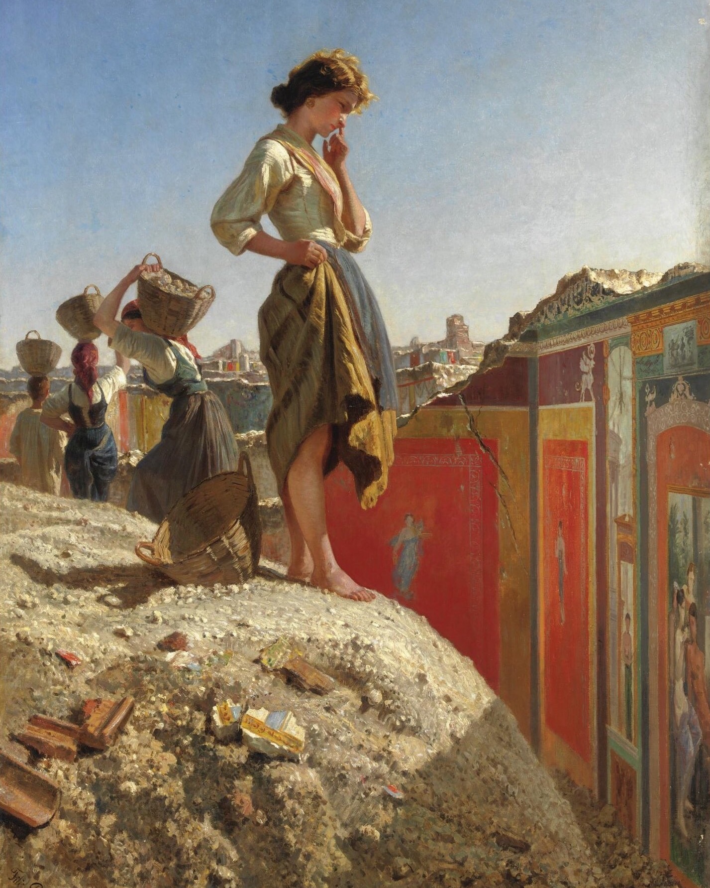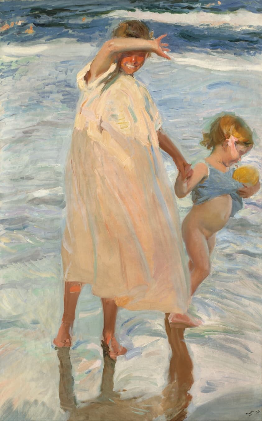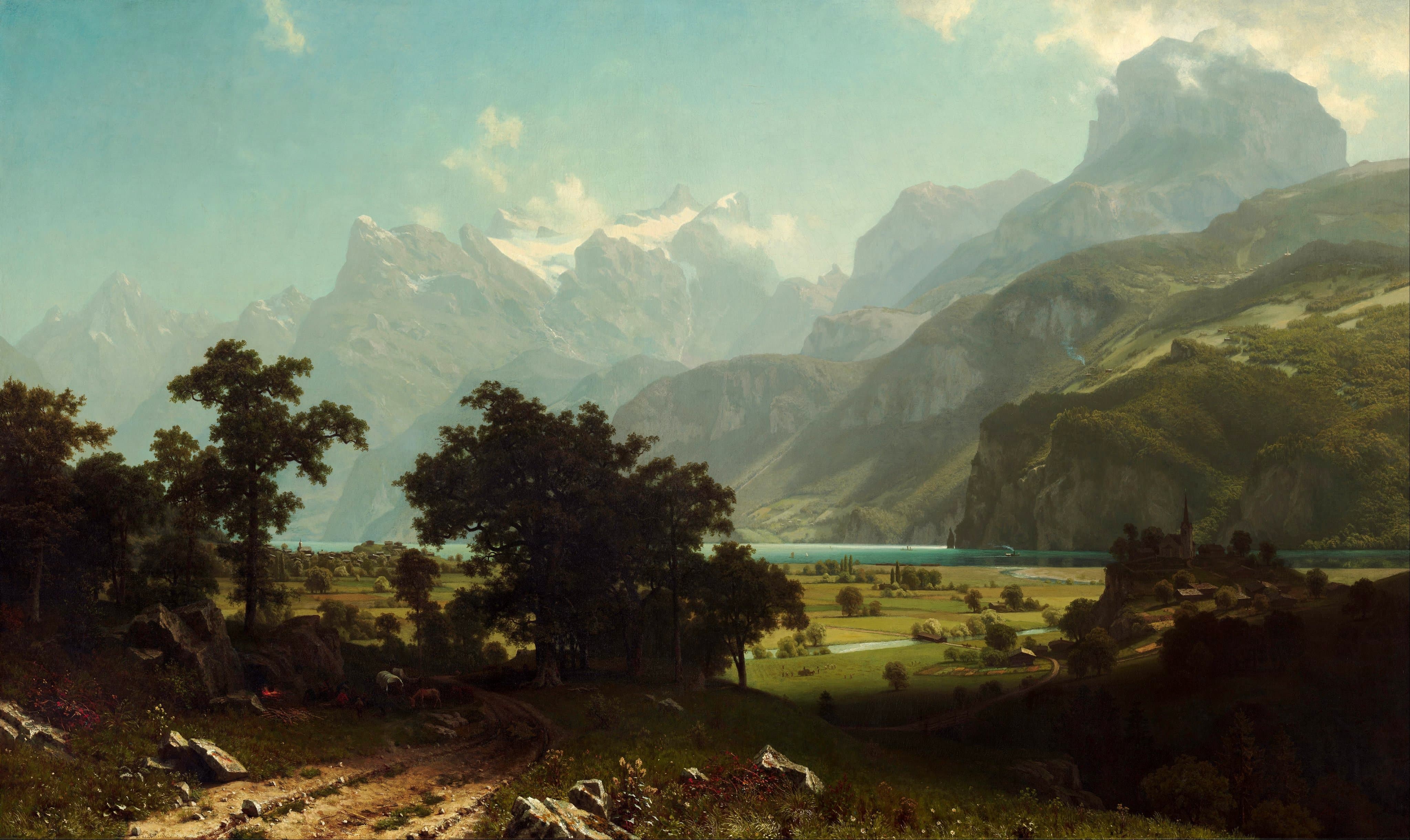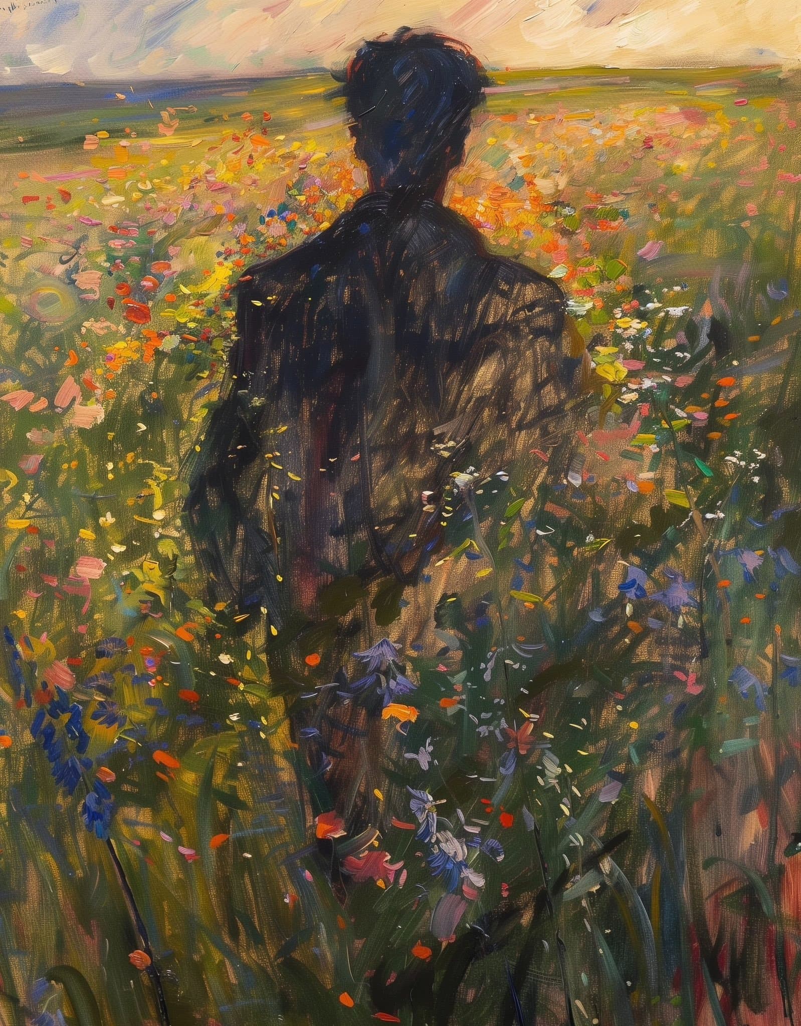 hans dahl young woman gathering flowers by a fjord (late 1900s)