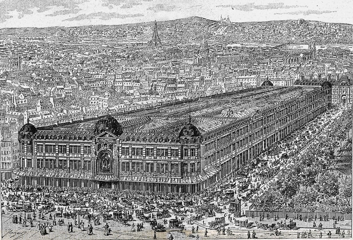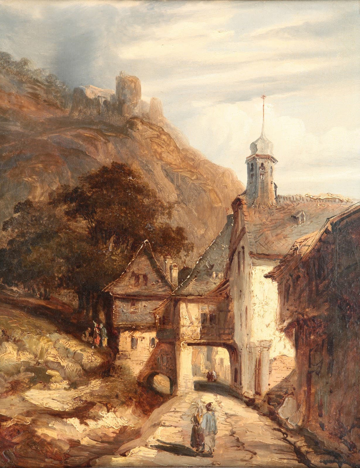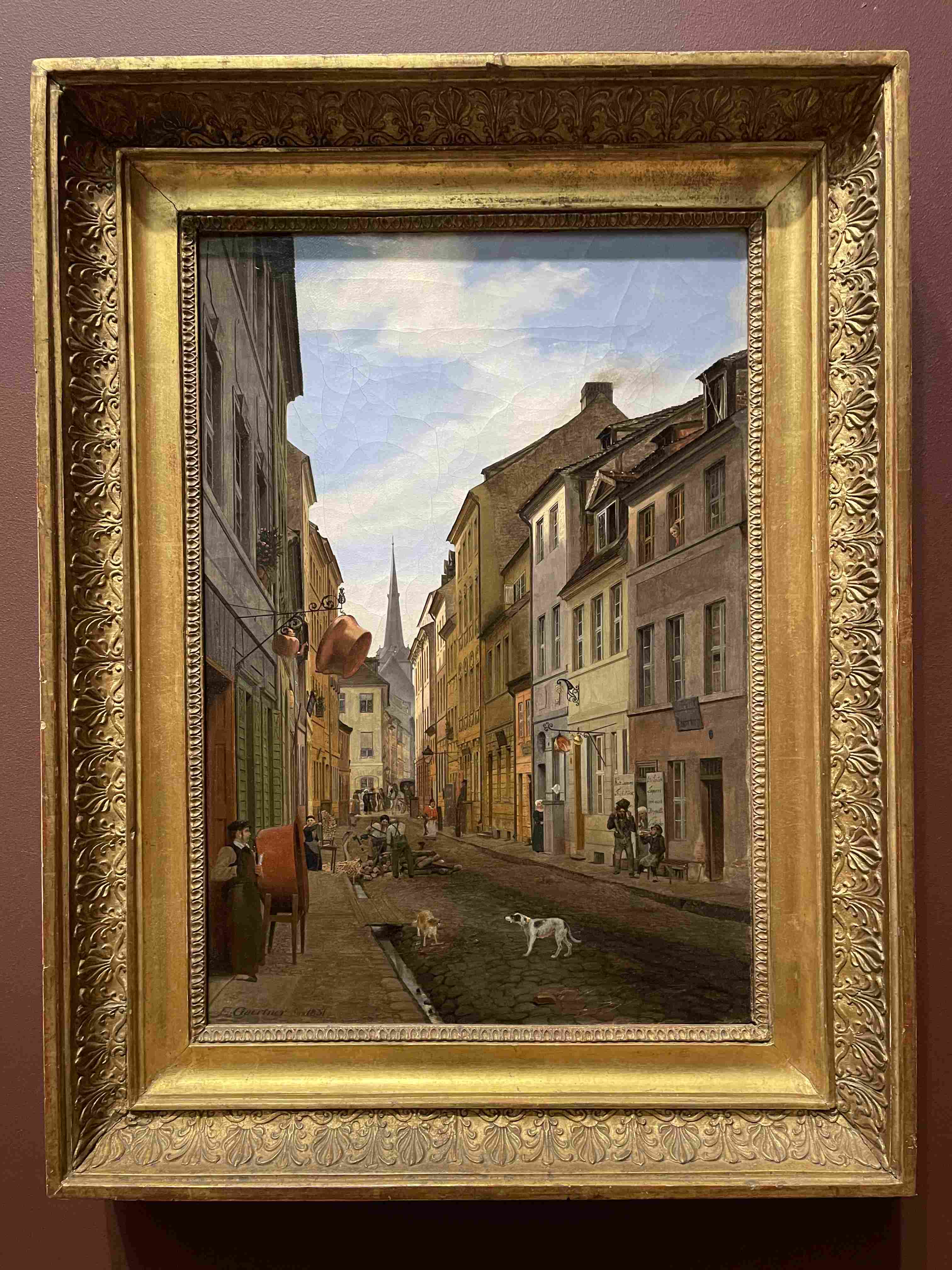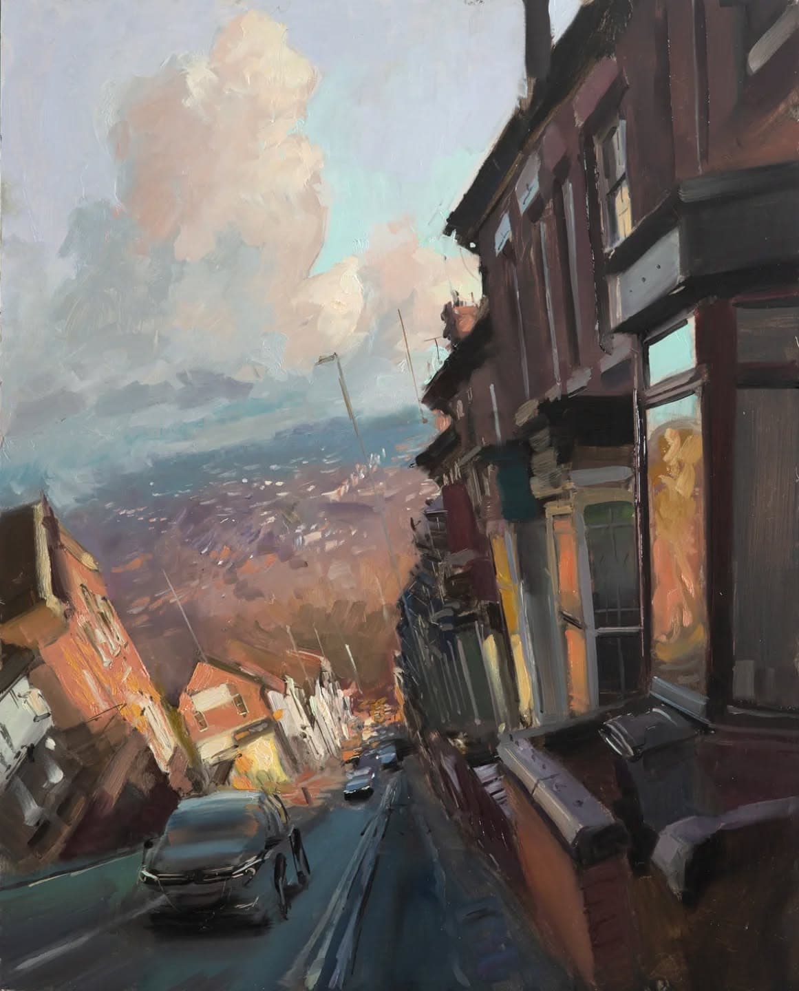 Charcoal and Wash Sketch of a Narrow City Street with Tall Buildings
