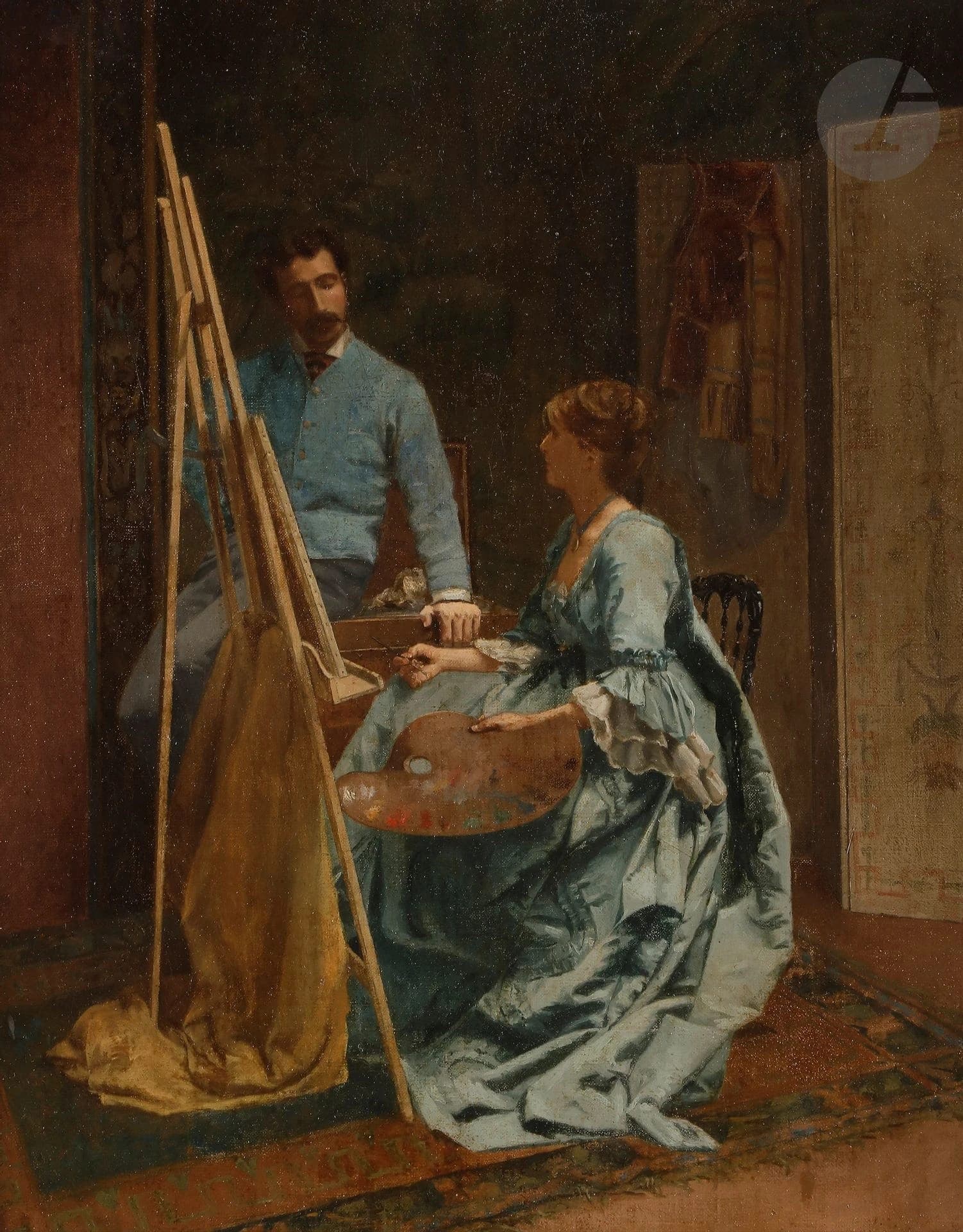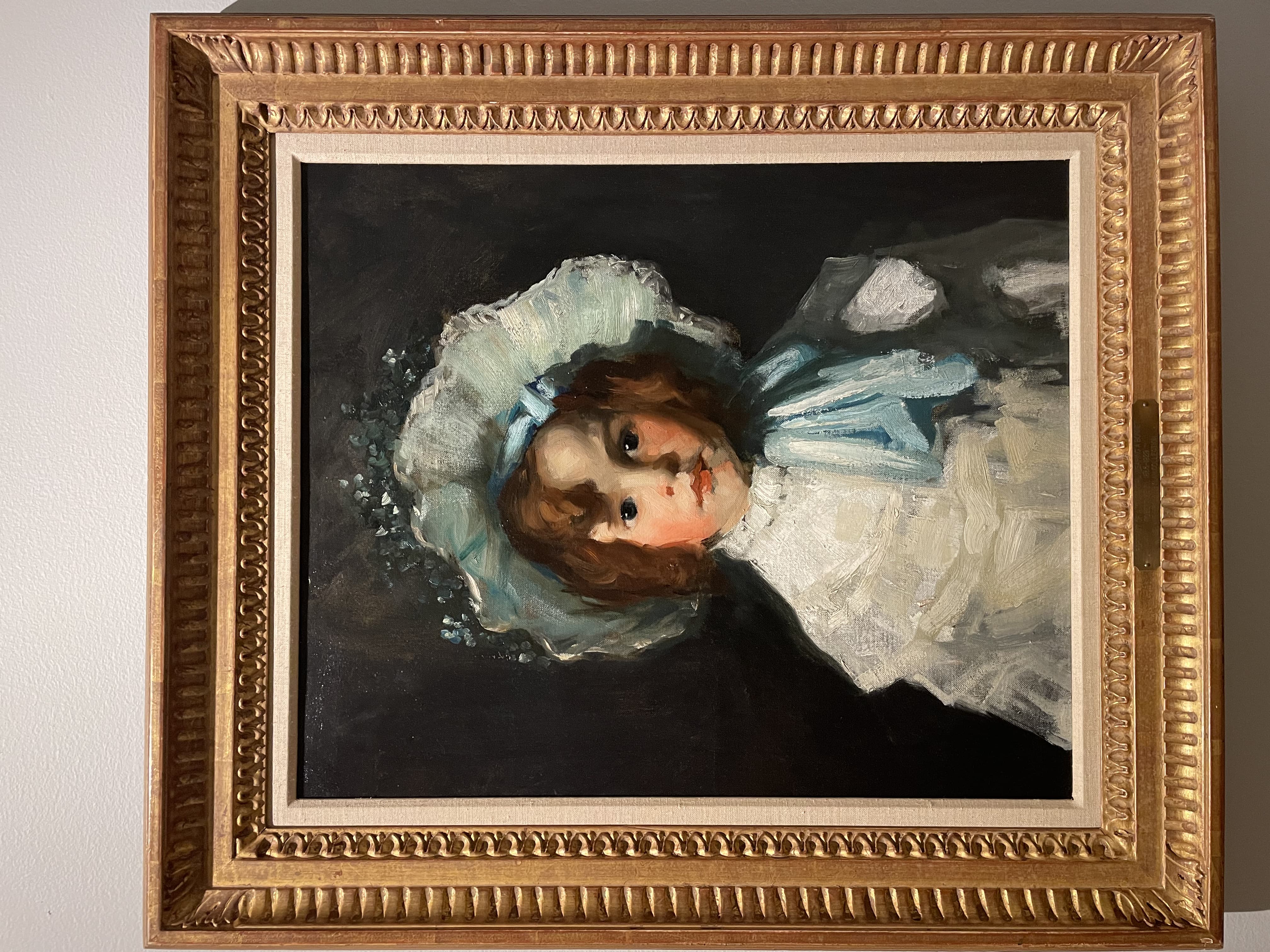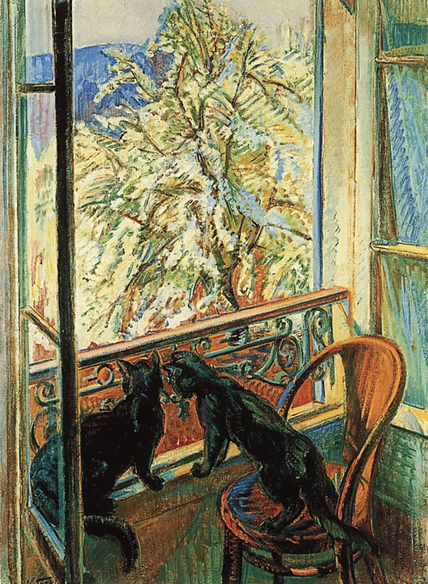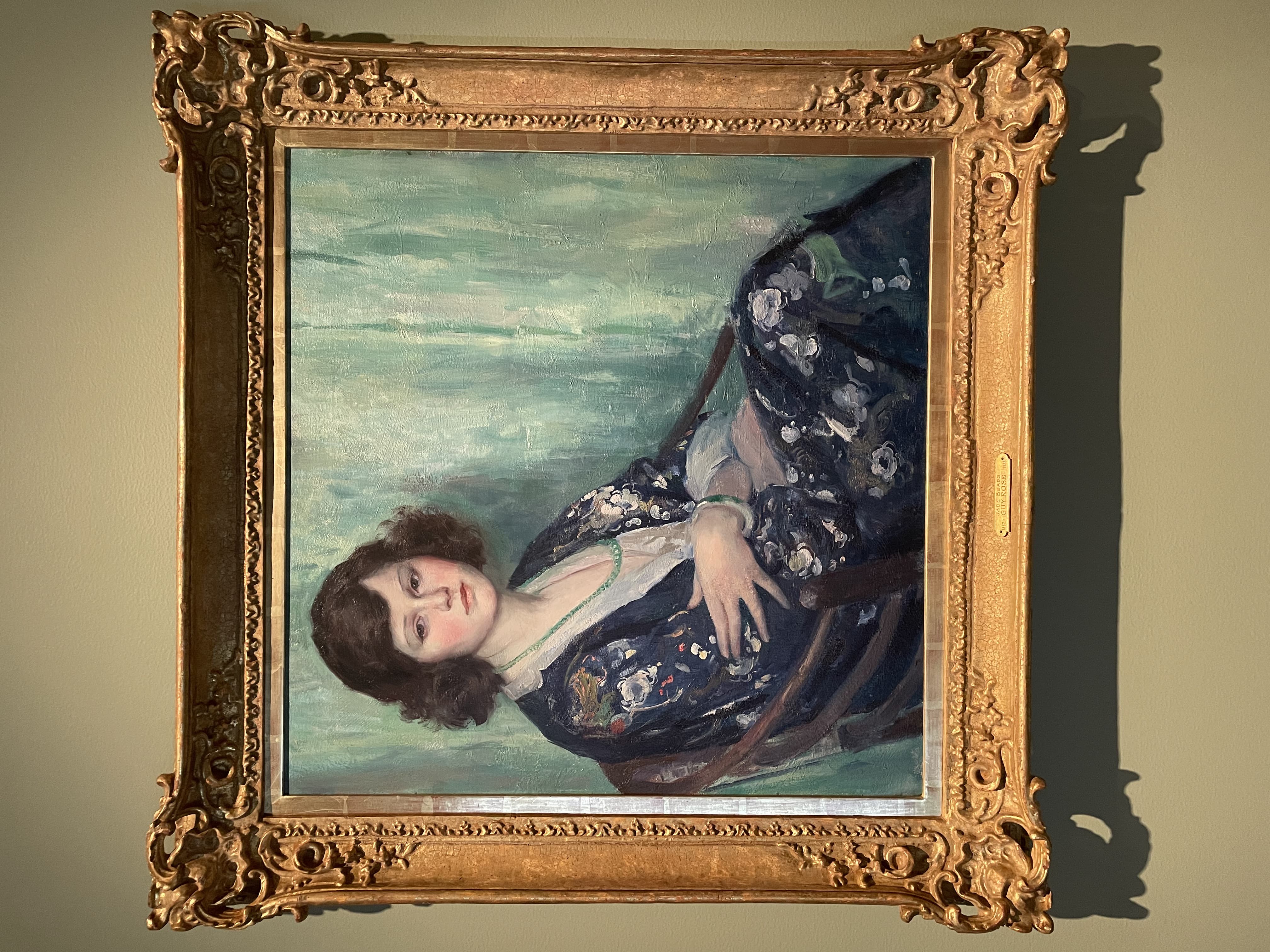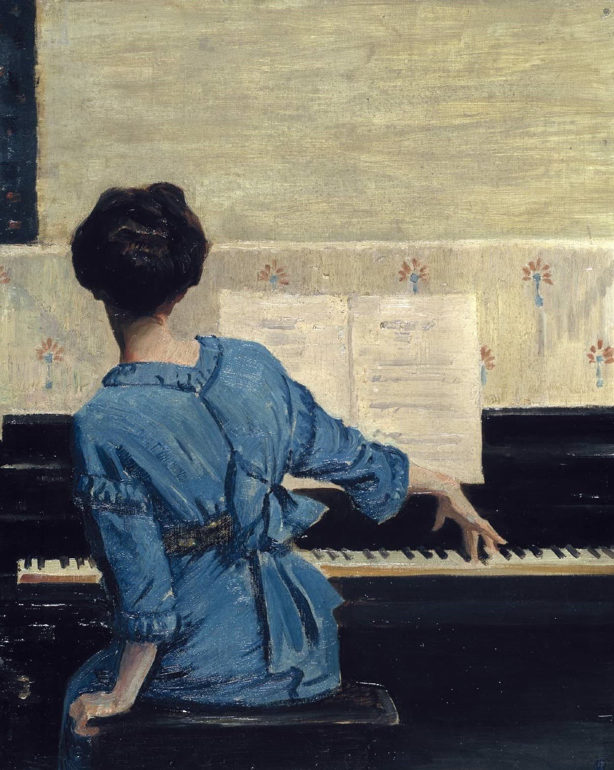 Oil Painting of a Woman in a Blue Dress Sitting in an Open Window
