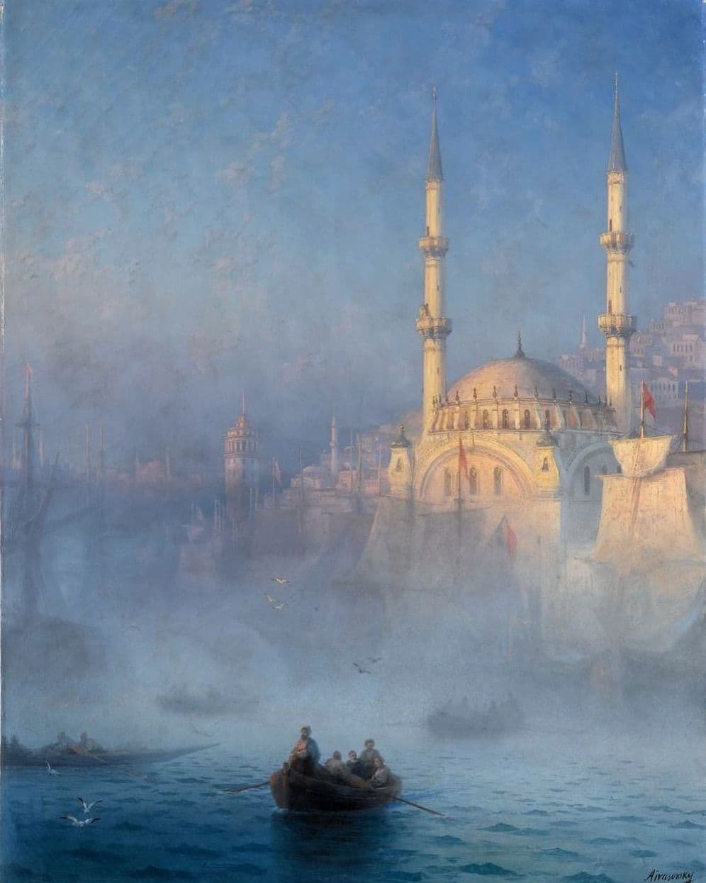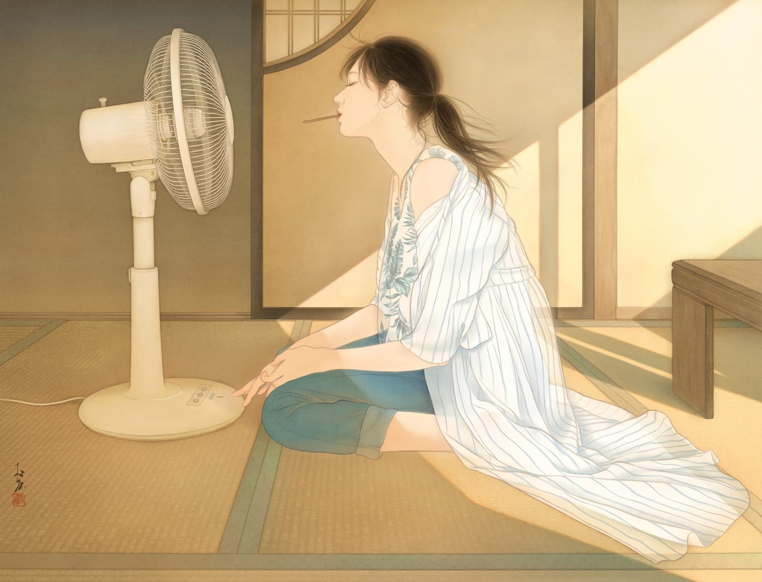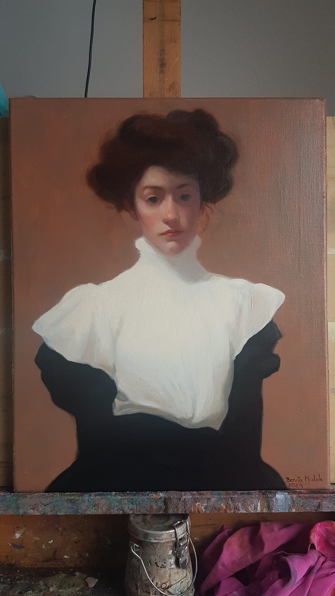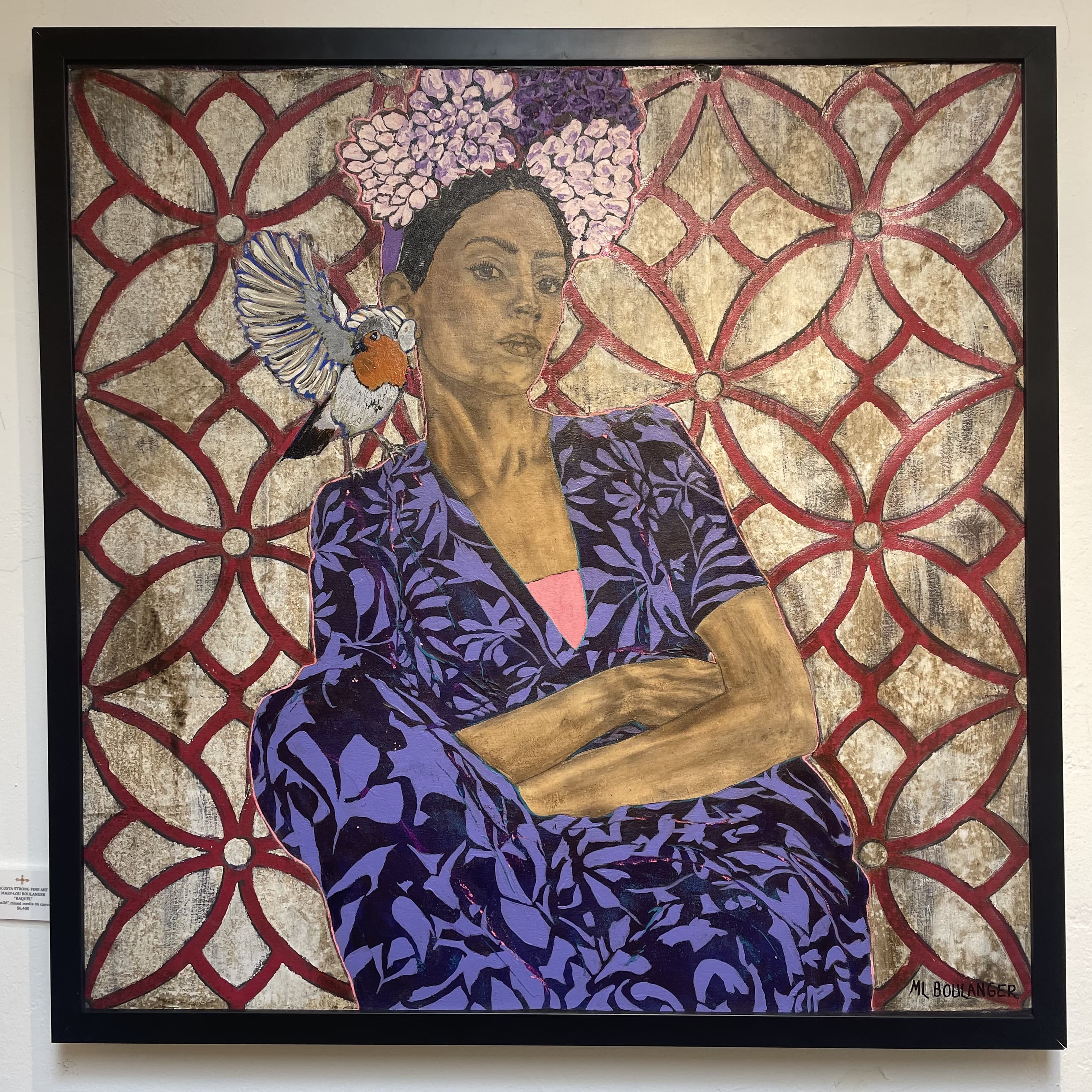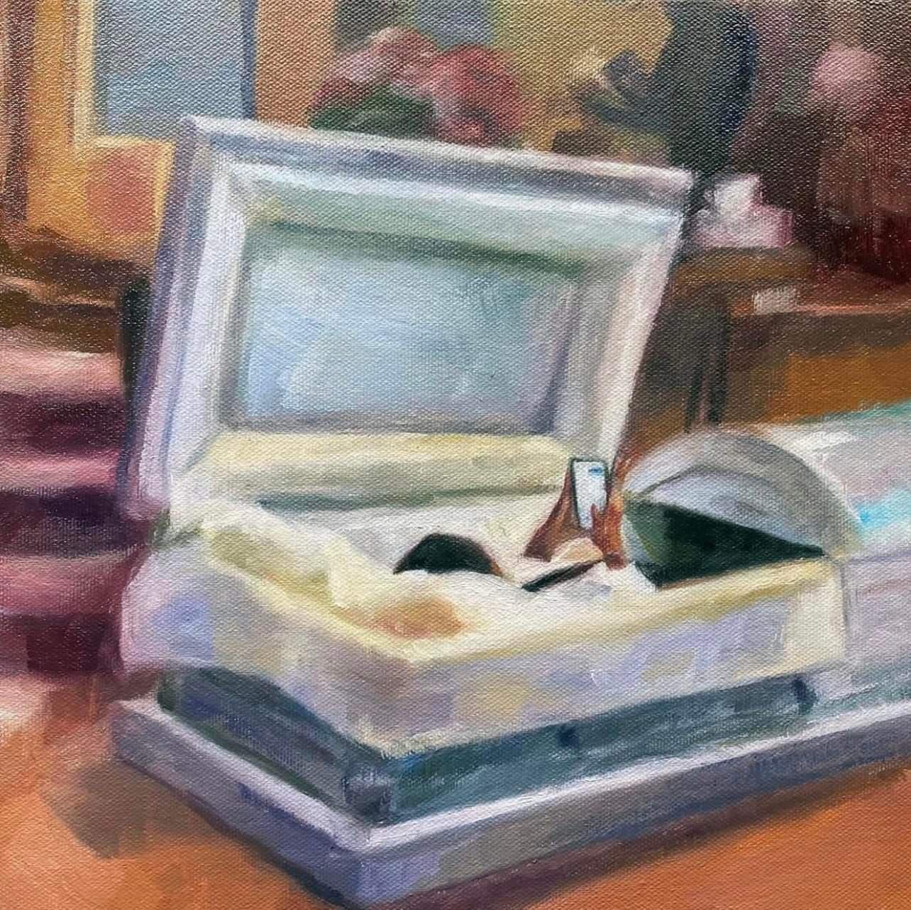 Oil Painting of a Woman in a Blue Dress Sitting in an Open Window