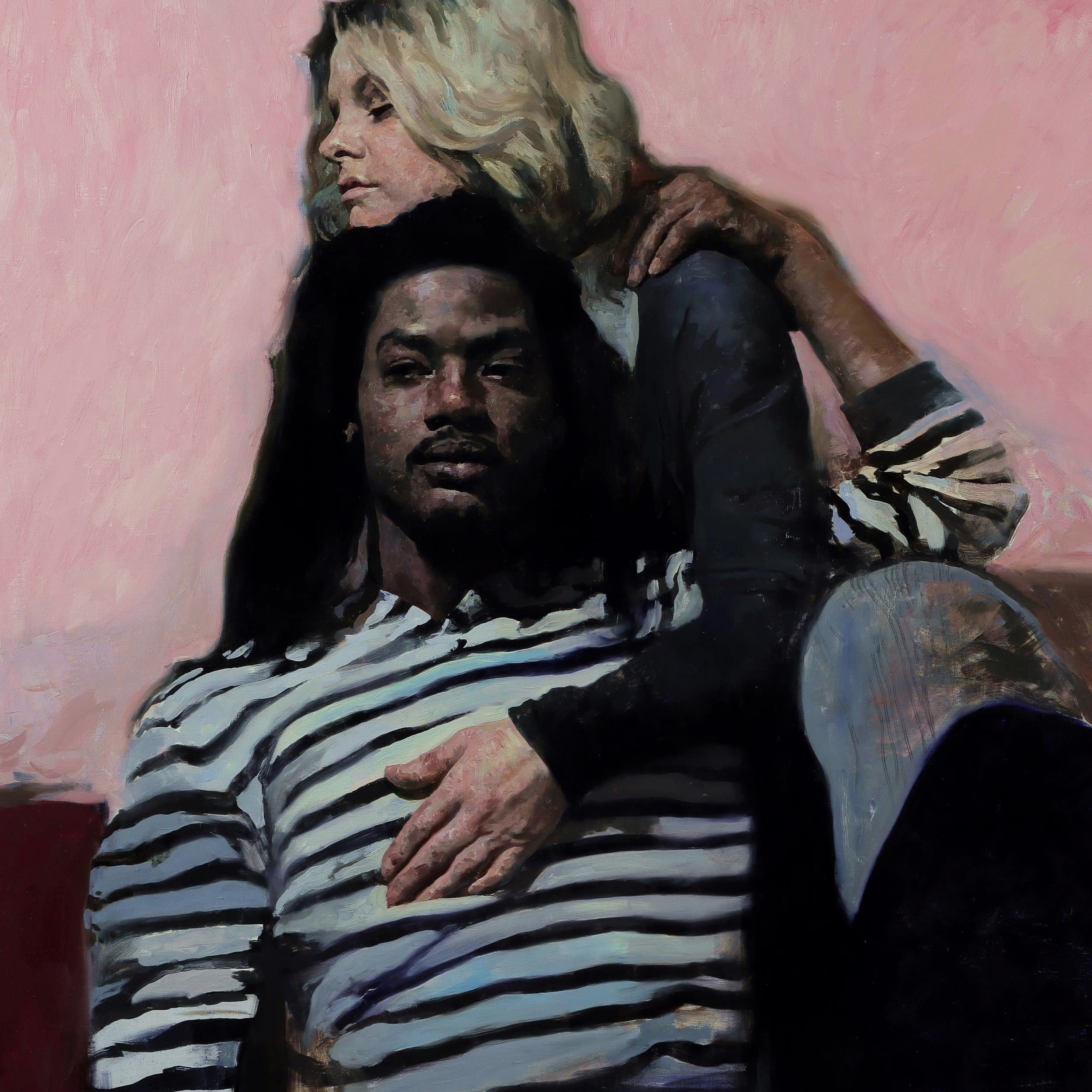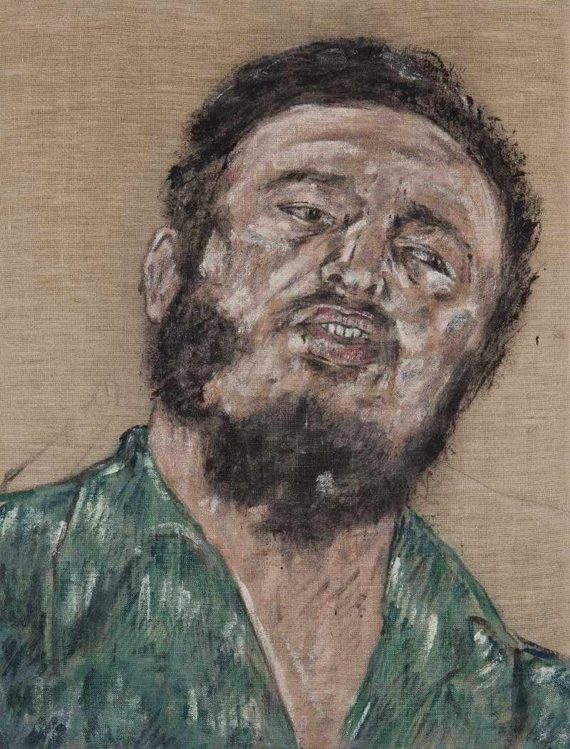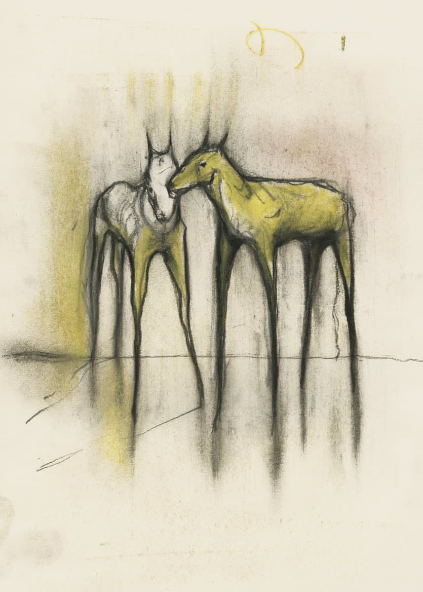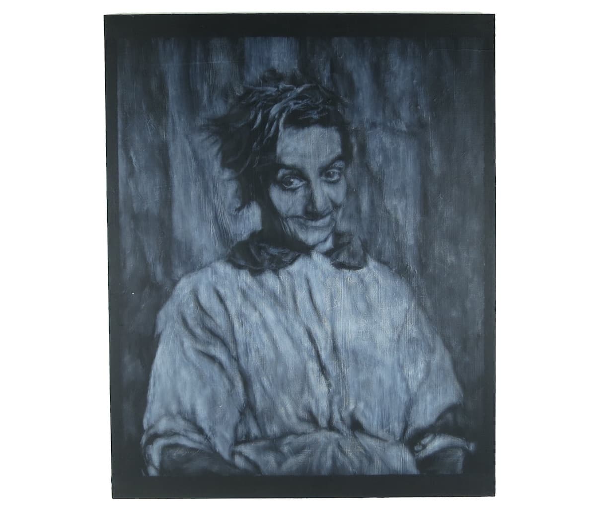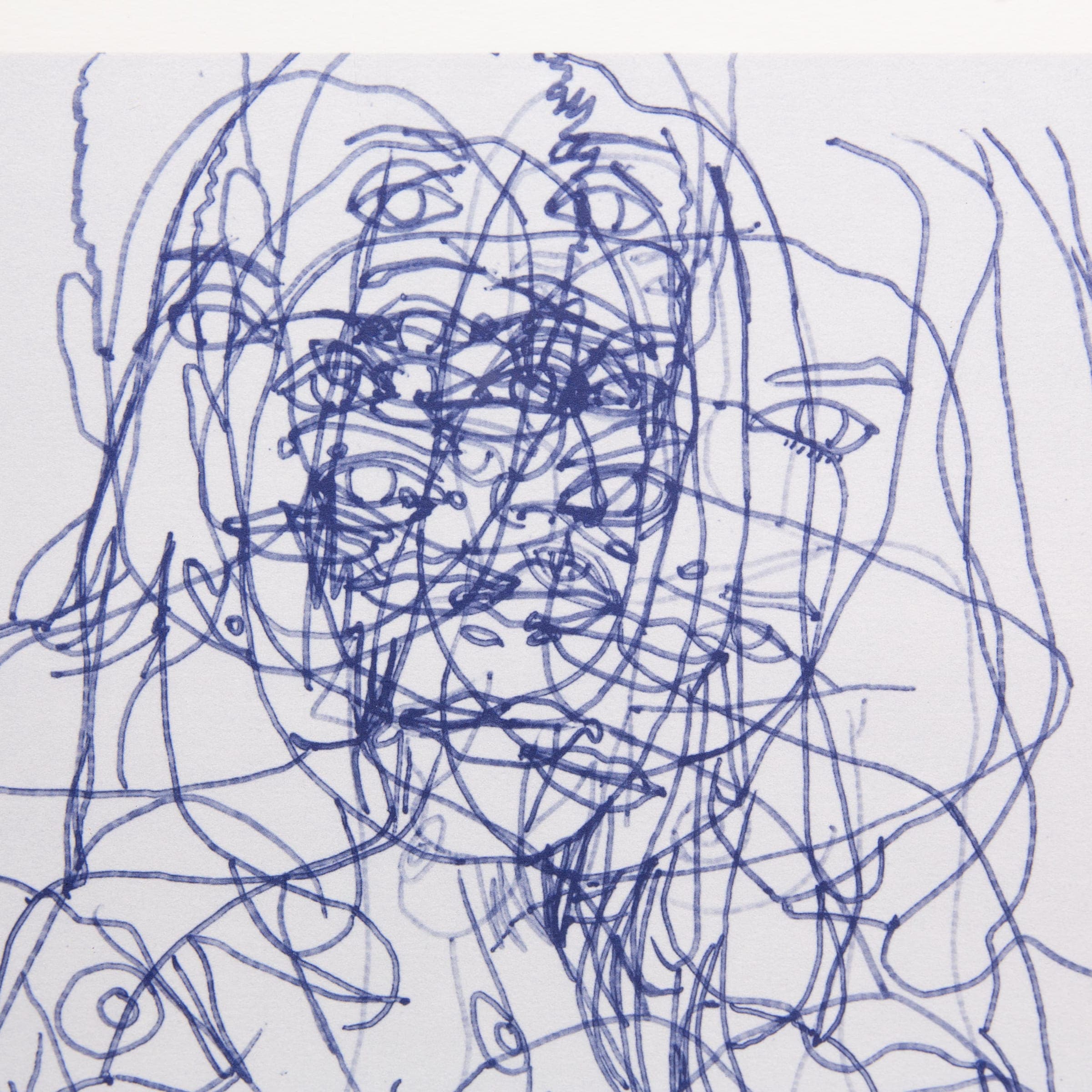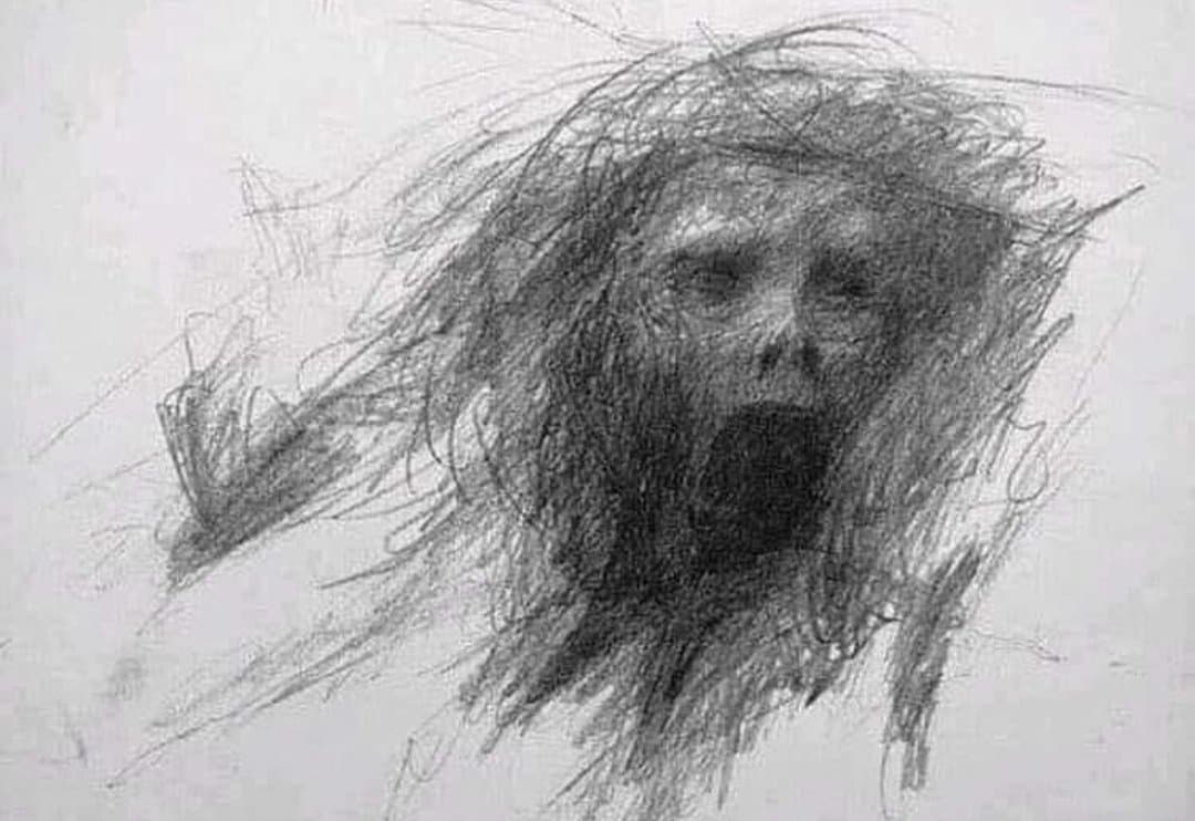 Black Scribble Drawing Diptych Showing Two Figures and a Male Portrait