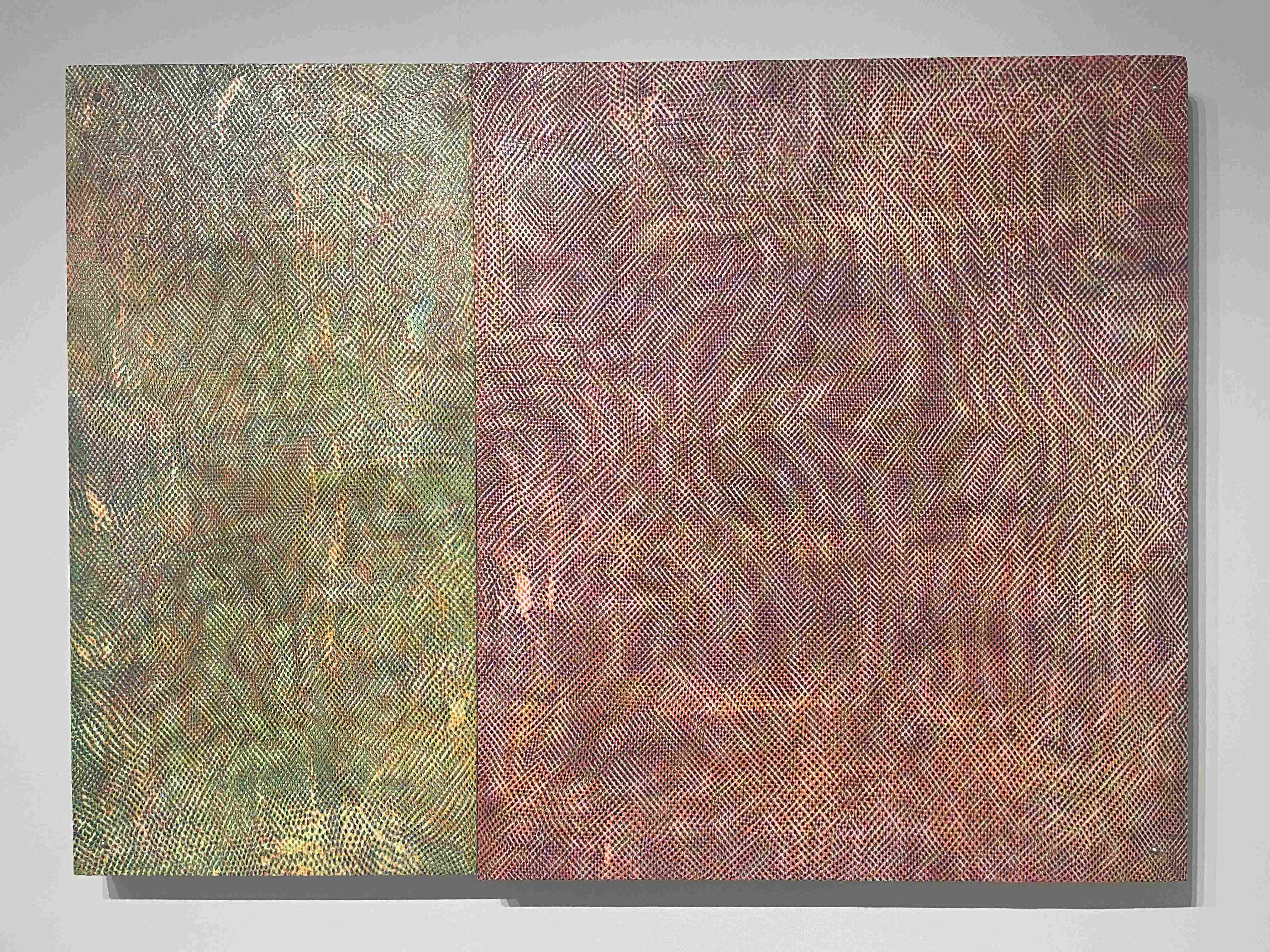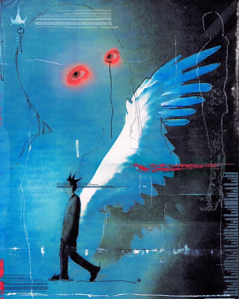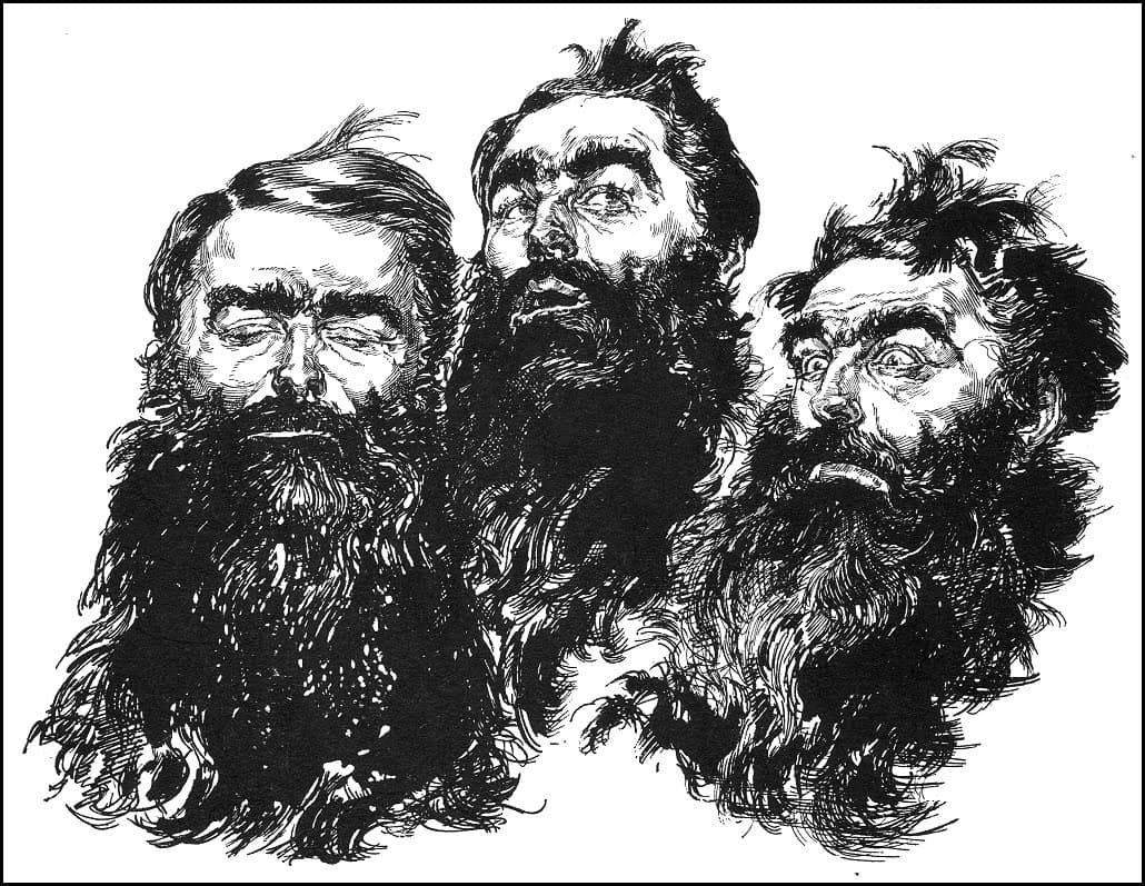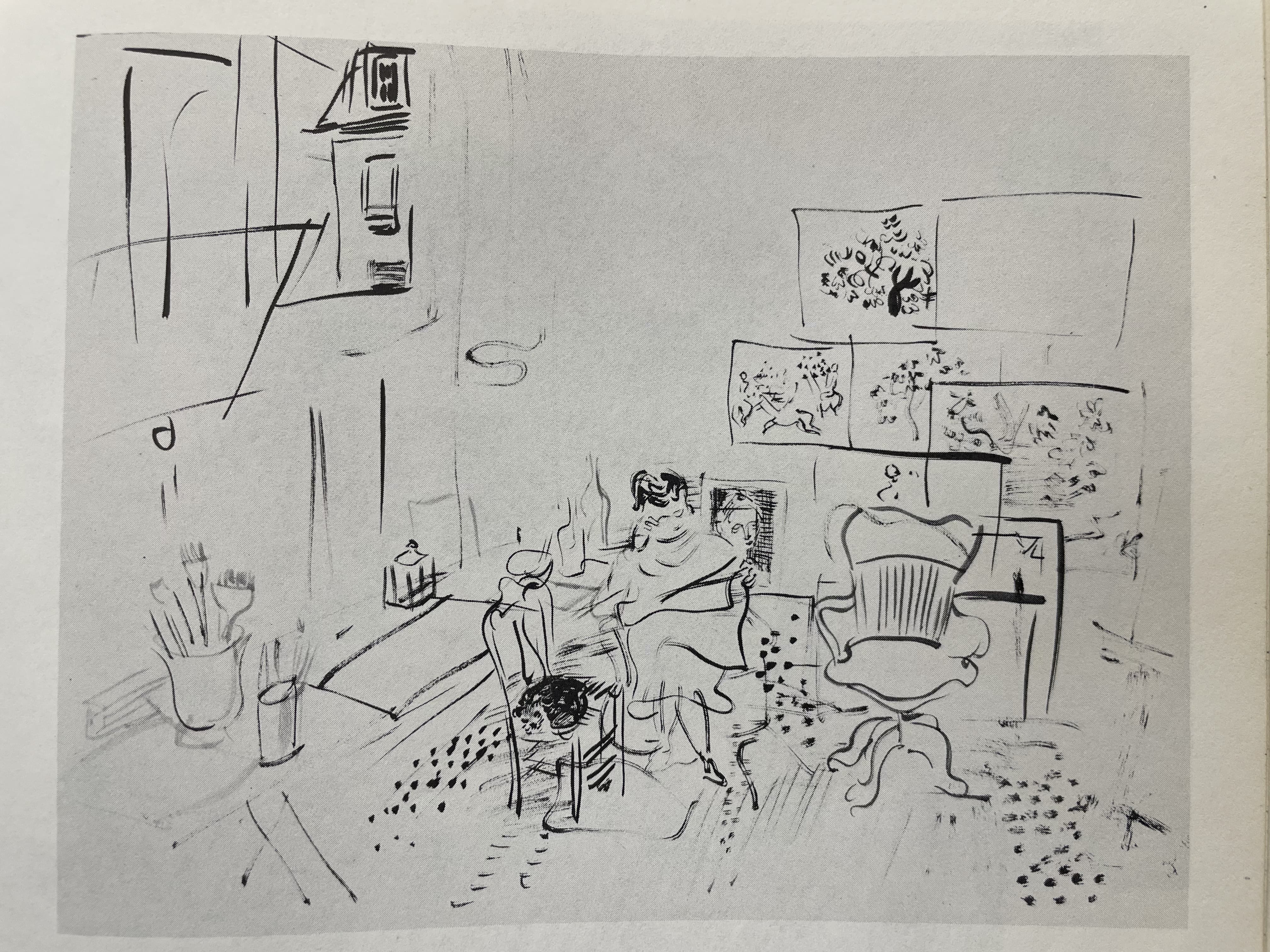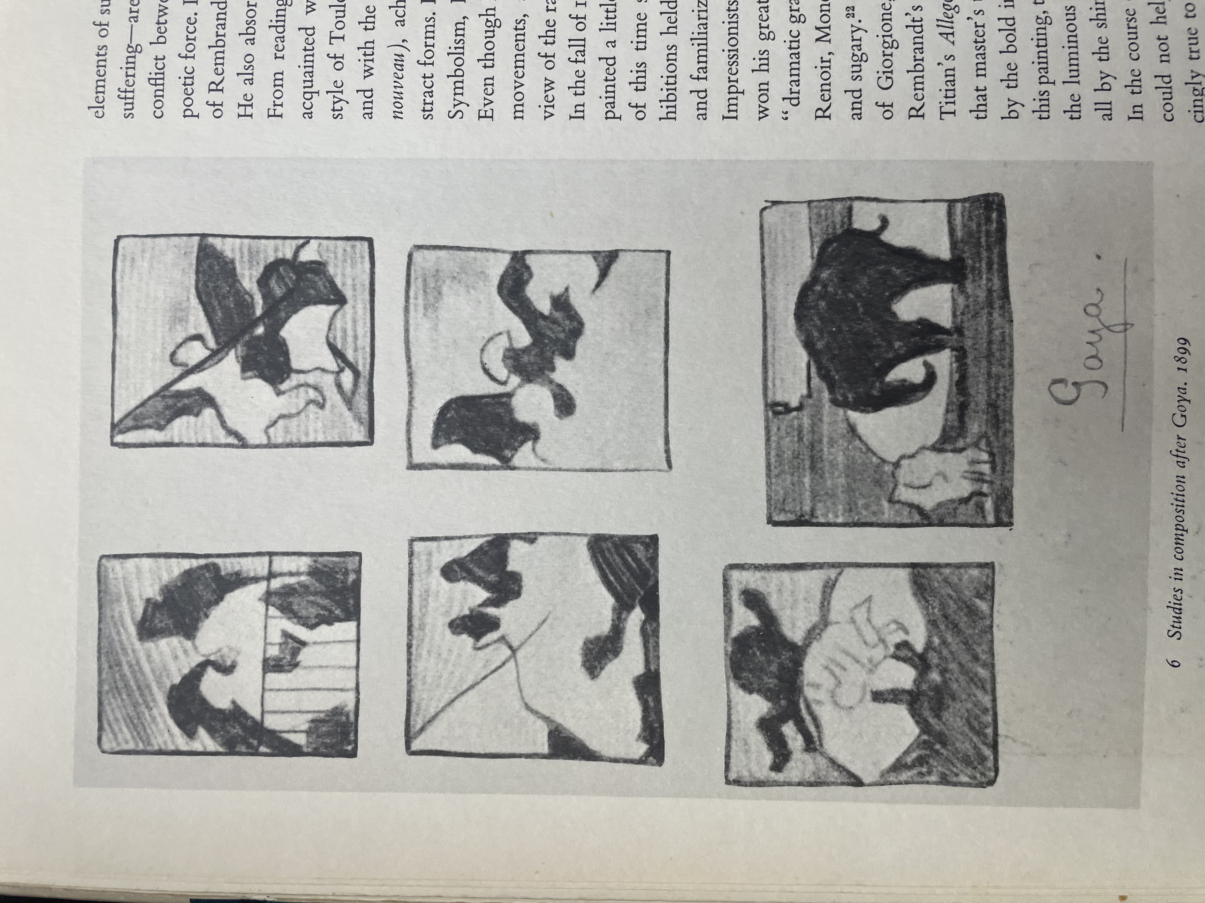 Black Scribble Drawing Diptych Showing Two Figures and a Male Portrait