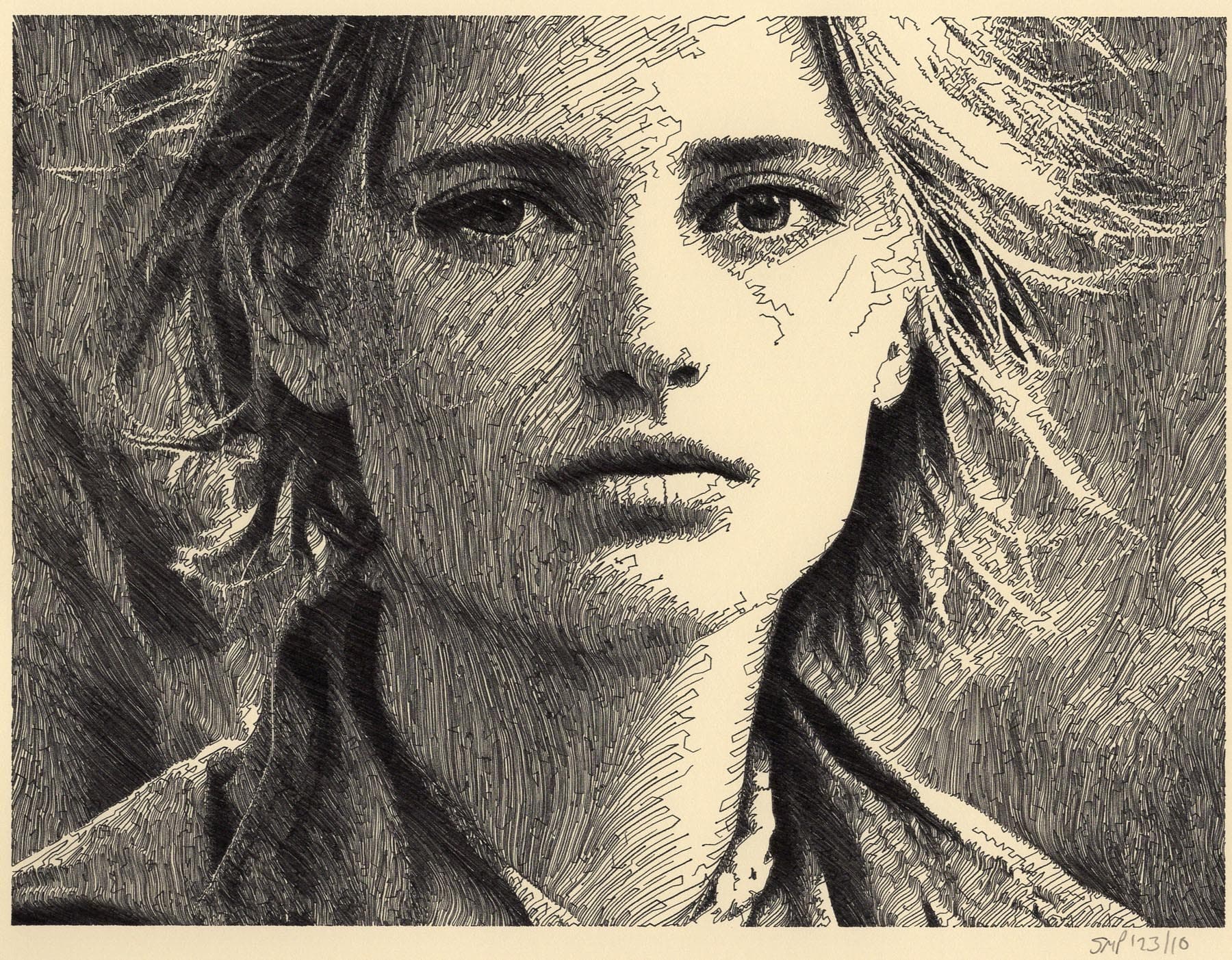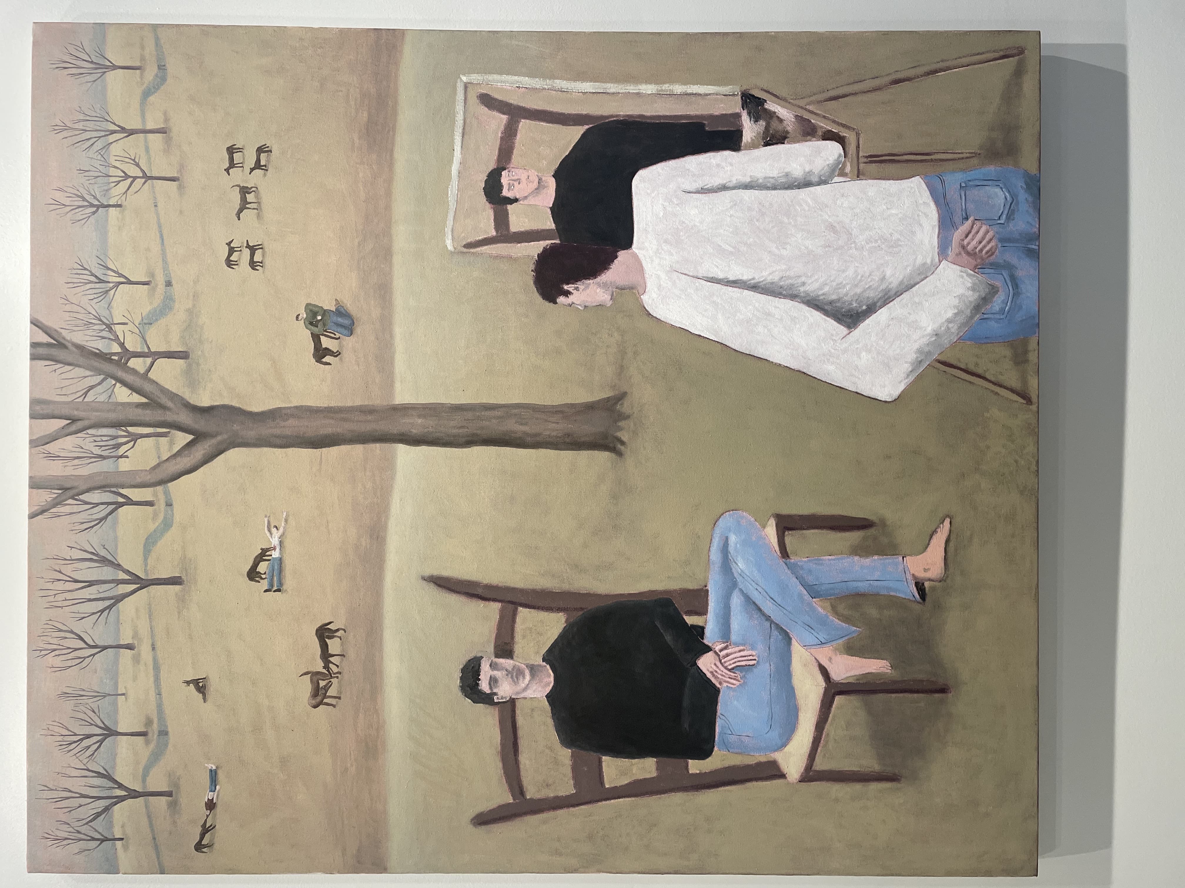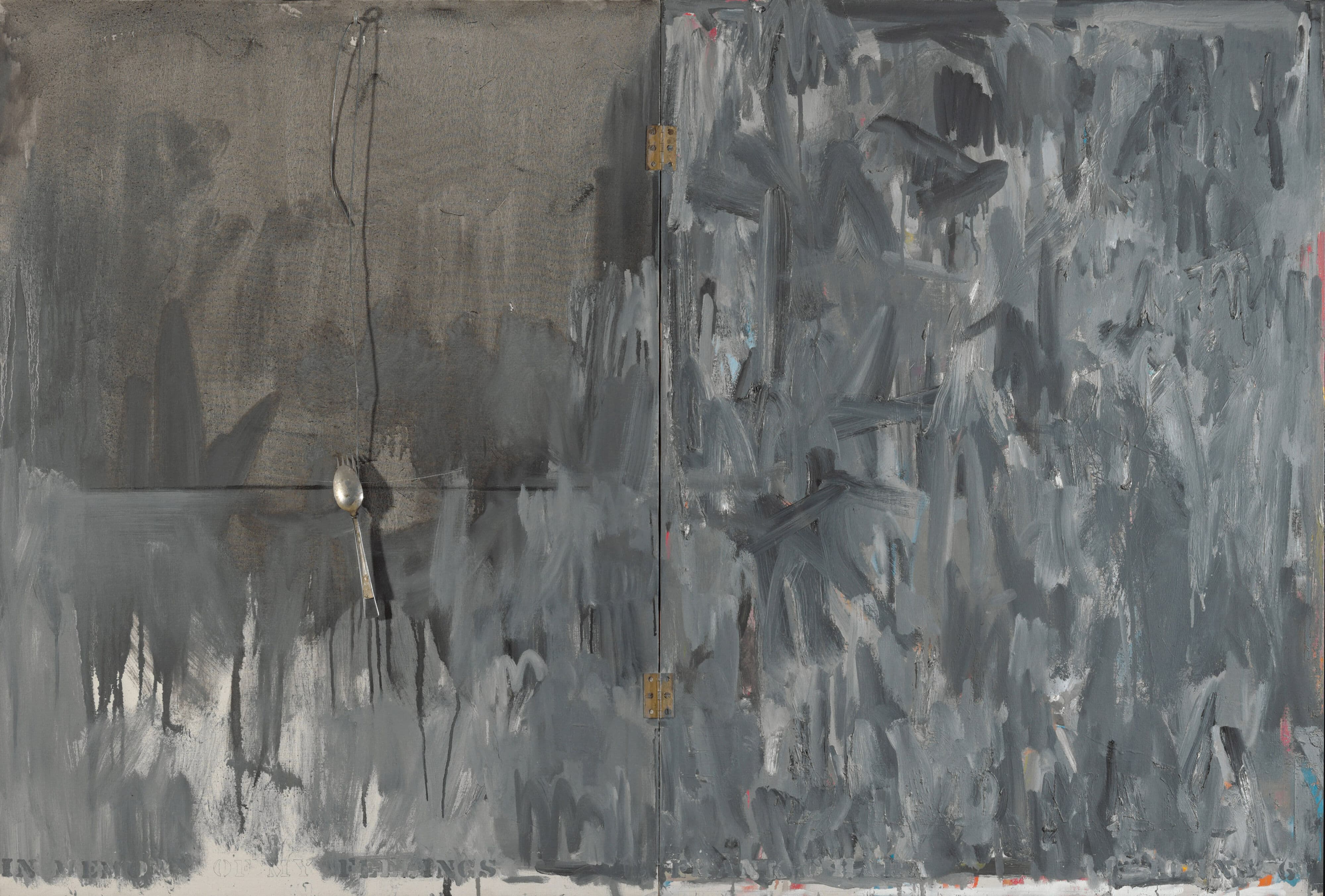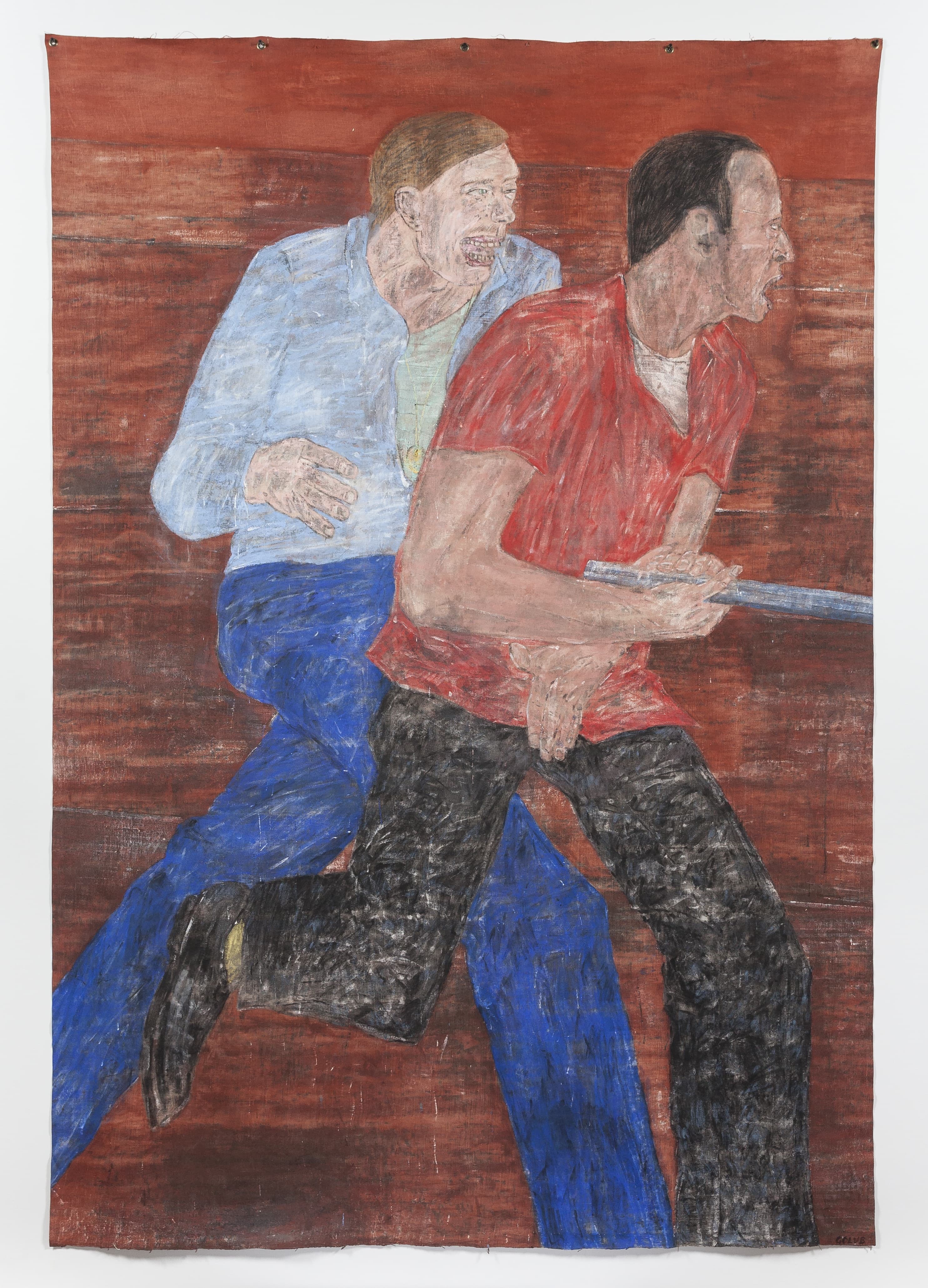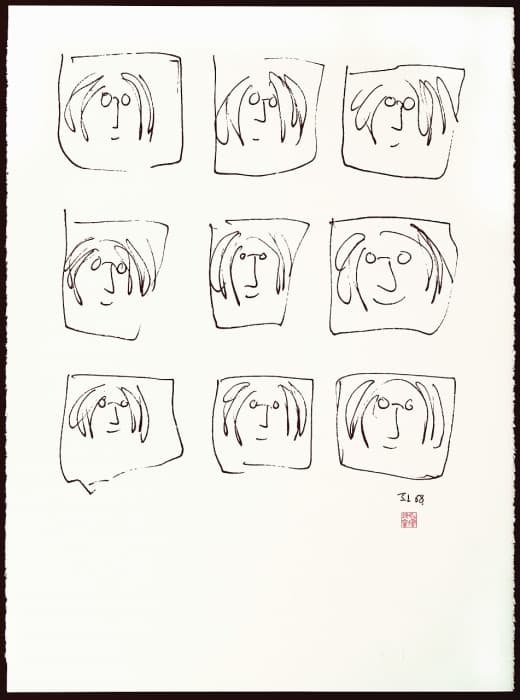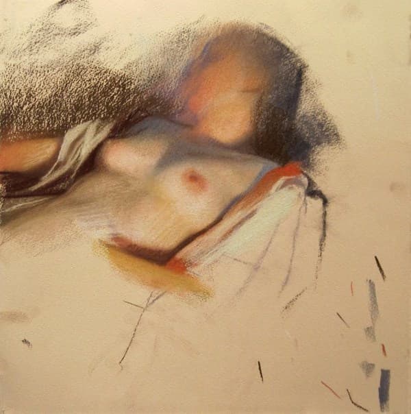 Black Scribble Drawing Diptych Showing Two Figures and a Male Portrait