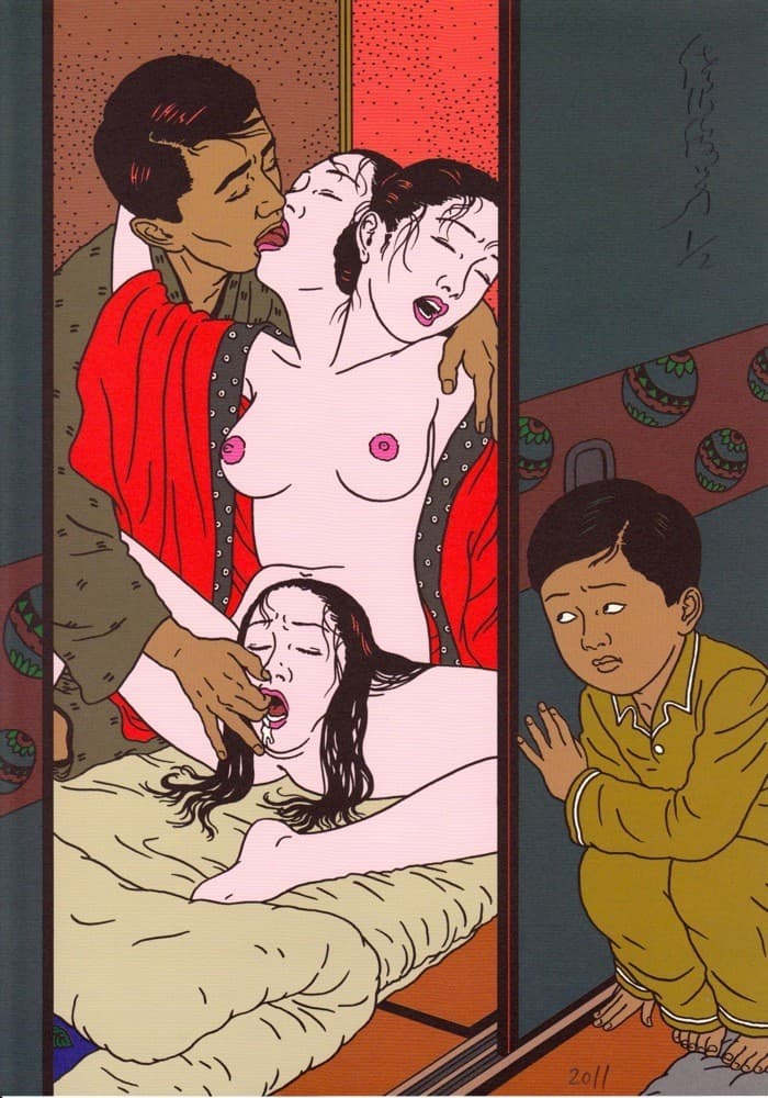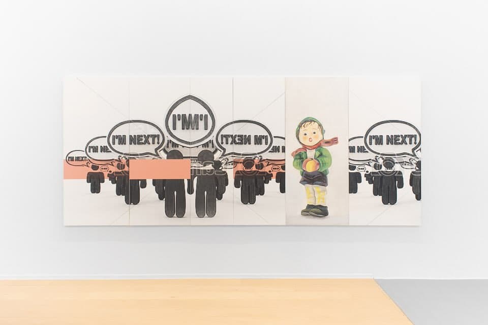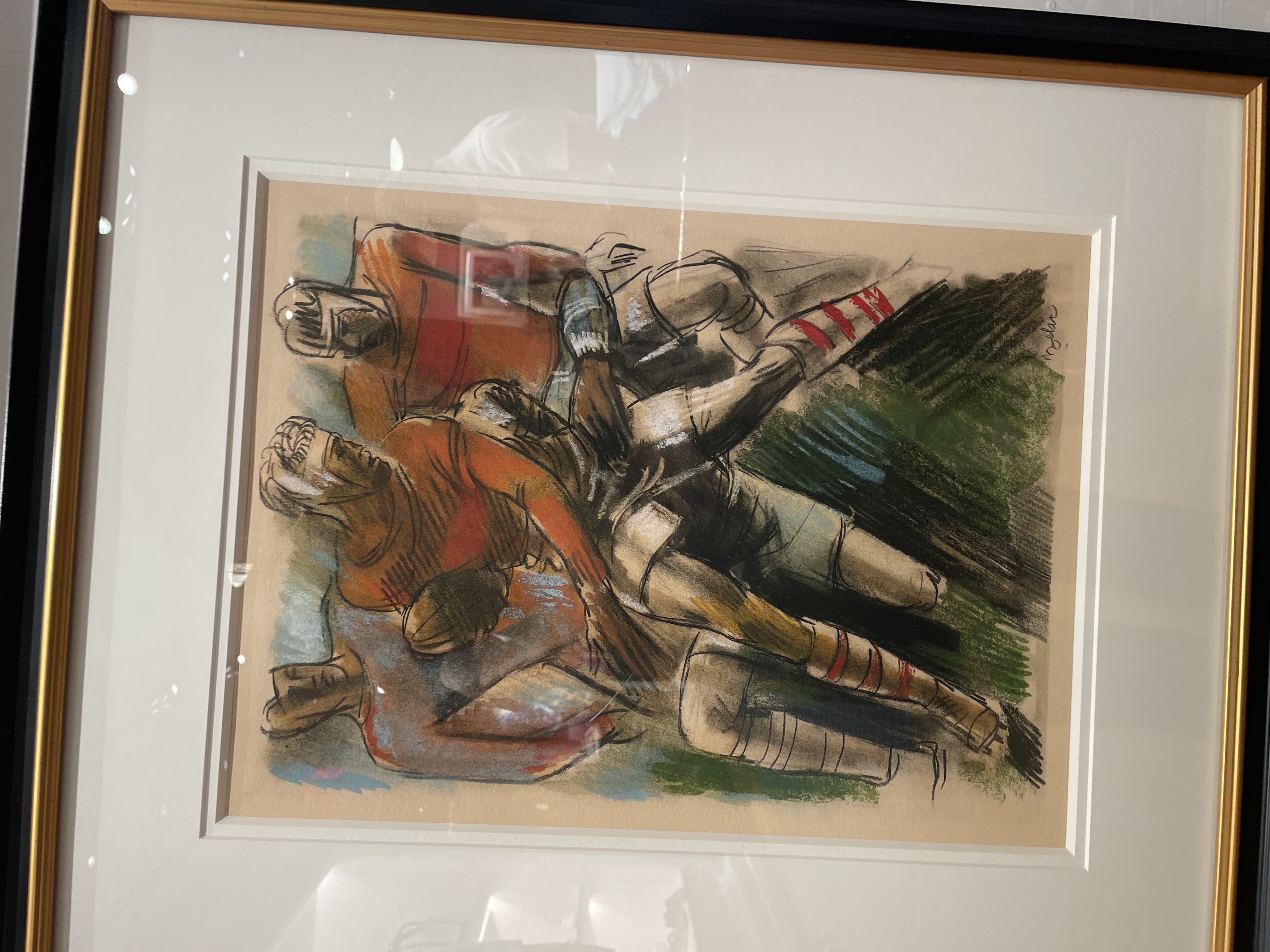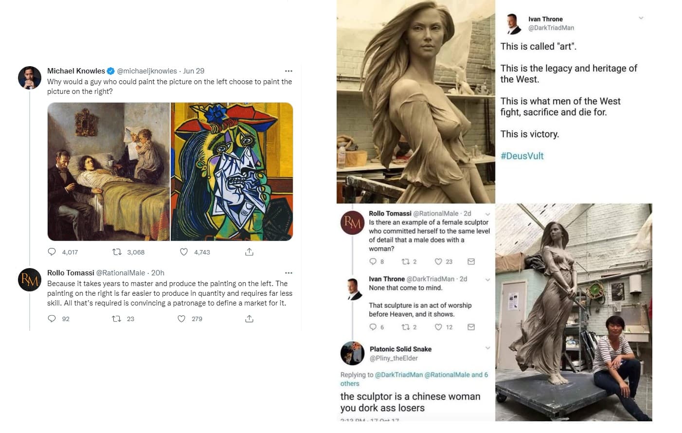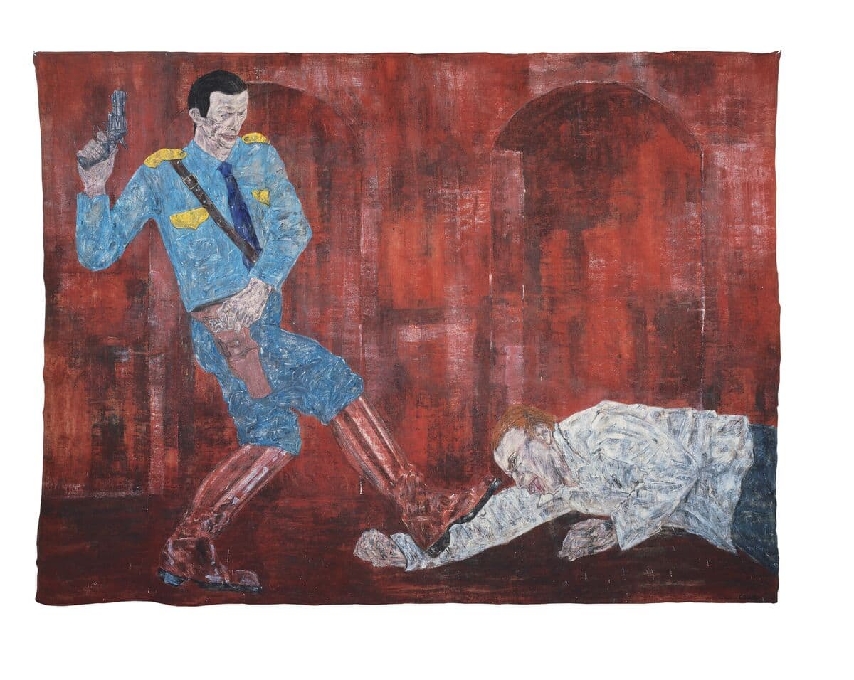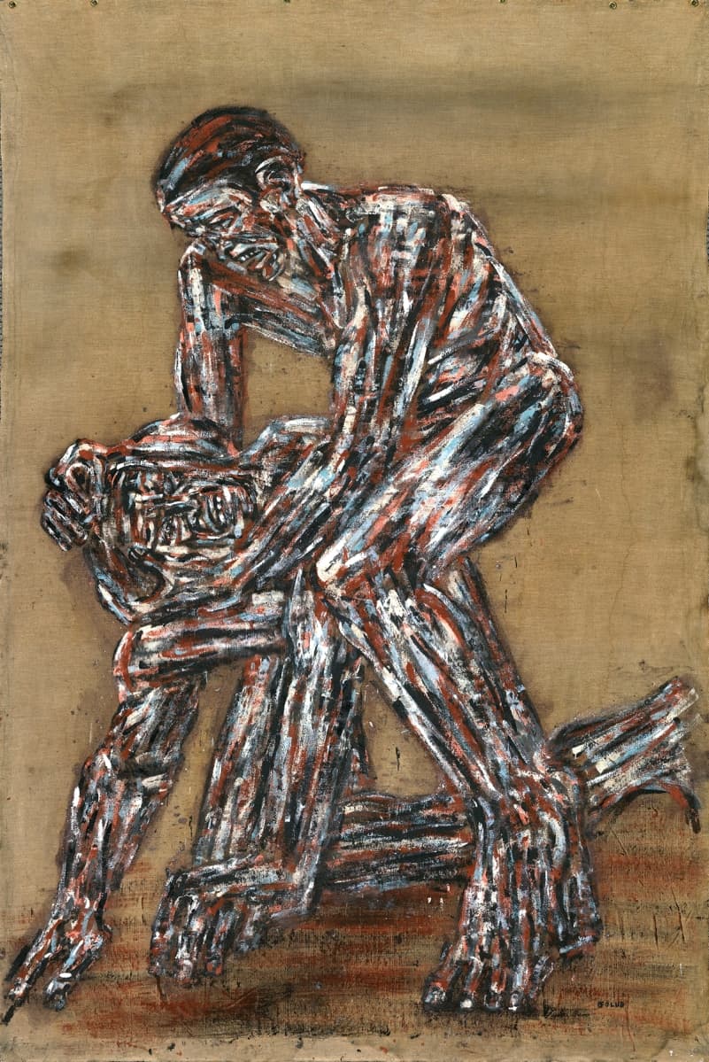 Black Scribble Drawing Diptych Showing Two Figures and a Male Portrait