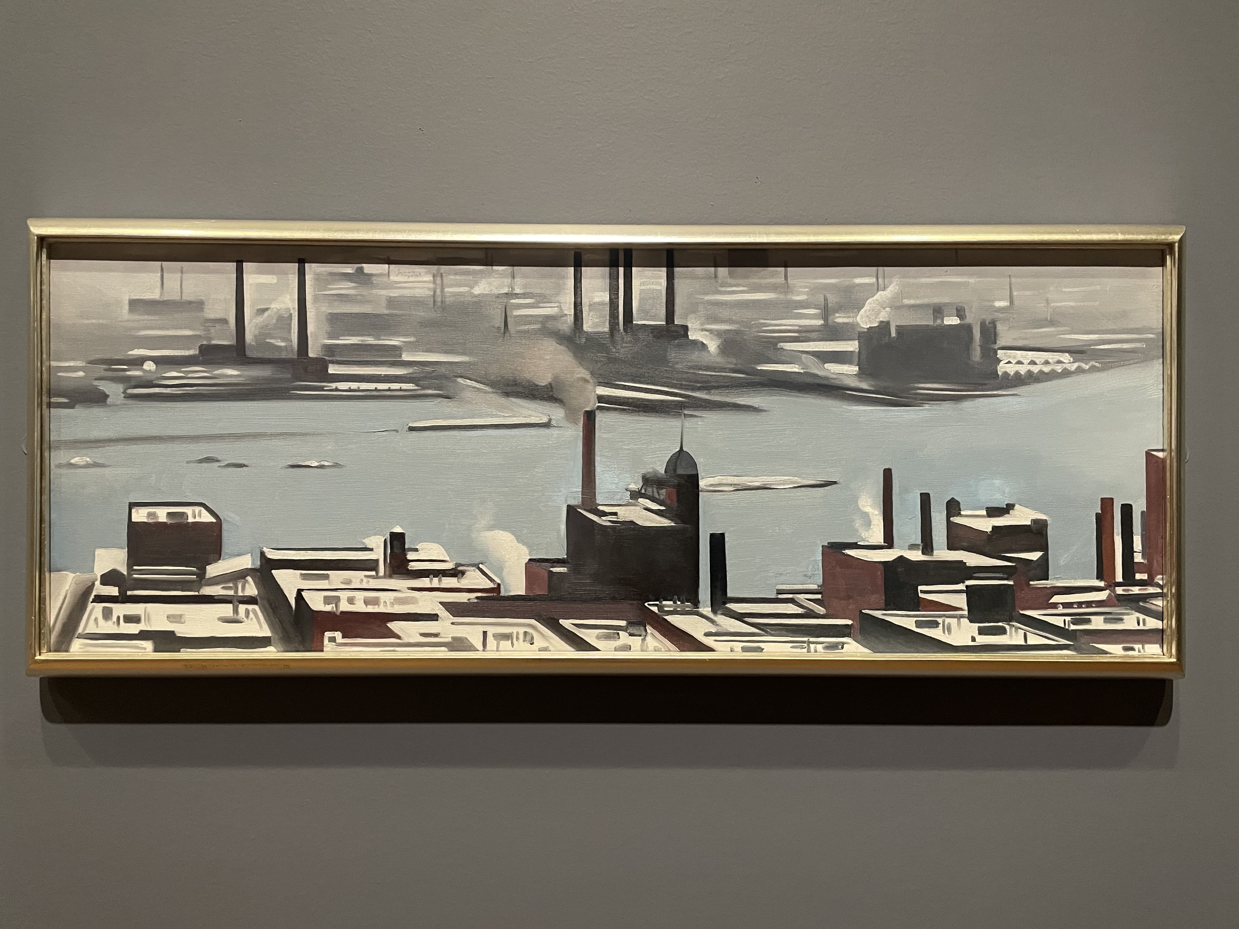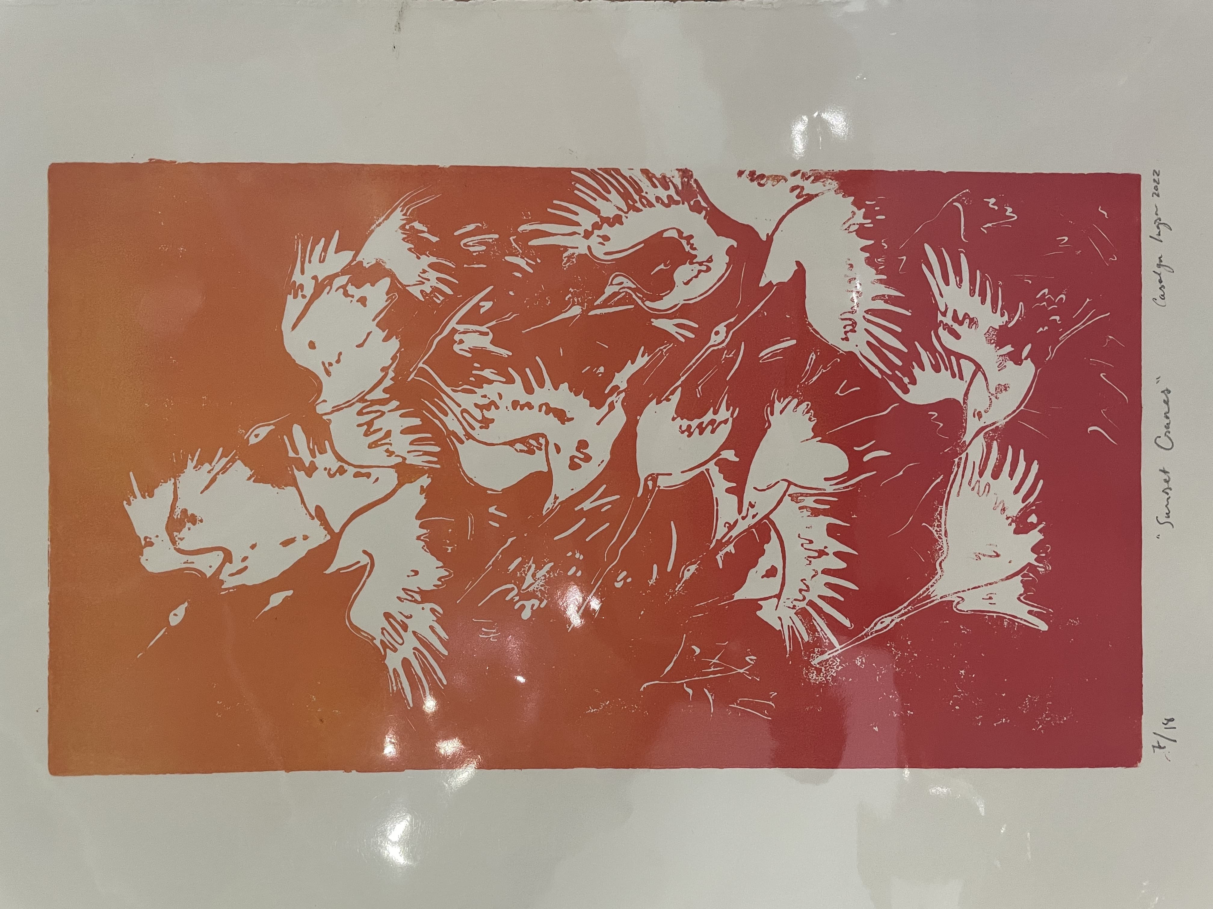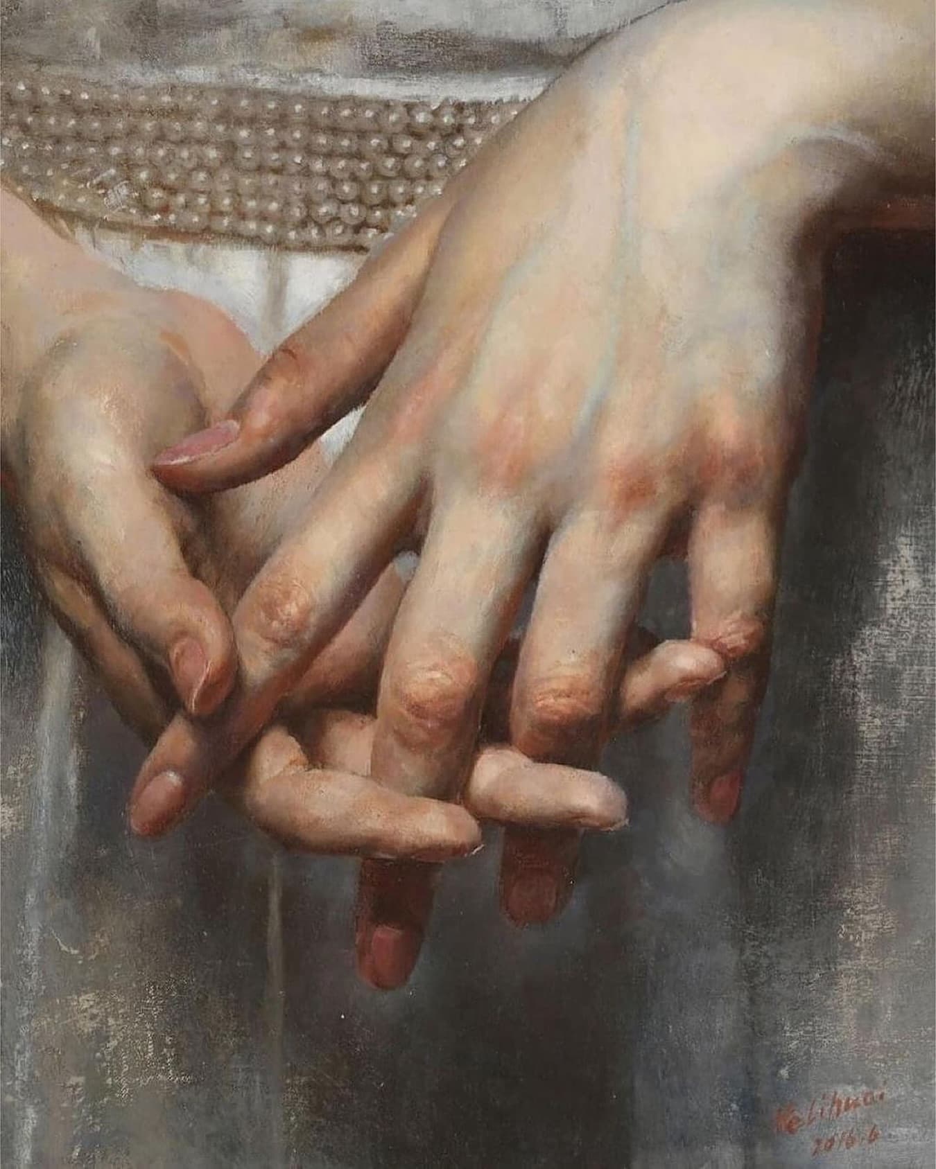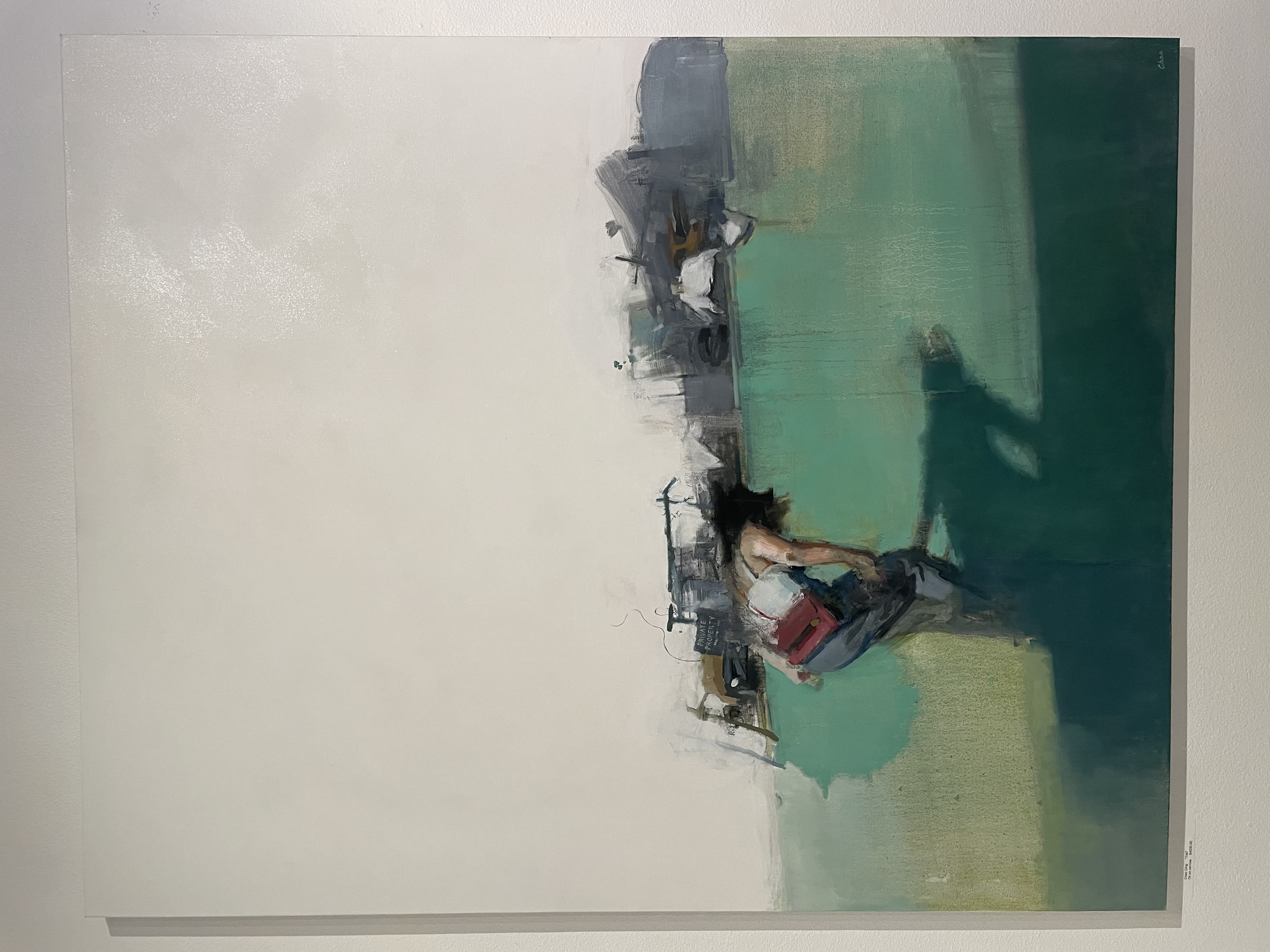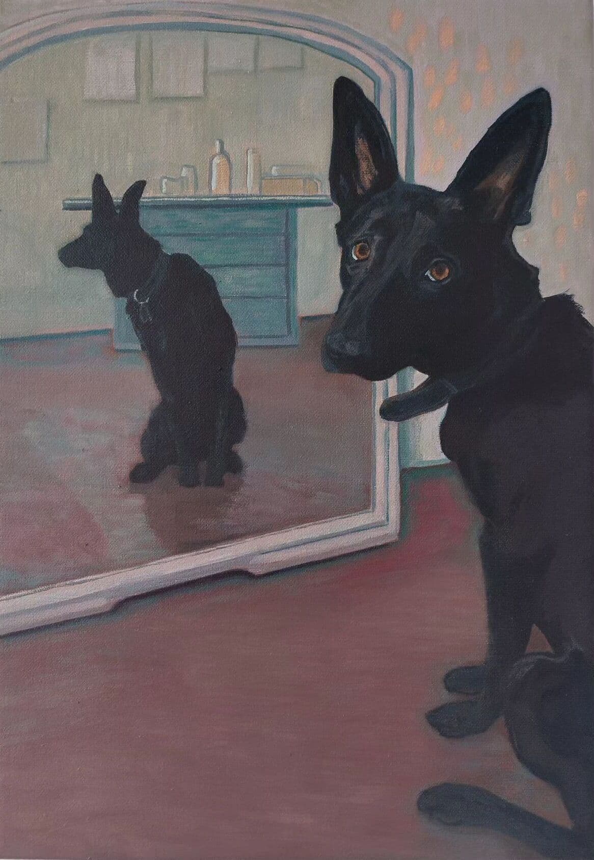 Textile Art Depicting a Dark Boat Hull Reflected in Rippling Water