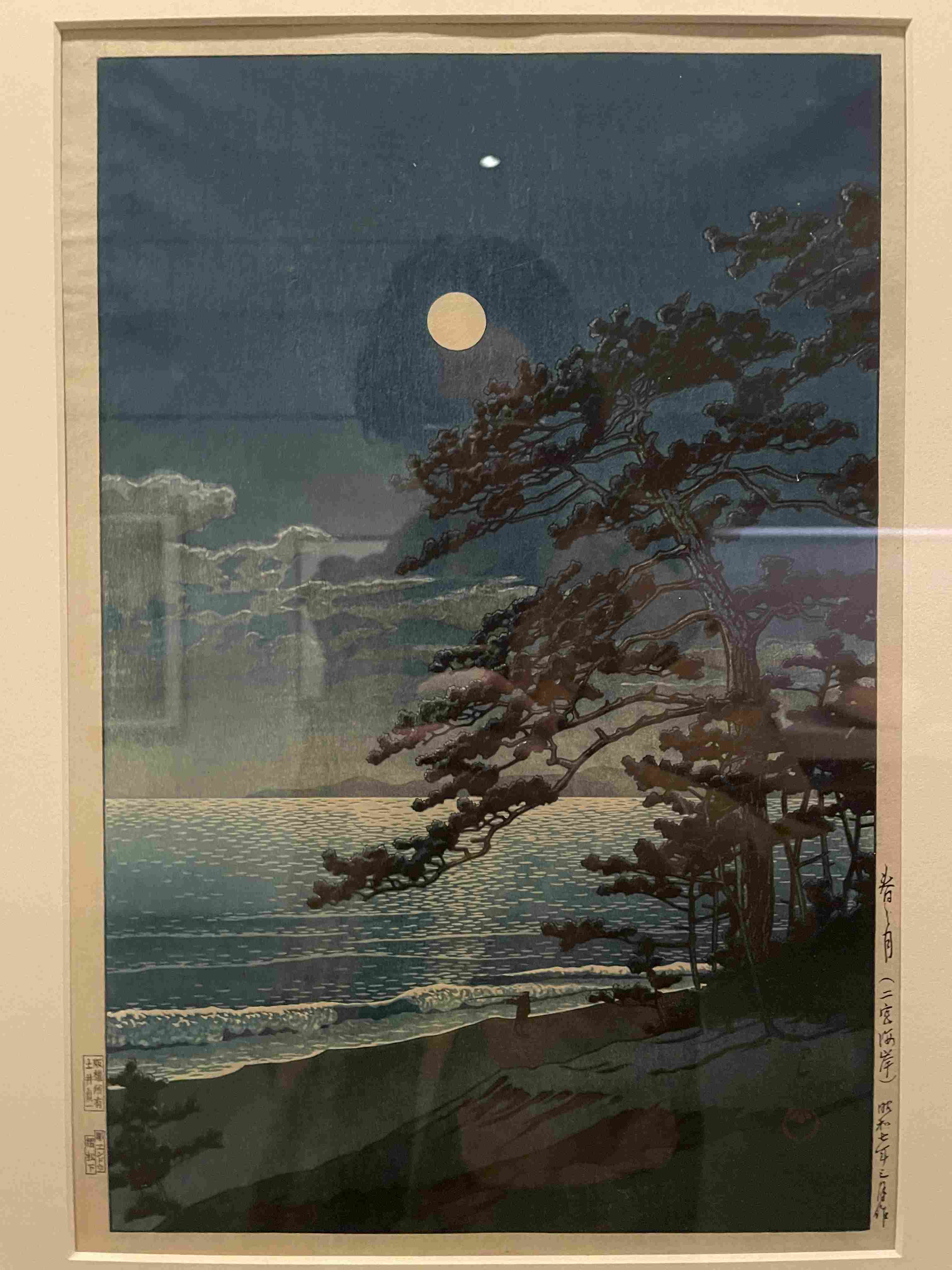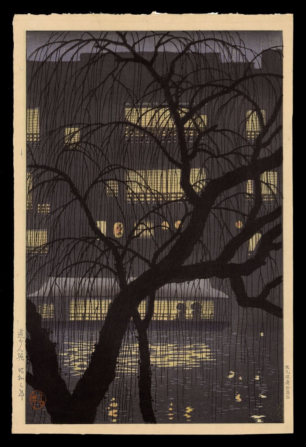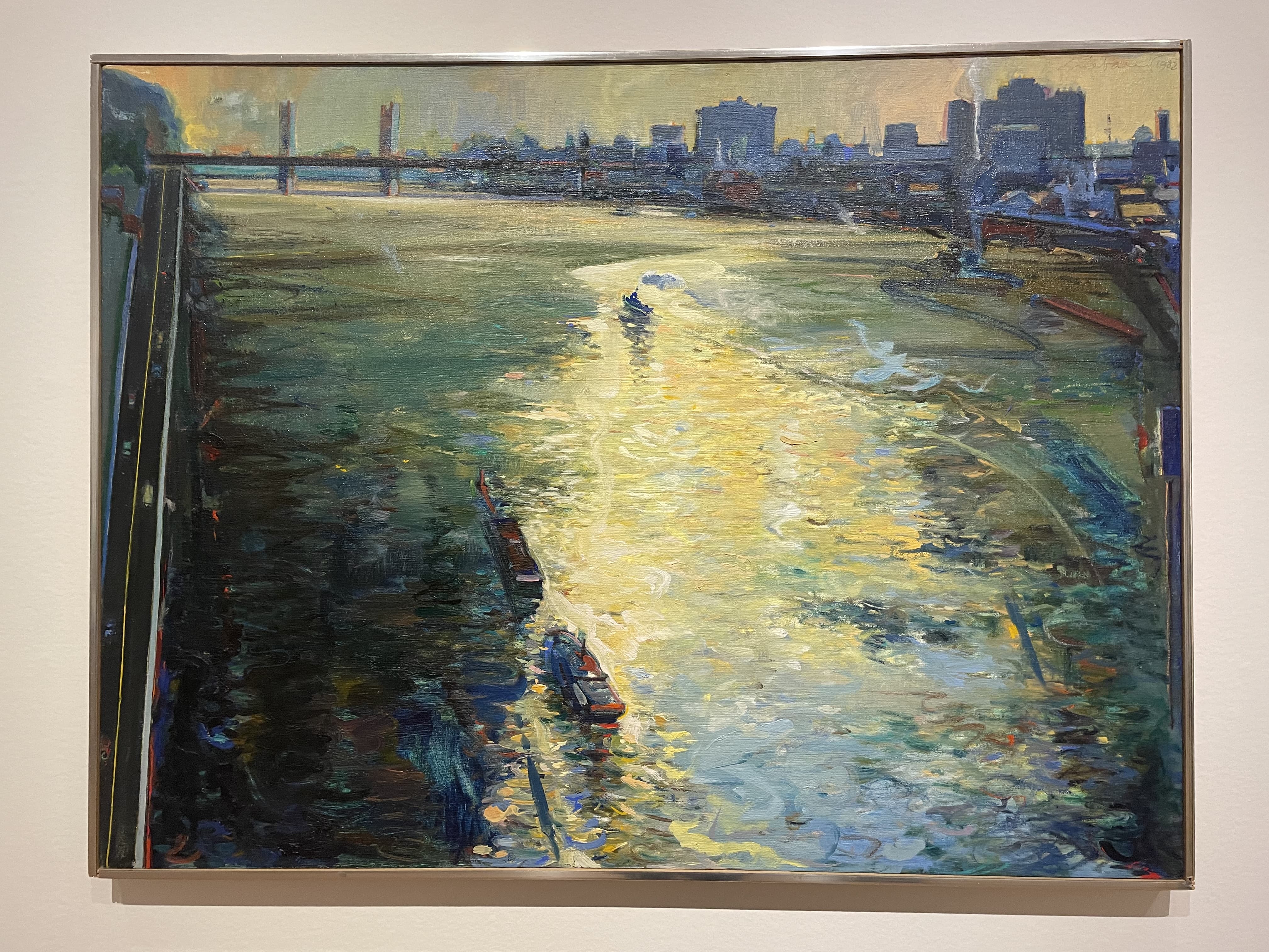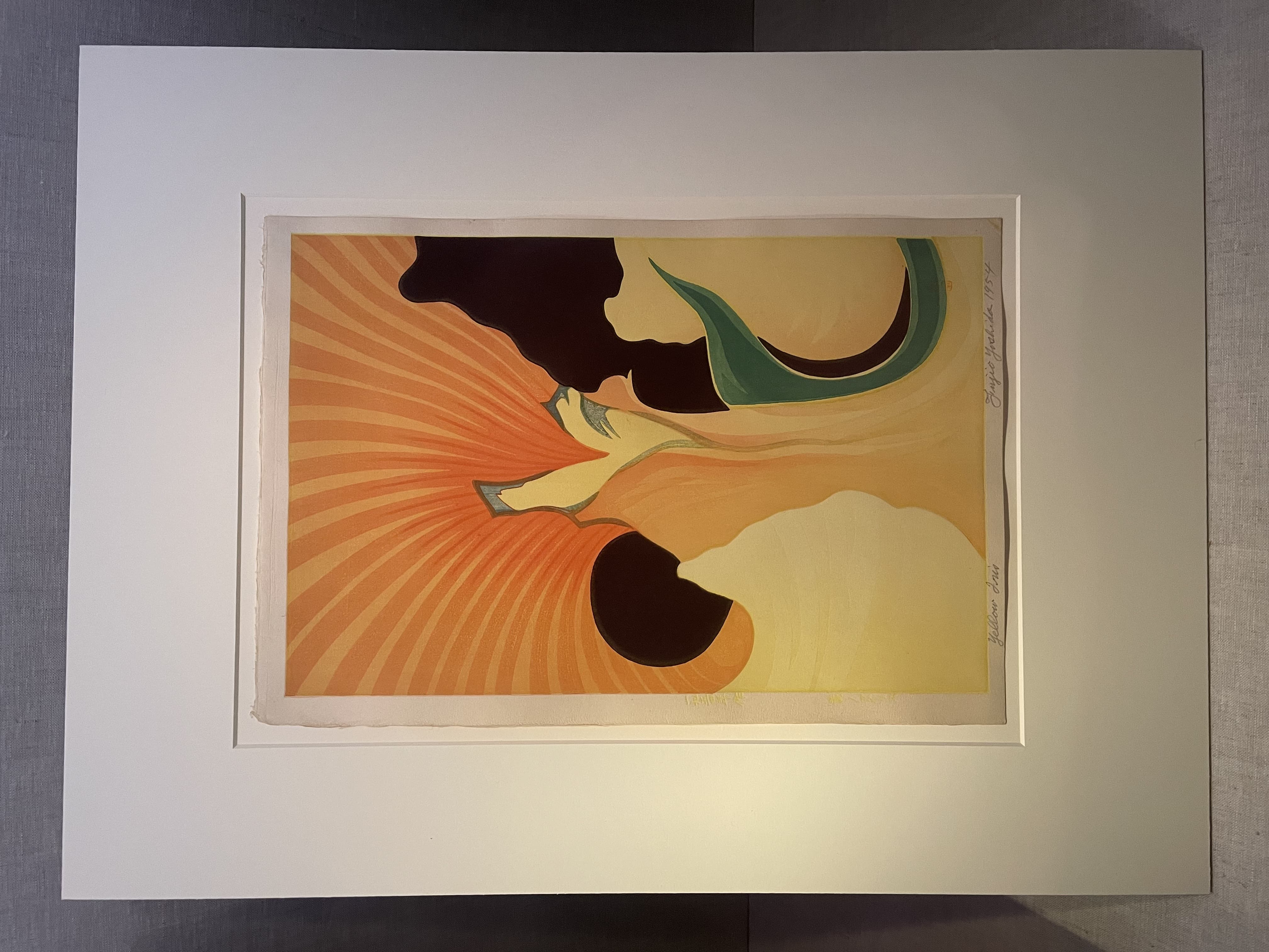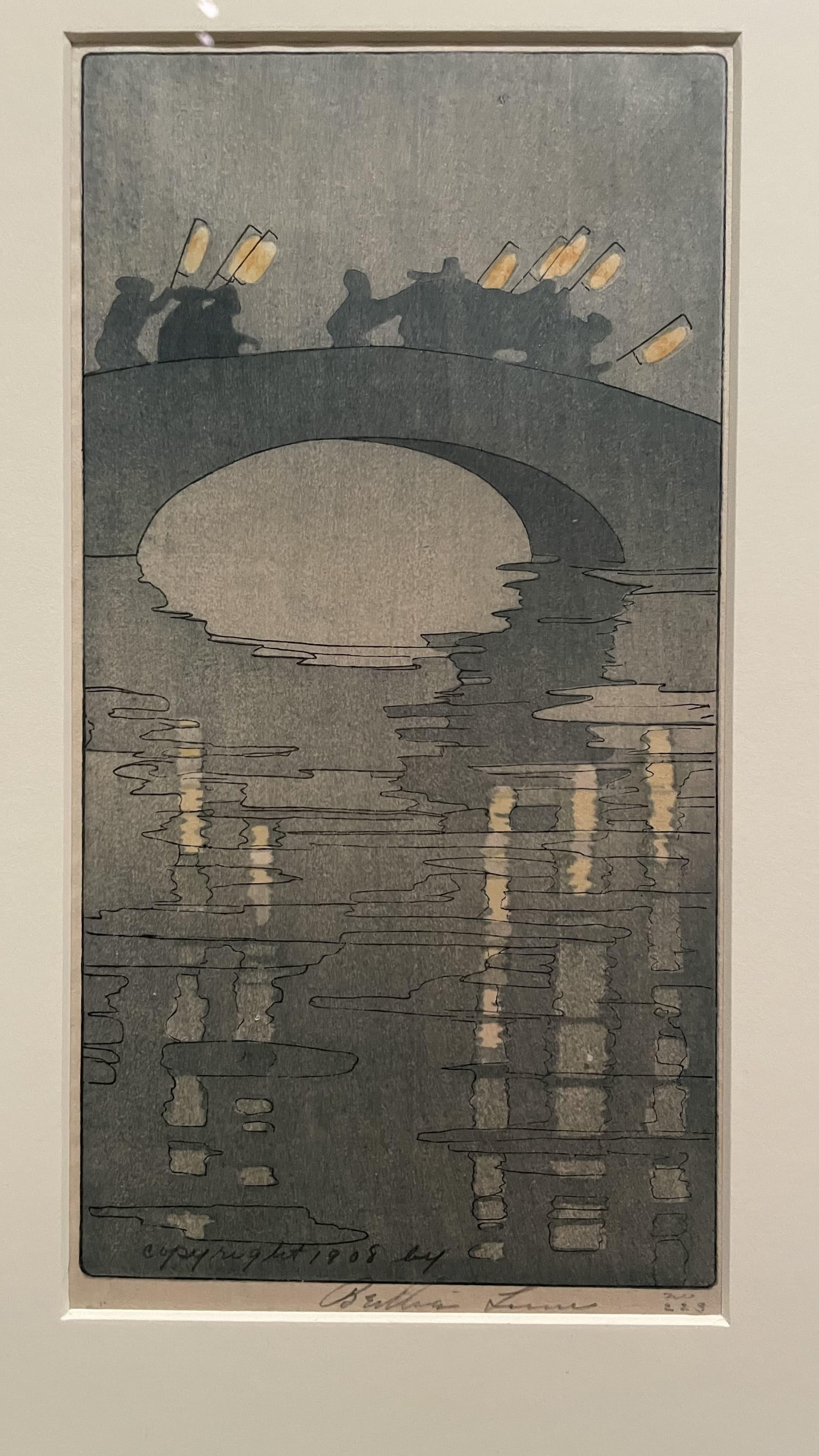 Textile Art Depicting a Dark Boat Hull Reflected in Rippling Water