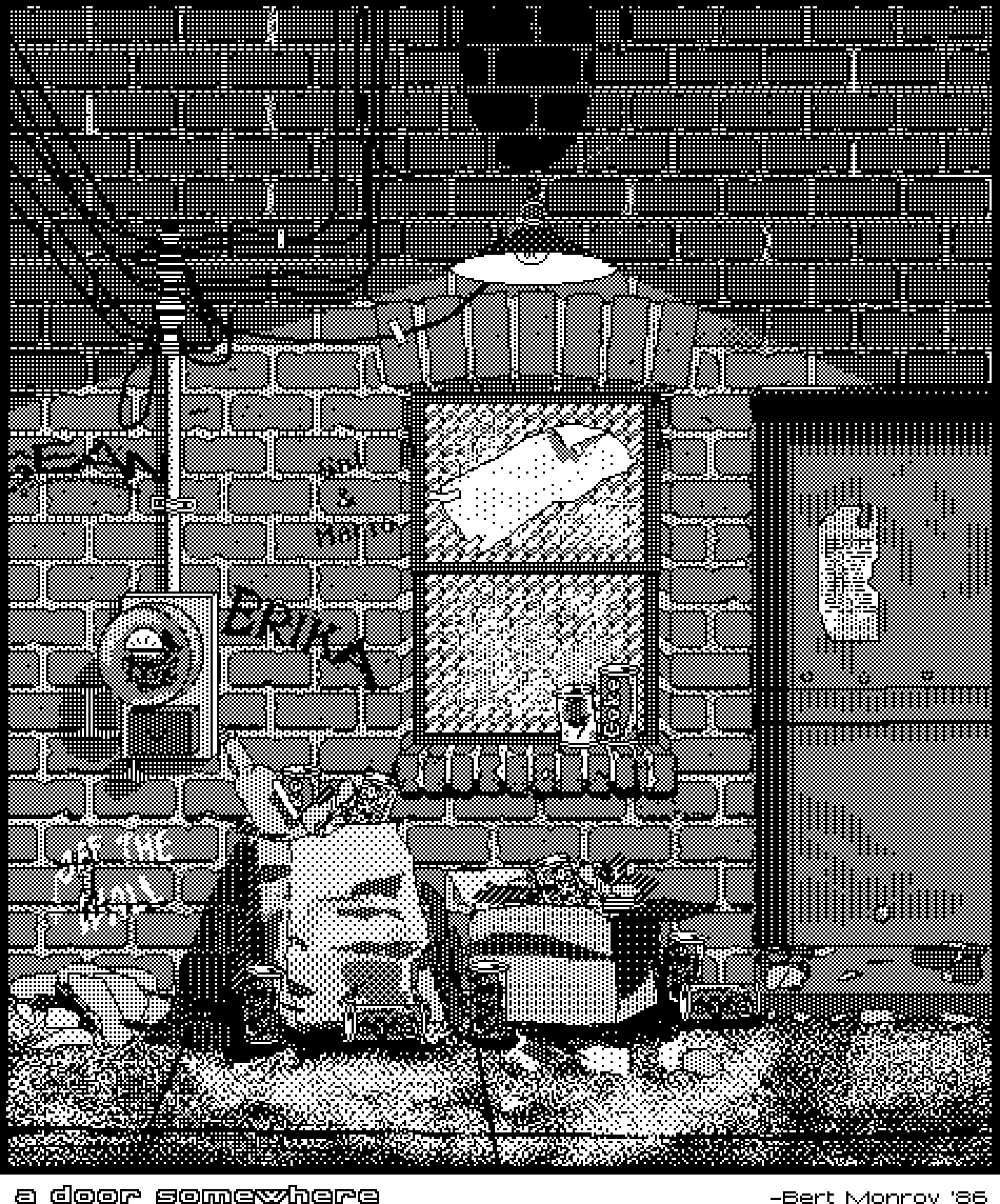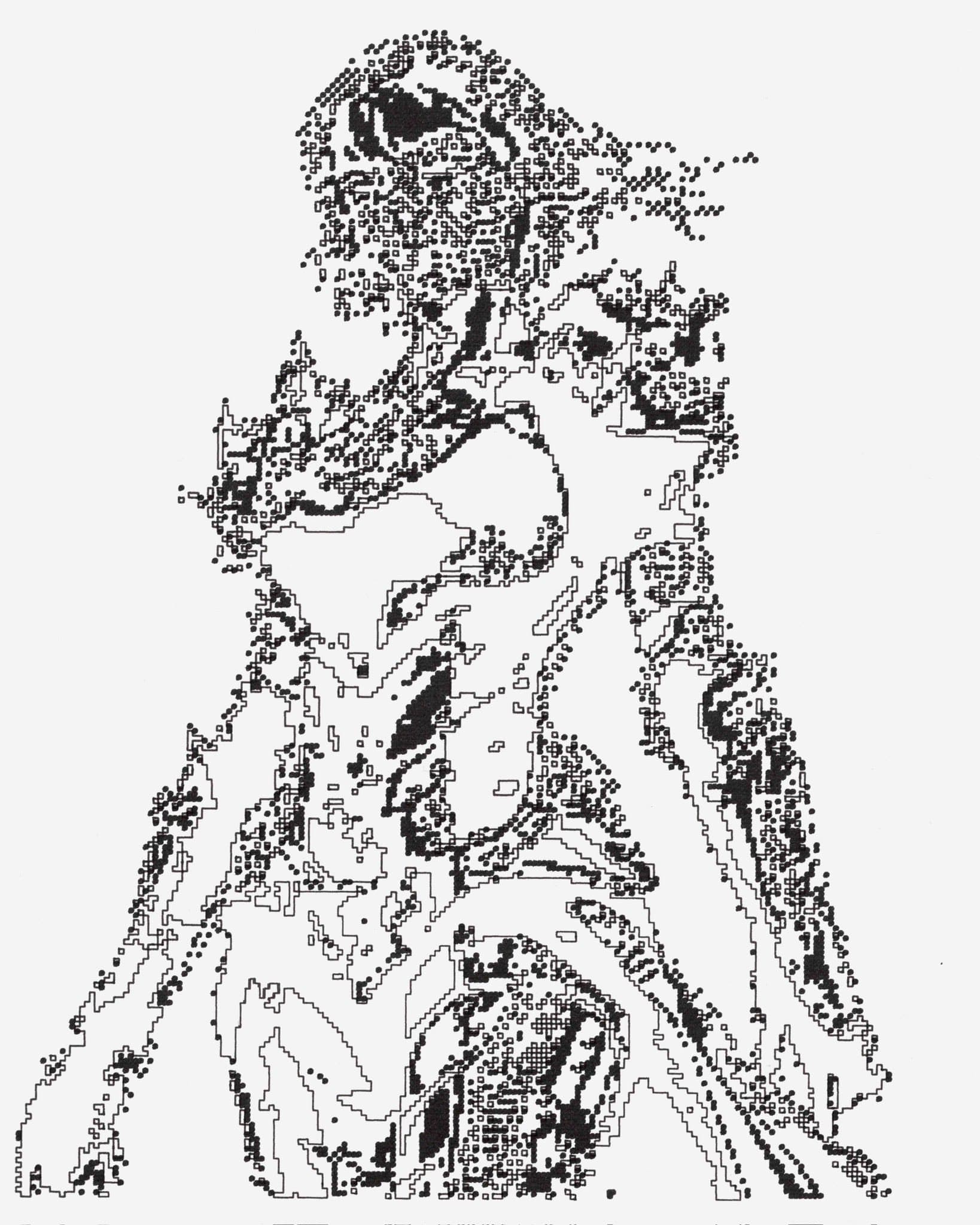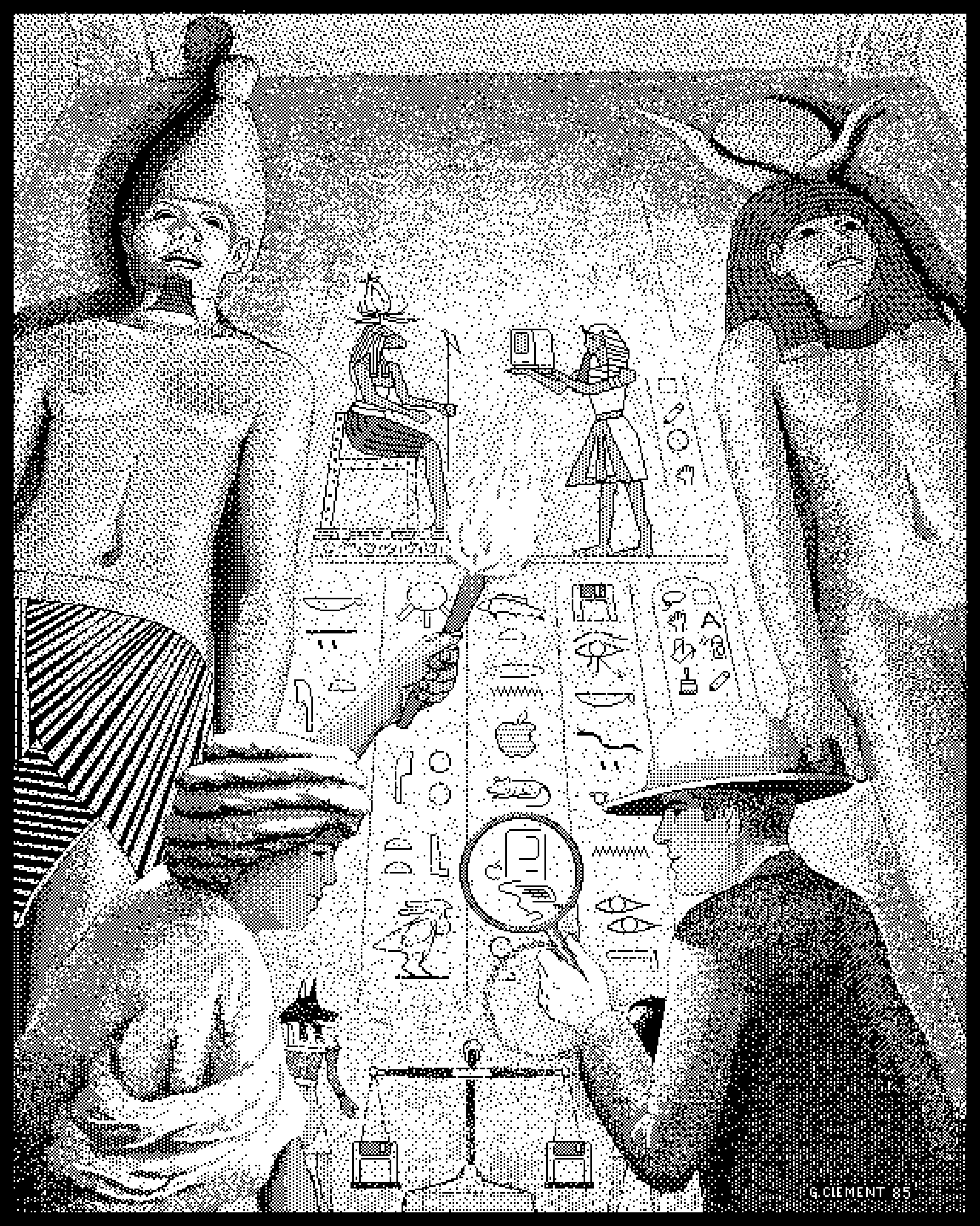 Screenshot of a retro computer emulator displaying a green pixelated portrait