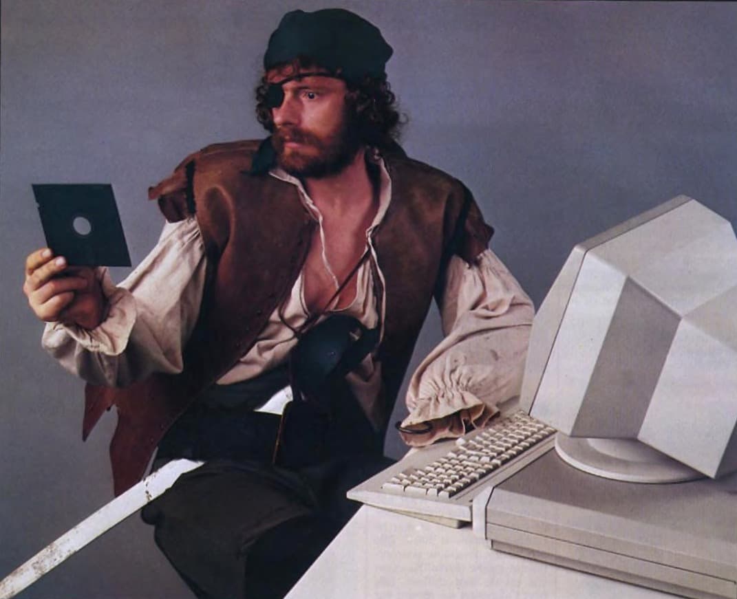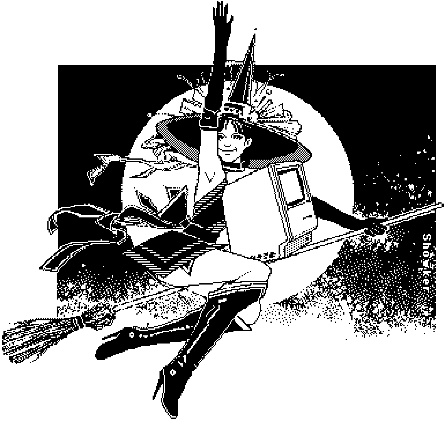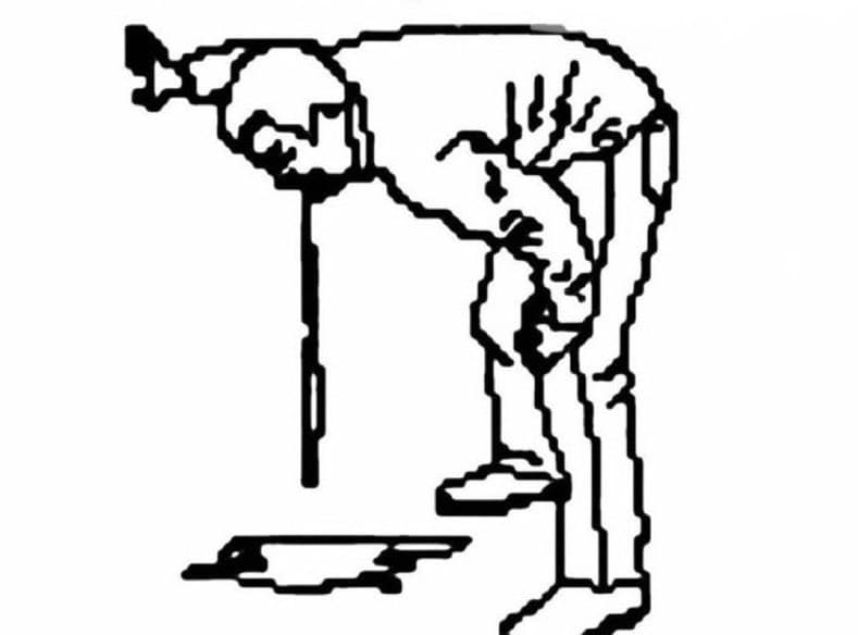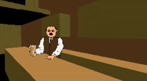 Screenshot of a retro computer emulator displaying a green pixelated portrait