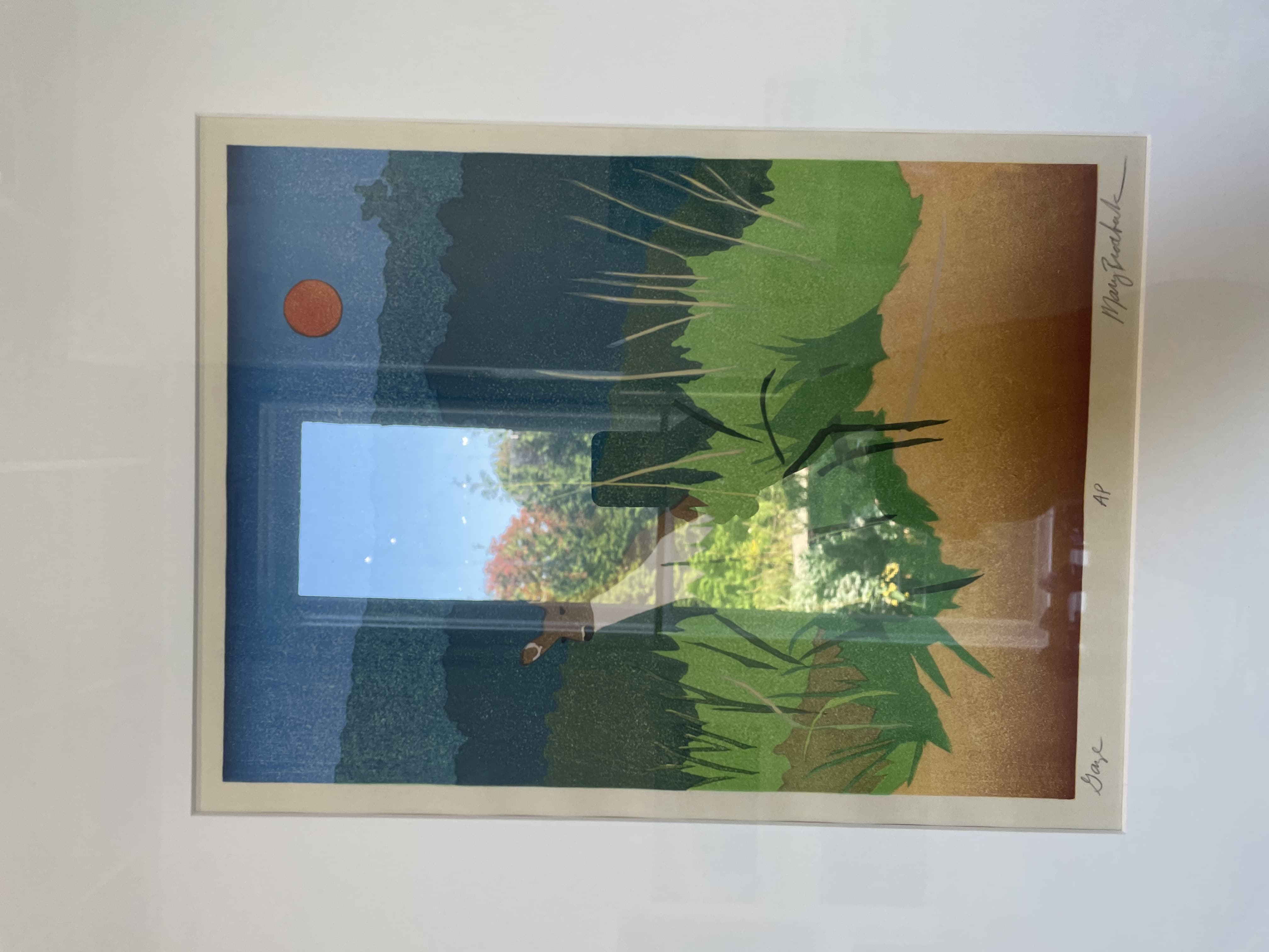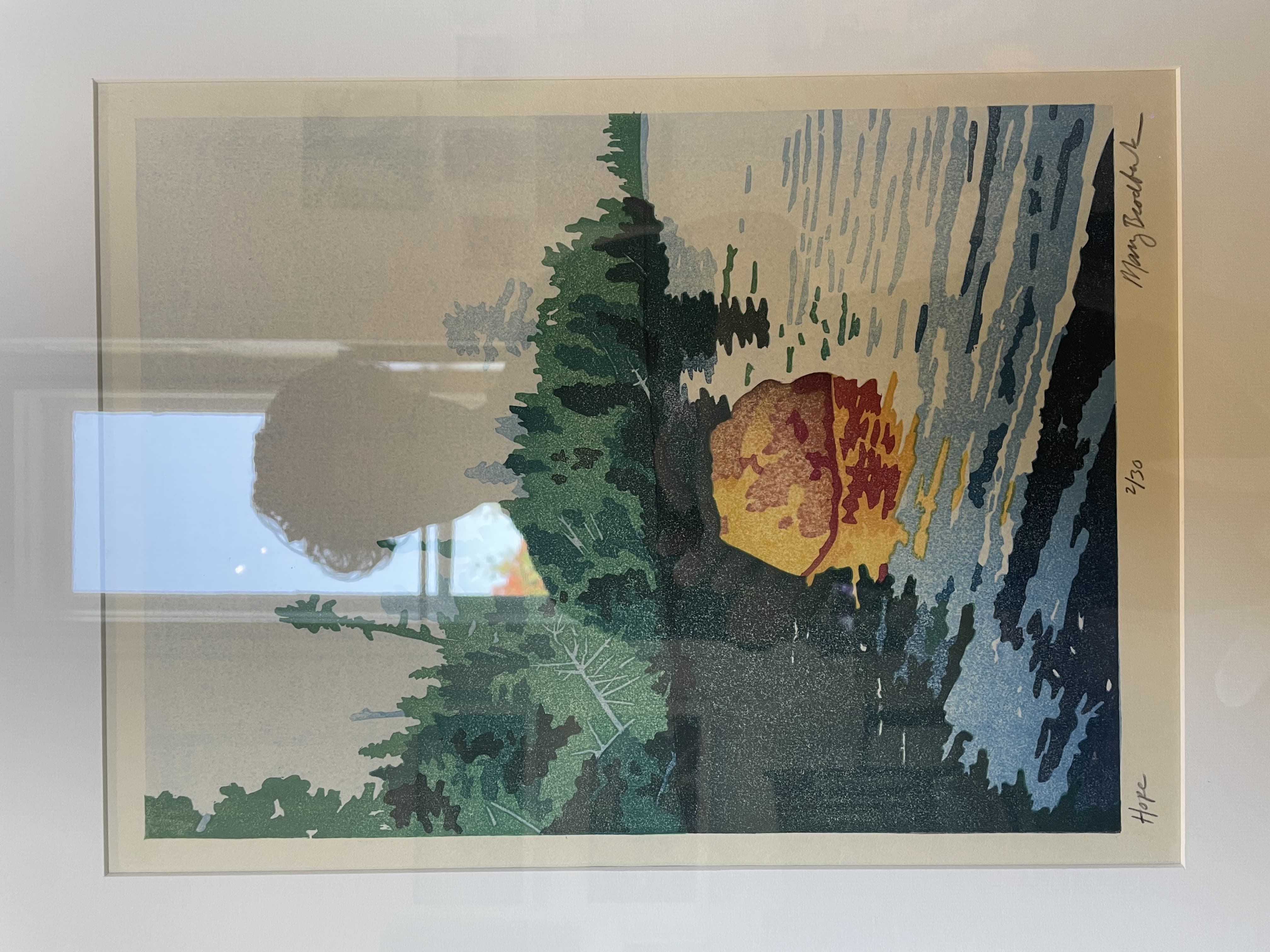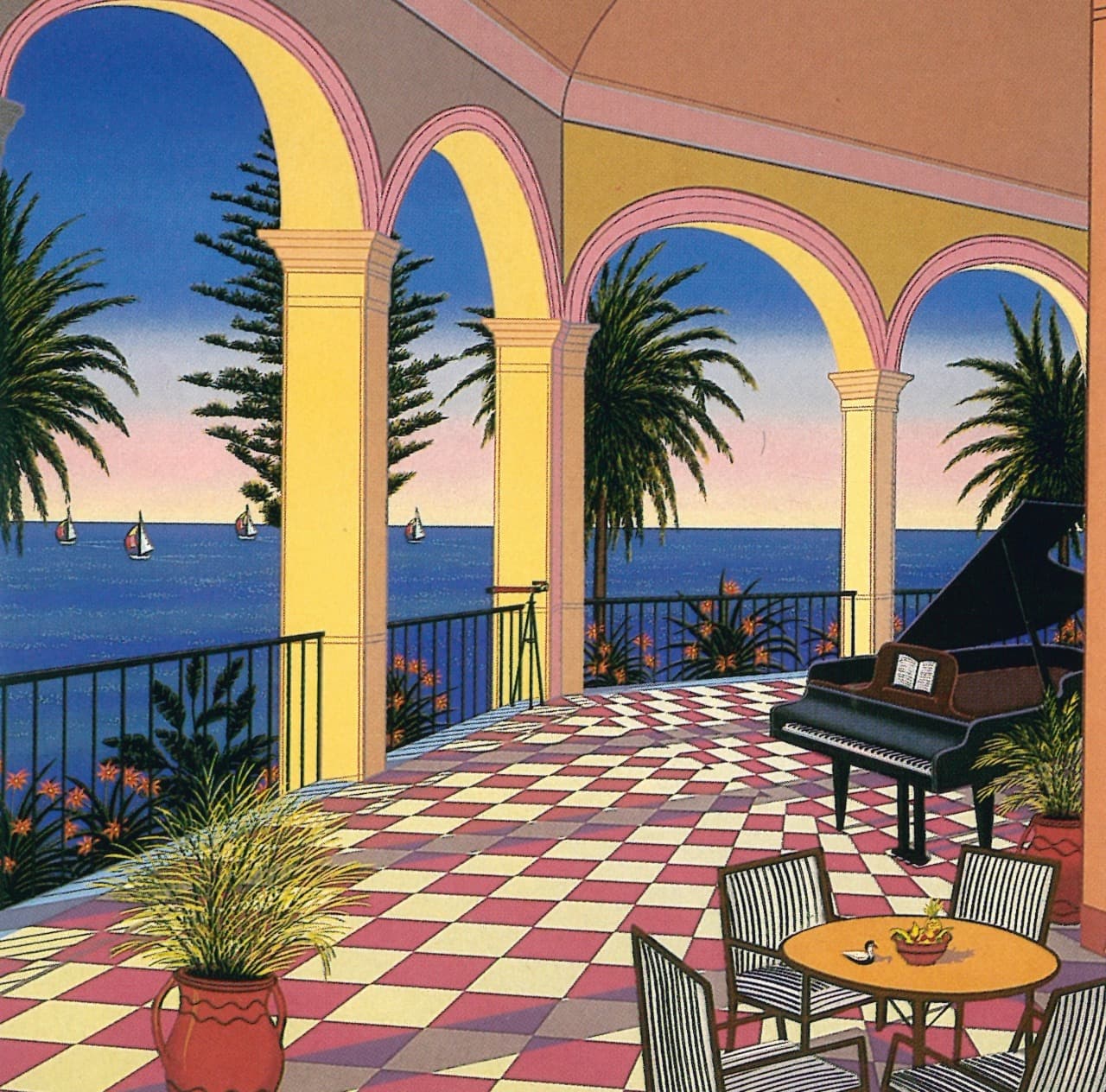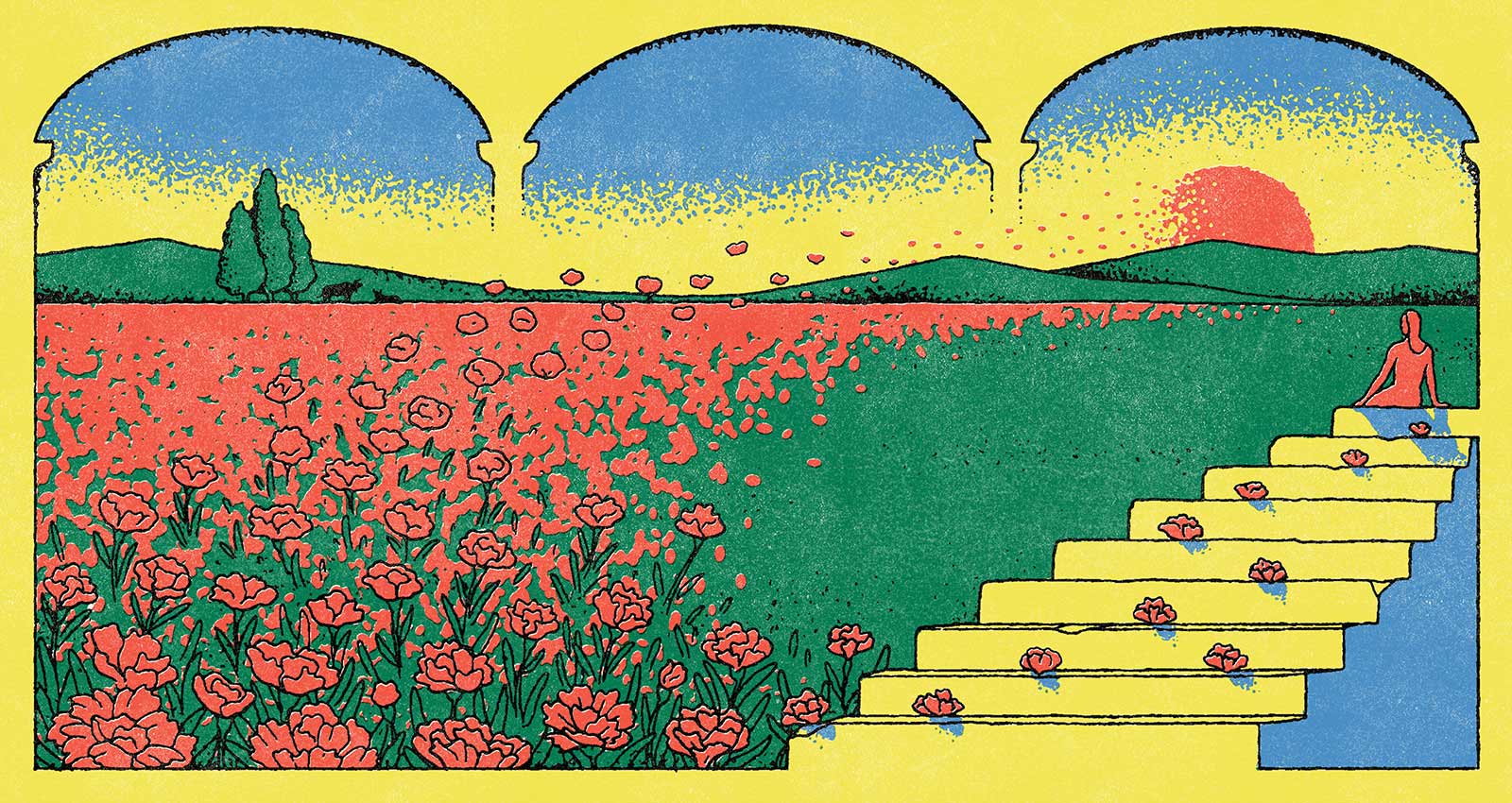 Graphic Illustration of a Long Reflecting Pool with Trees and Gradient Sky