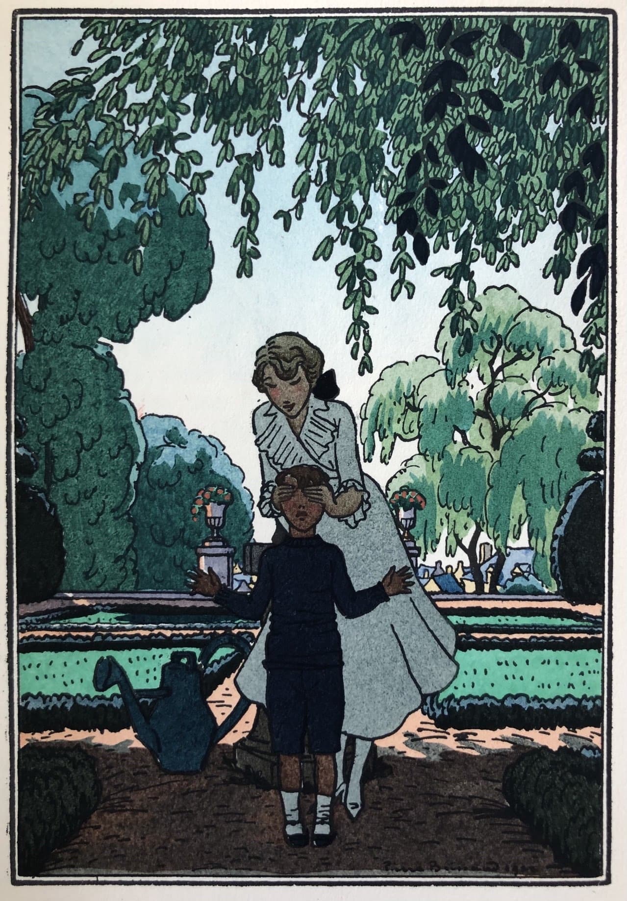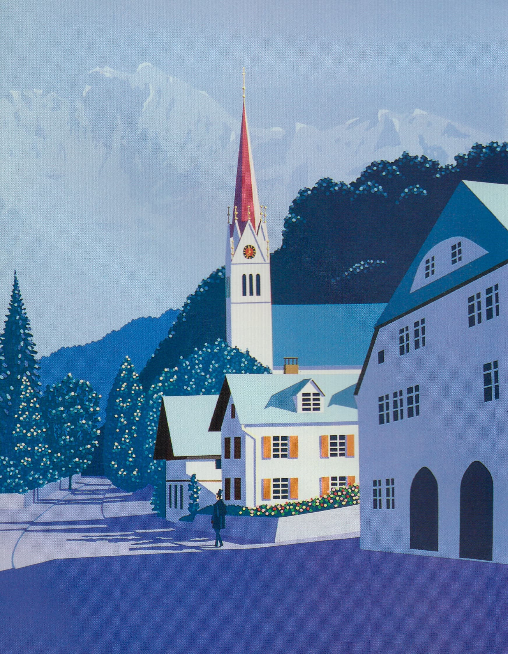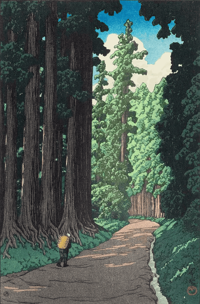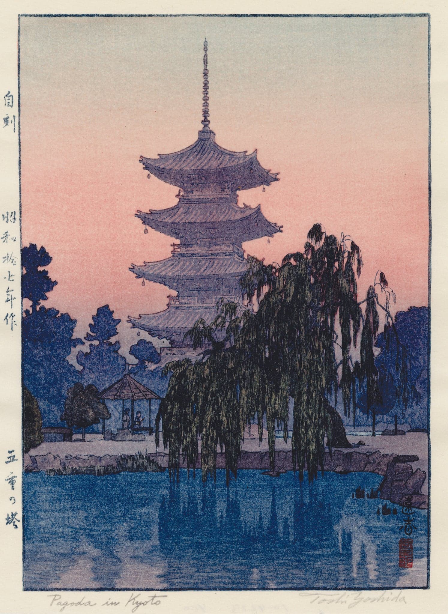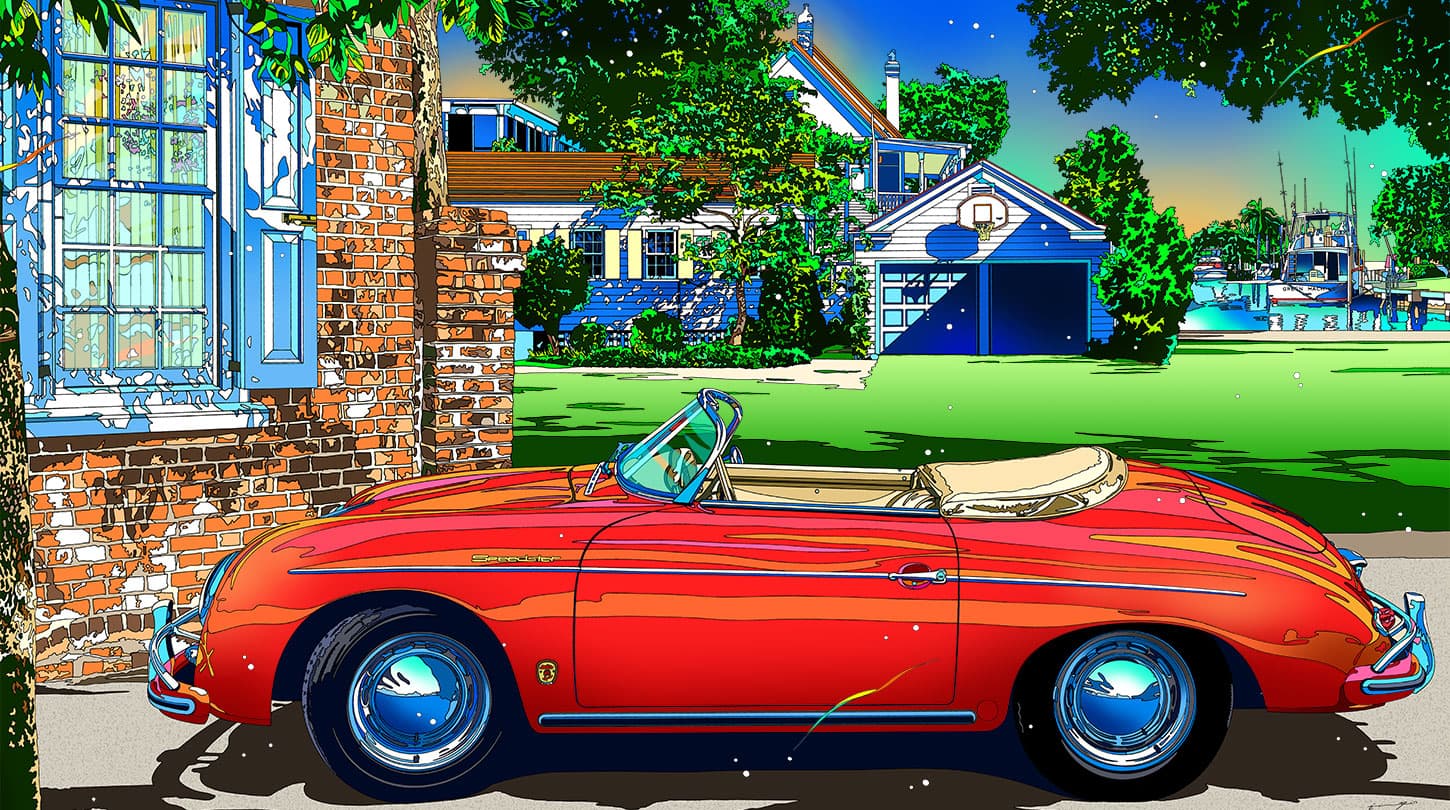 Graphic Illustration of a Long Reflecting Pool with Trees and Gradient Sky