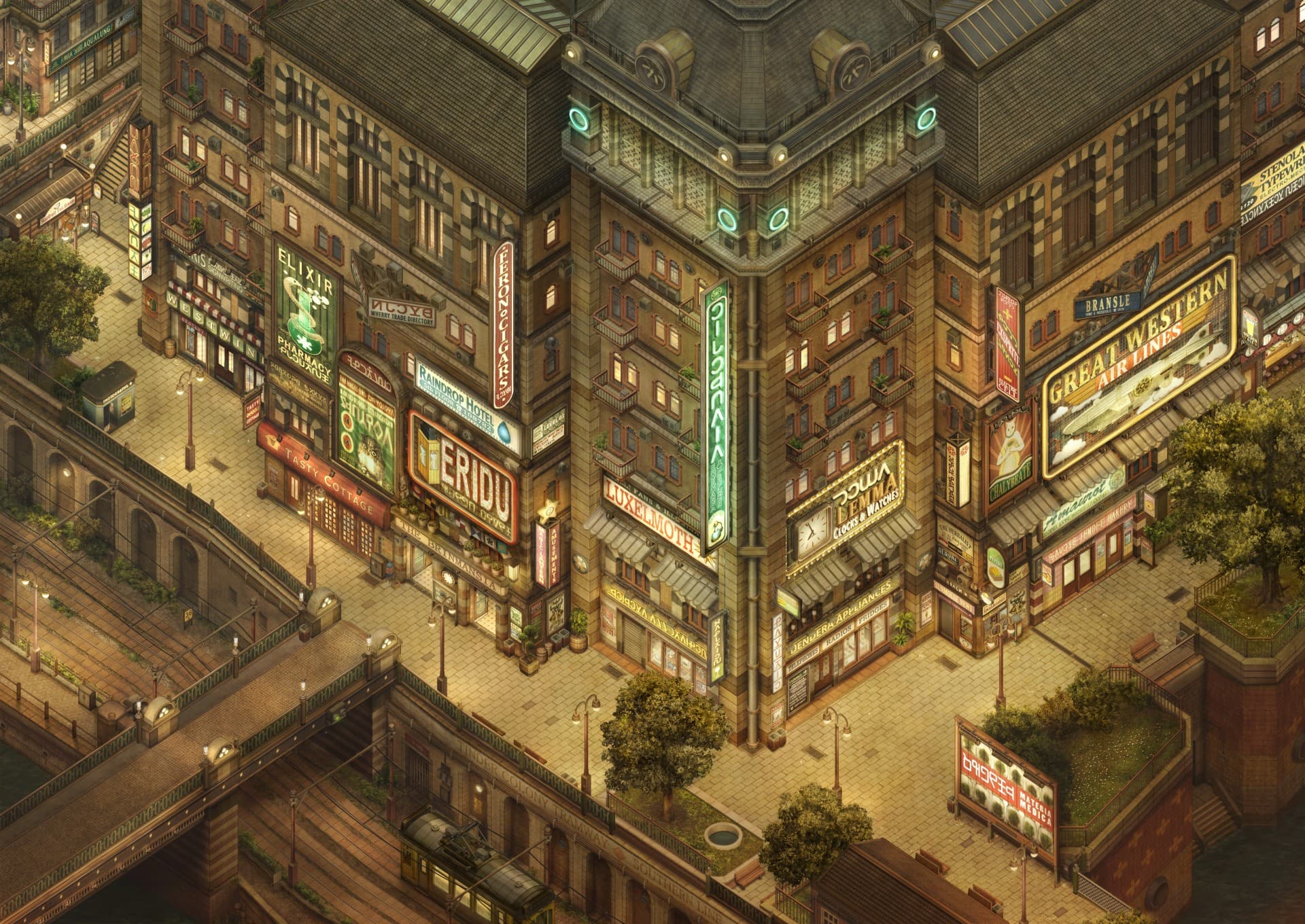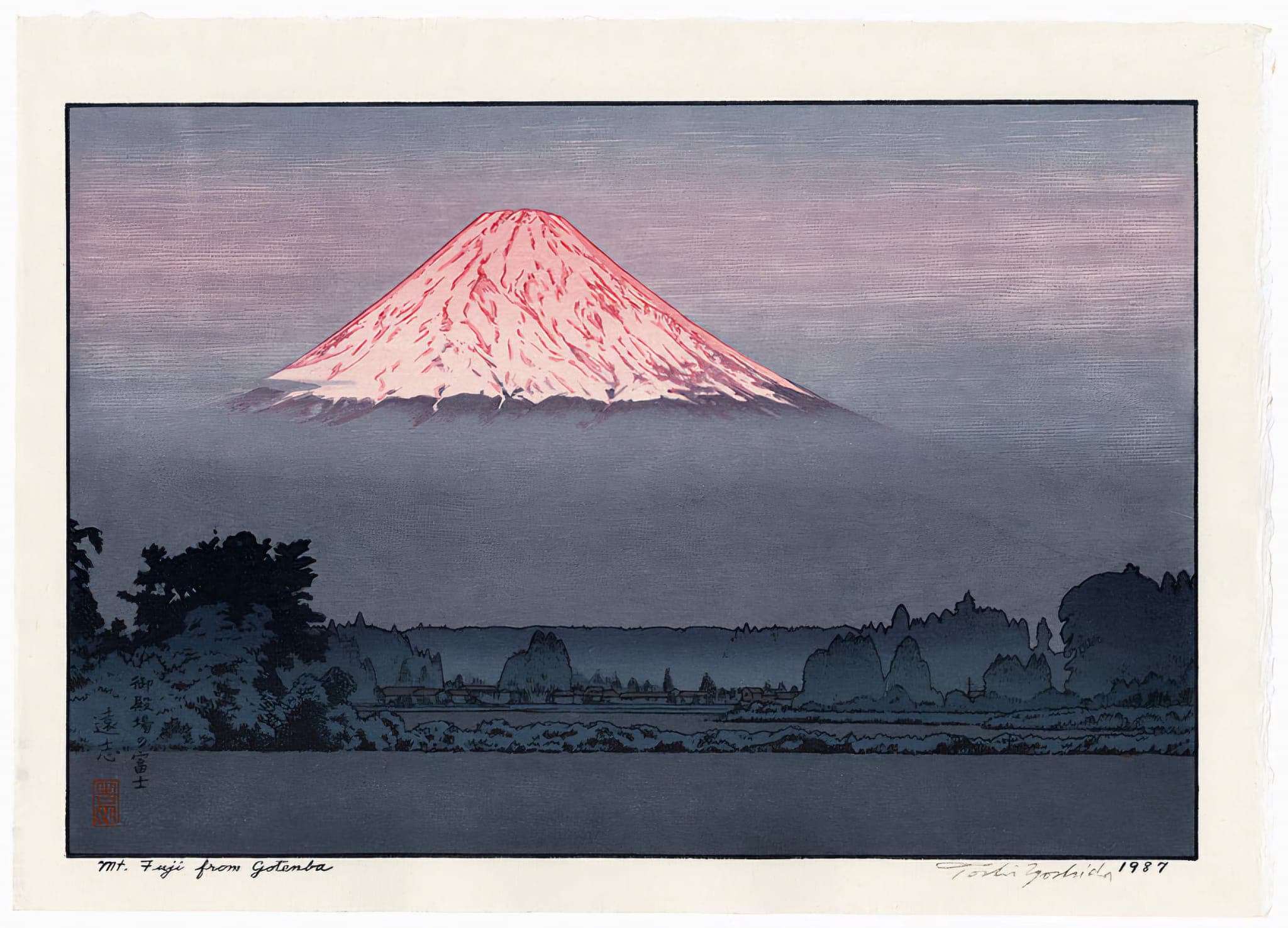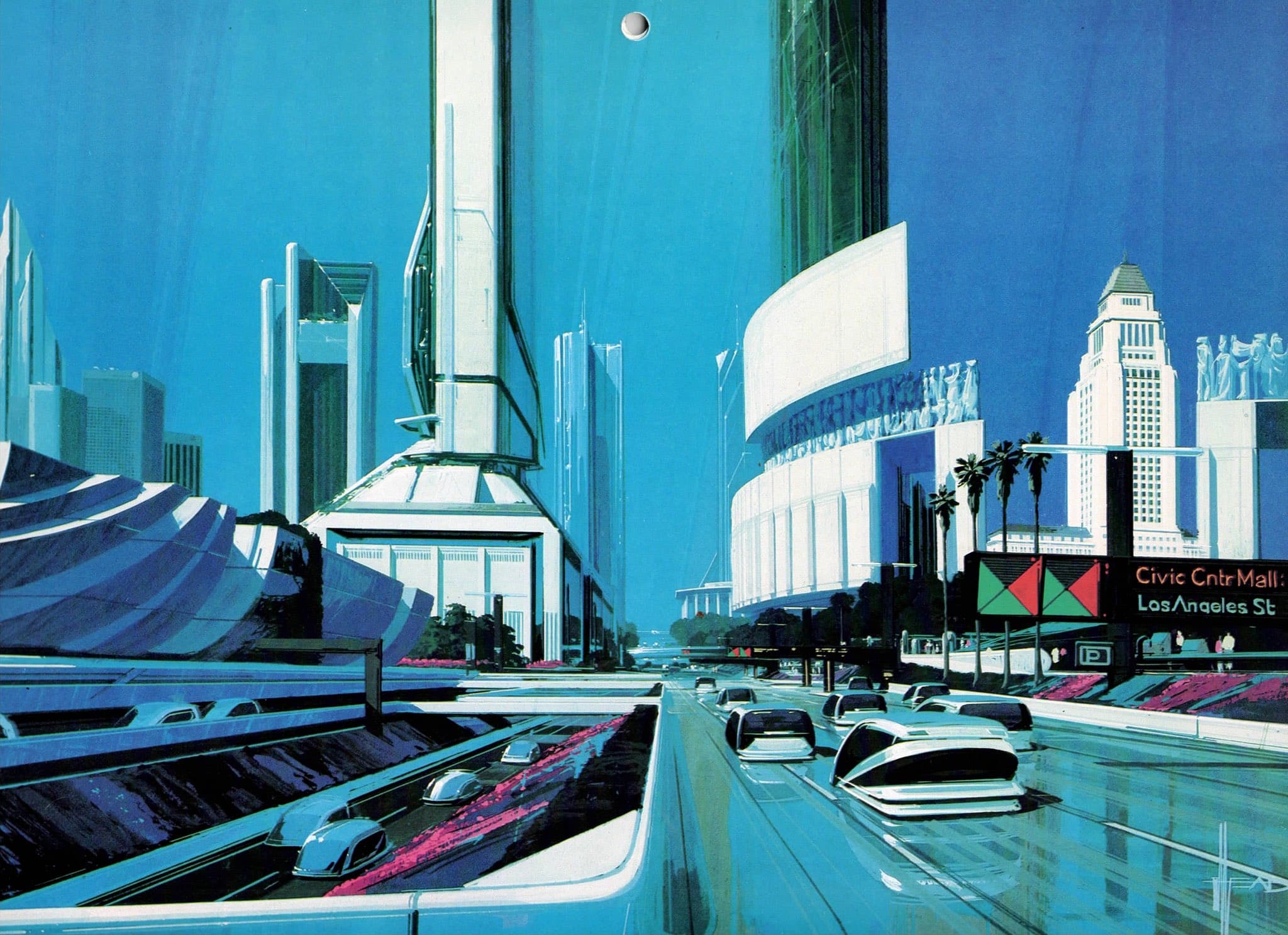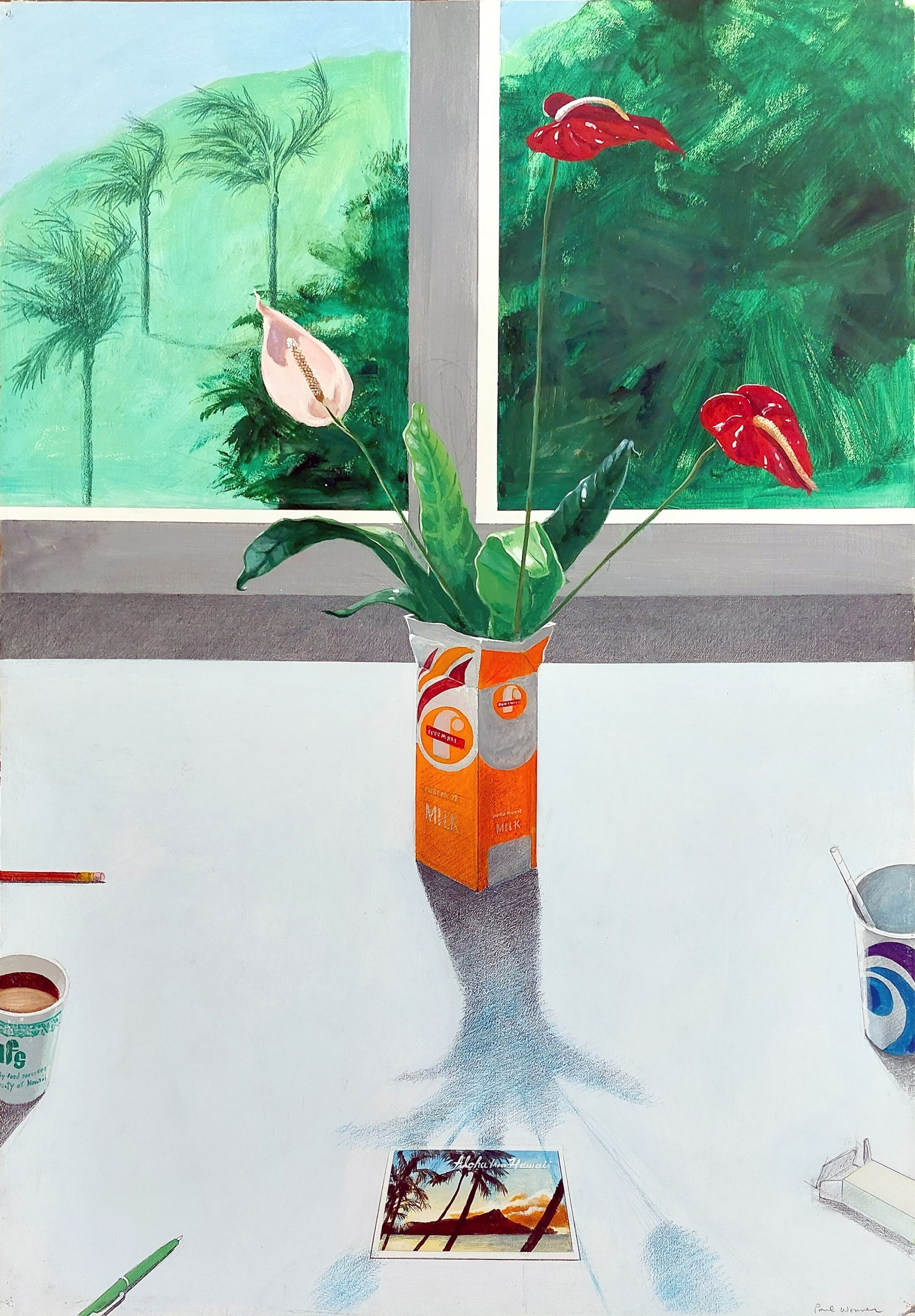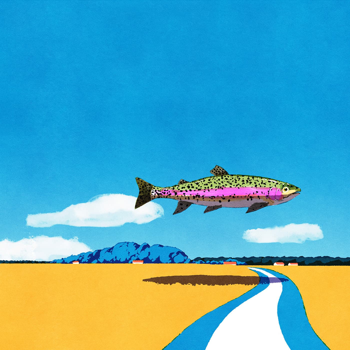 Graphic Illustration of a Long Reflecting Pool with Trees and Gradient Sky