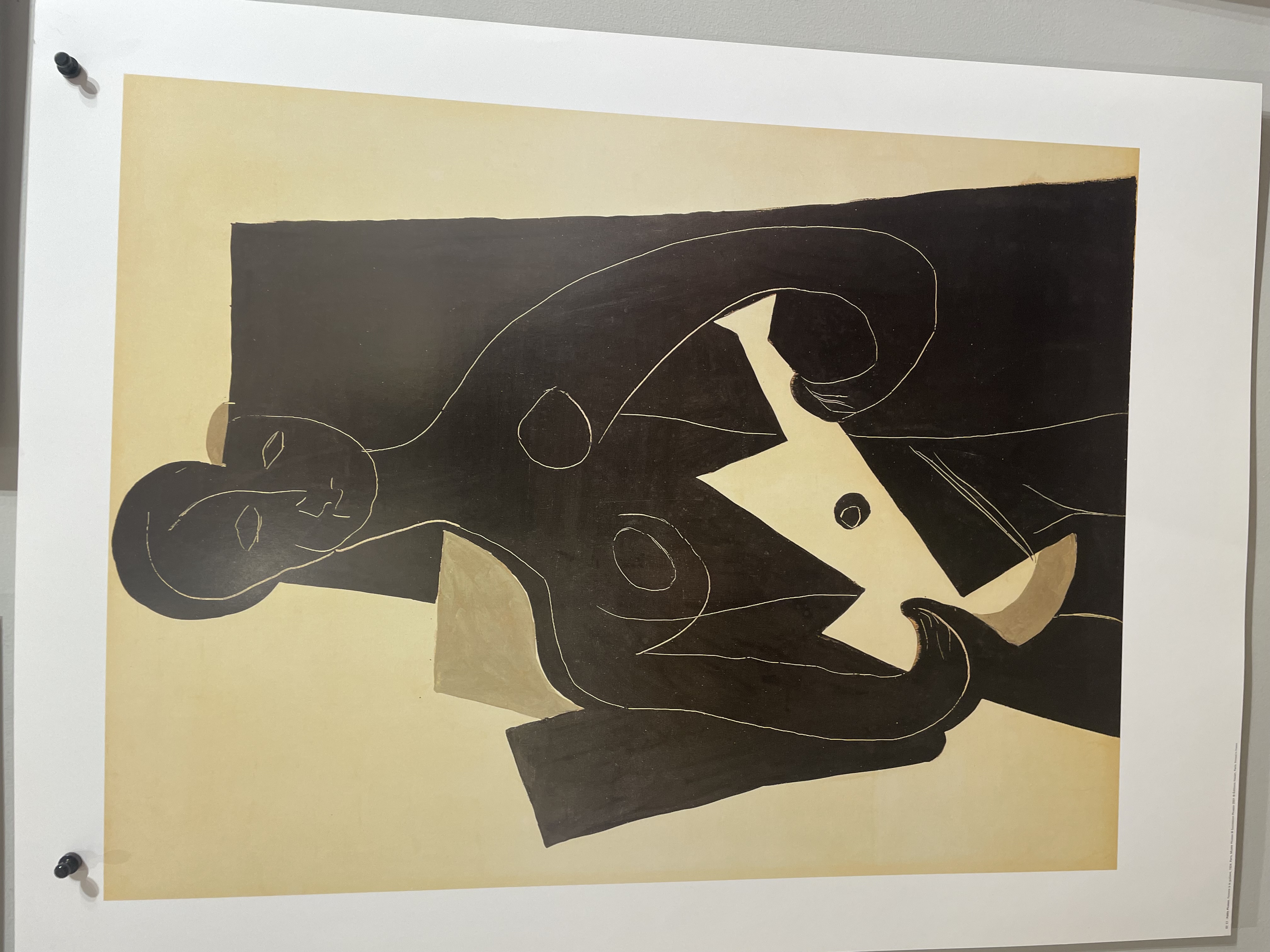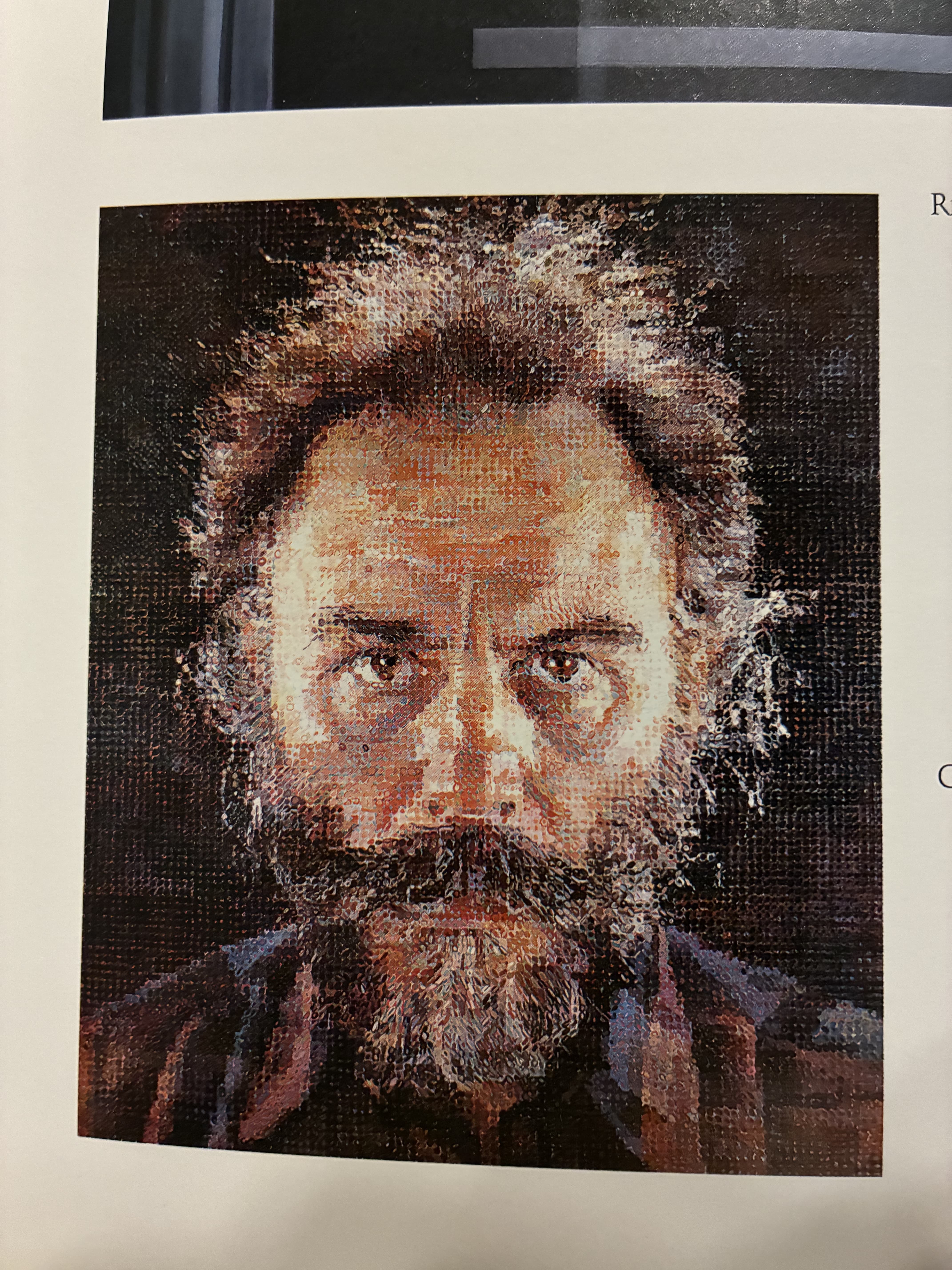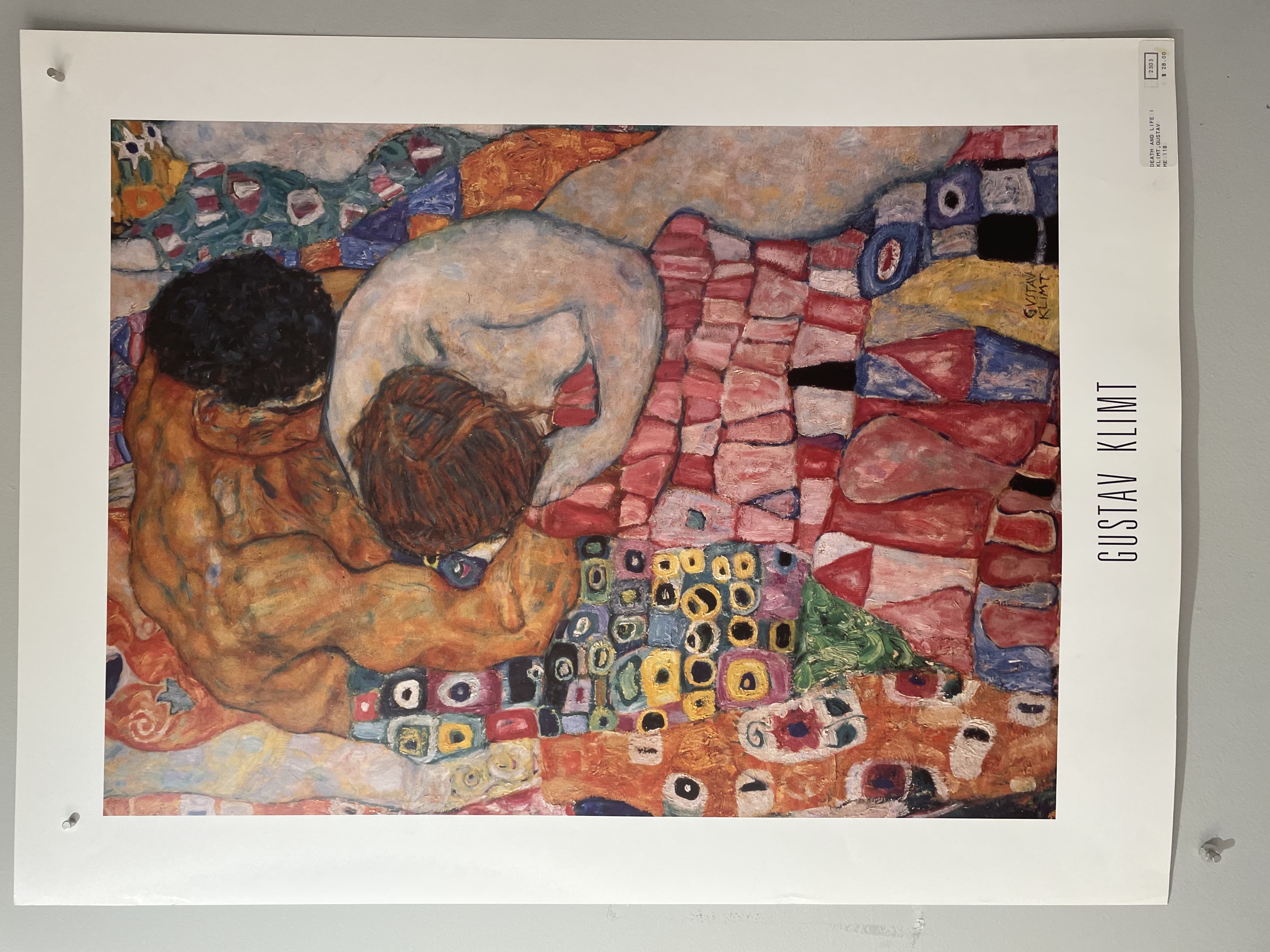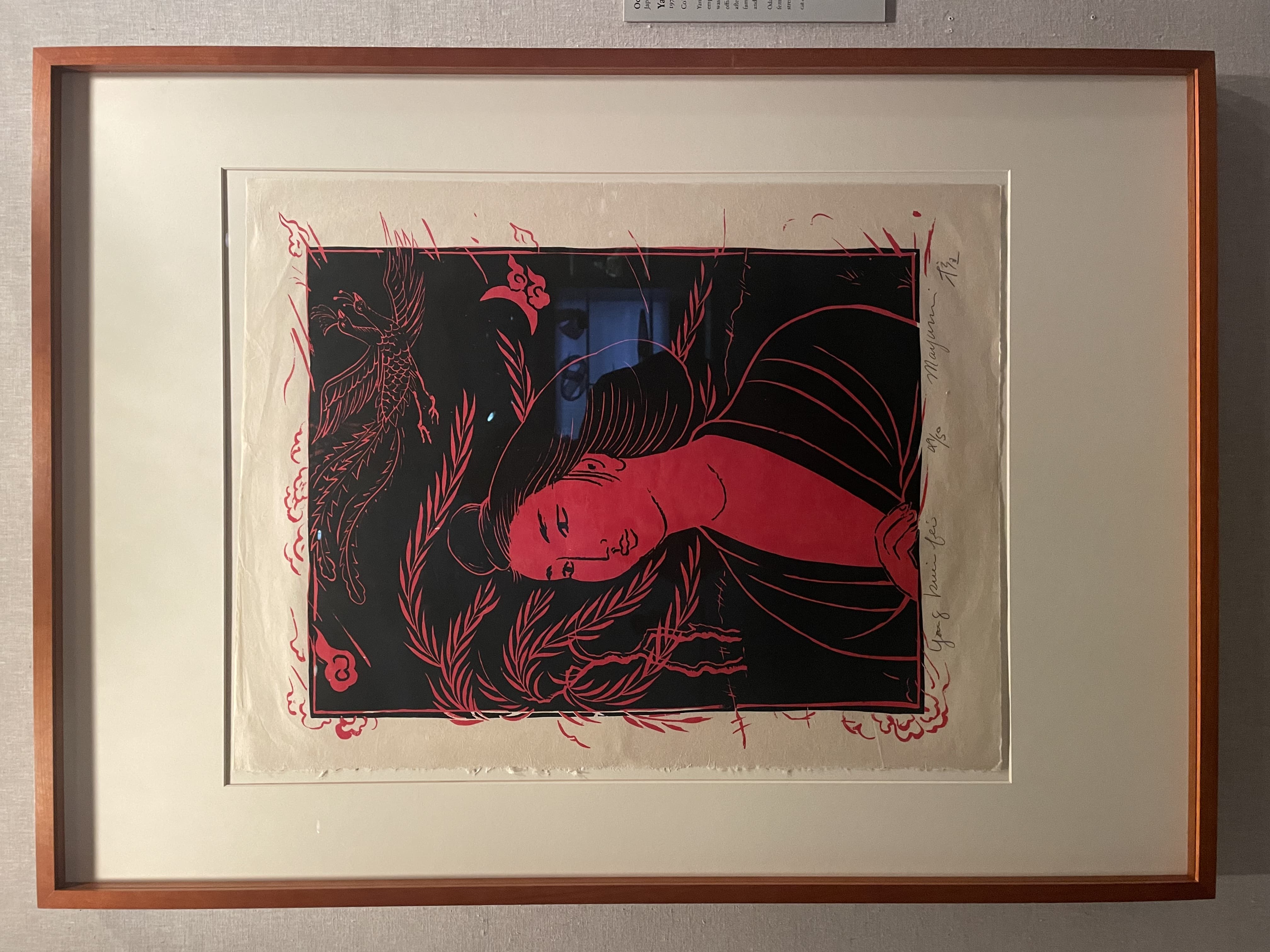 Small photograph of a woman's face taped to a wall
