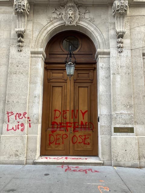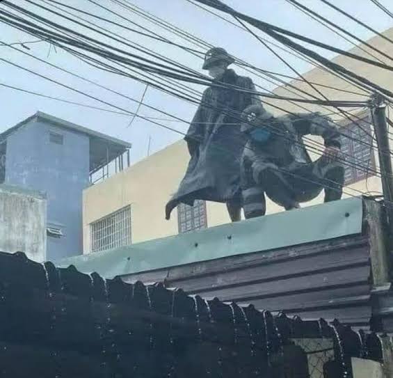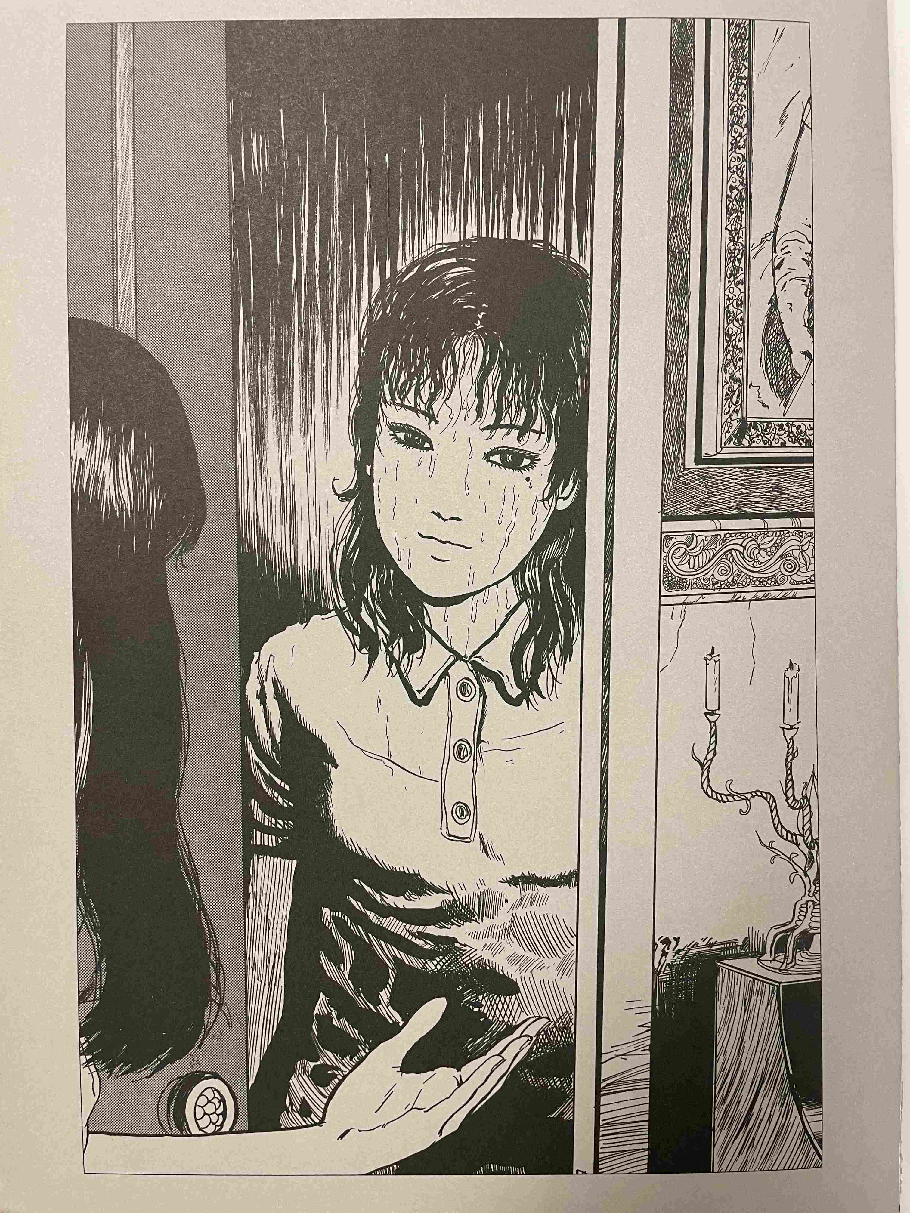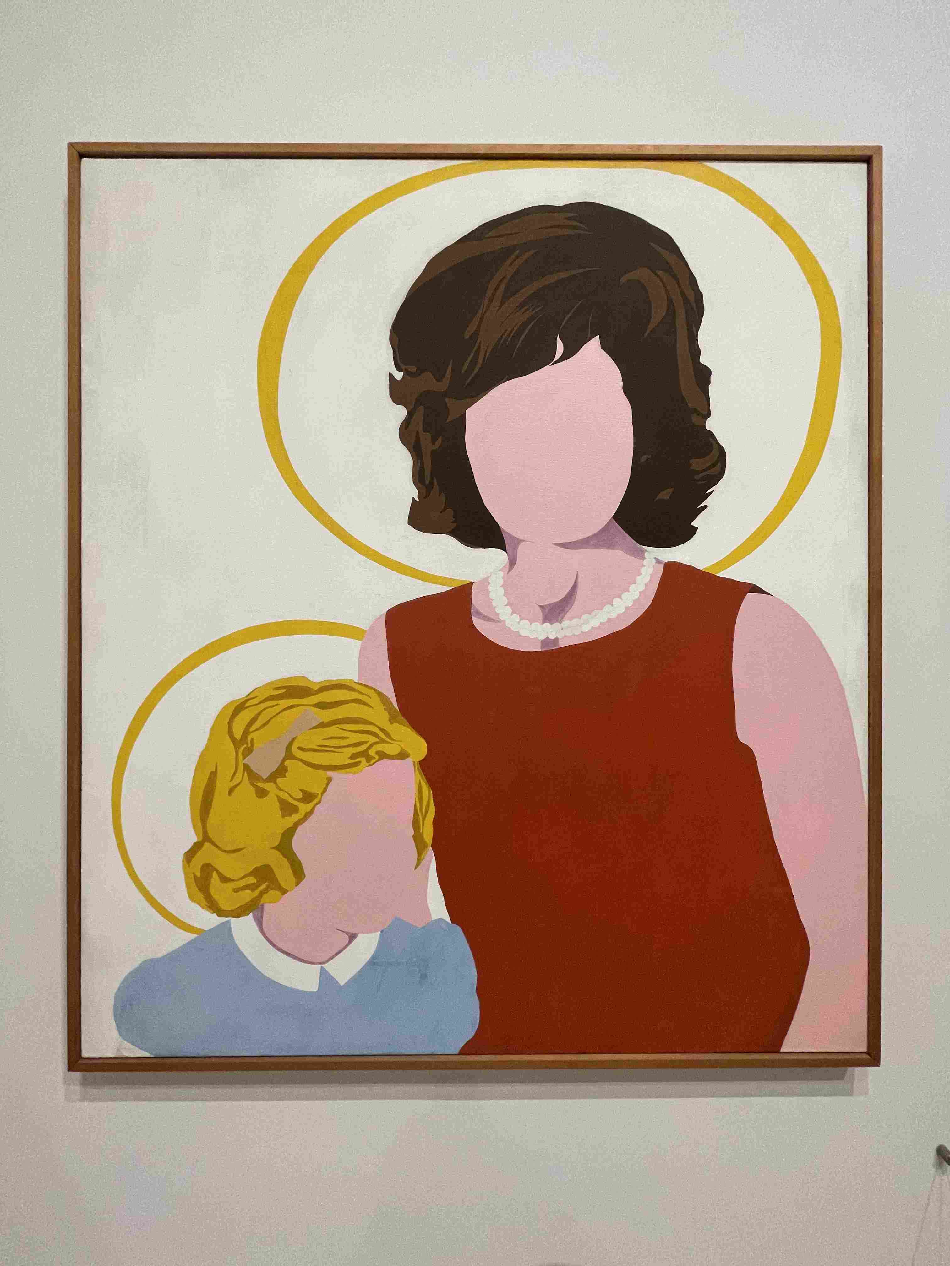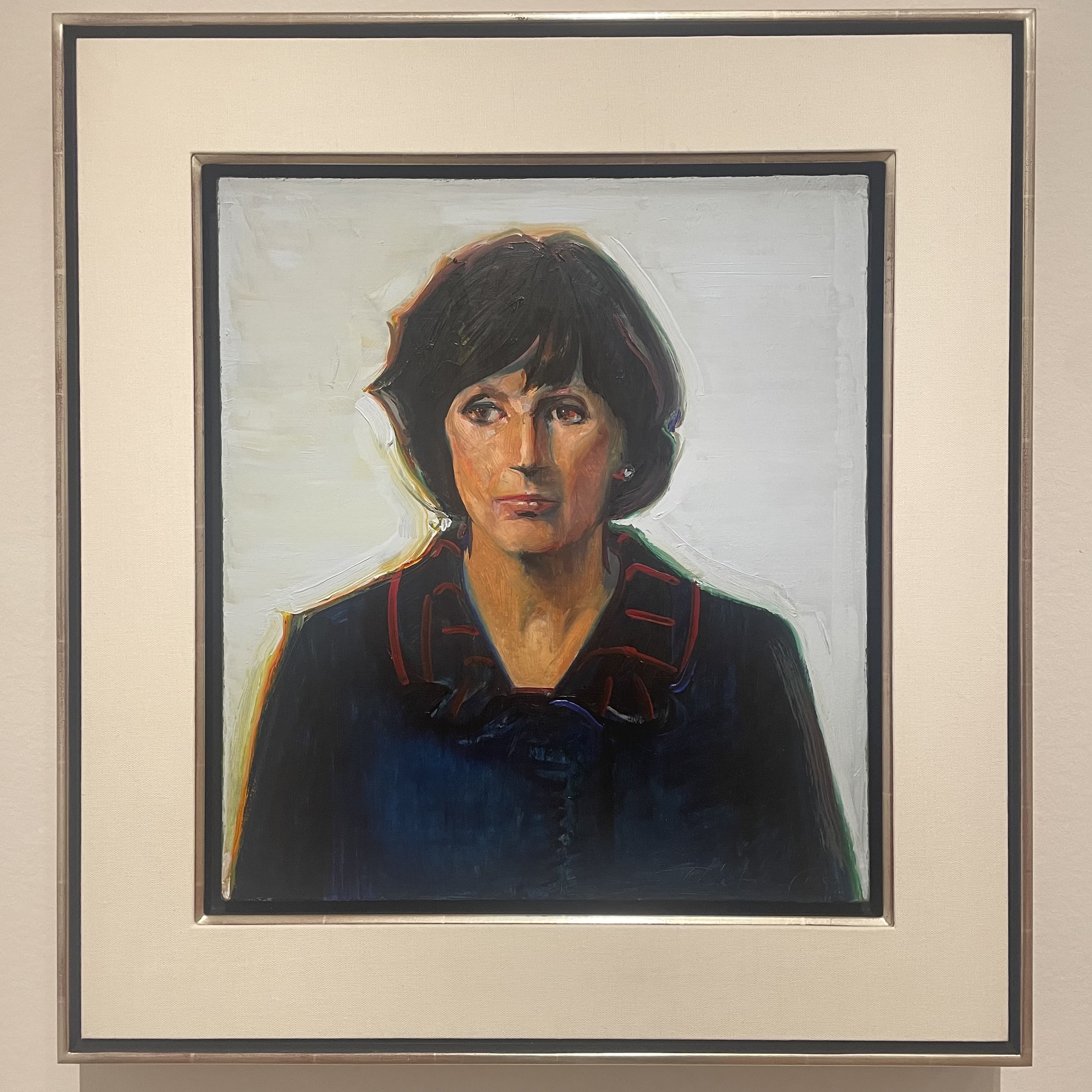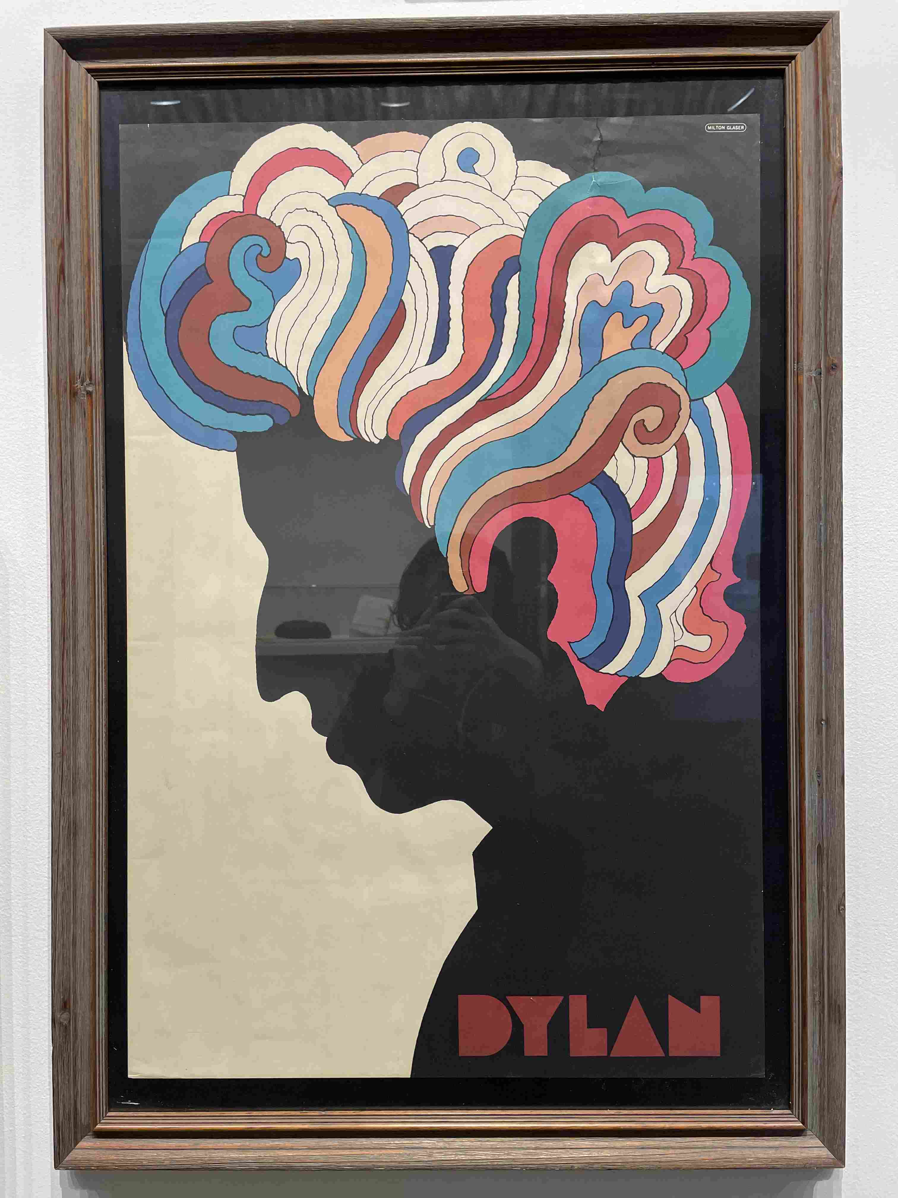 Small photograph of a woman's face taped to a wall