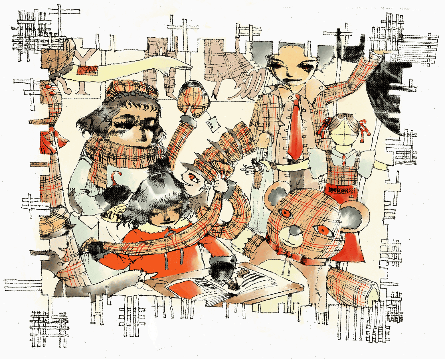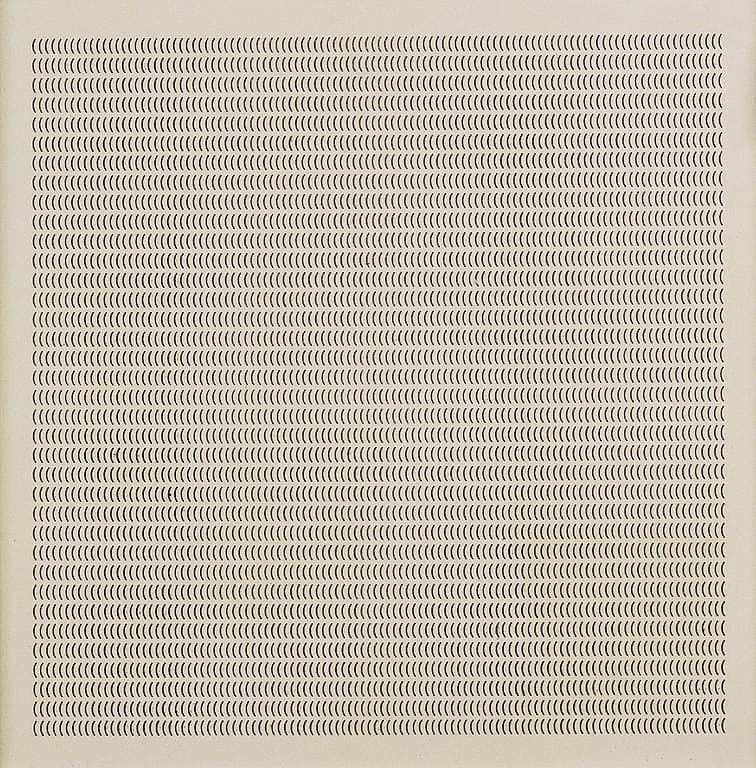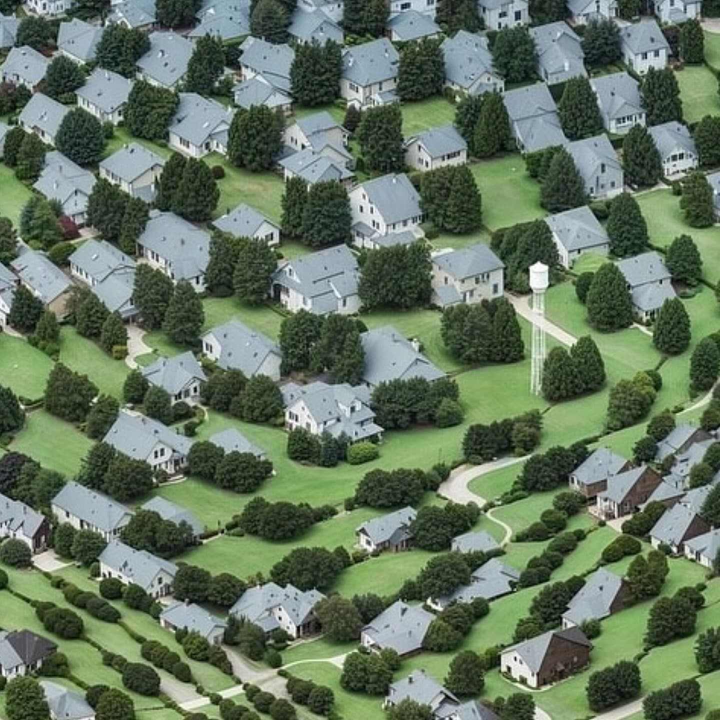 Grid of Thirty Black Ink Line Drawings of Suburban and Rural Scenes