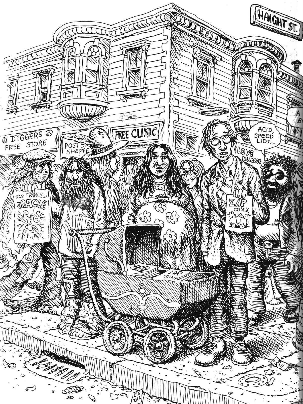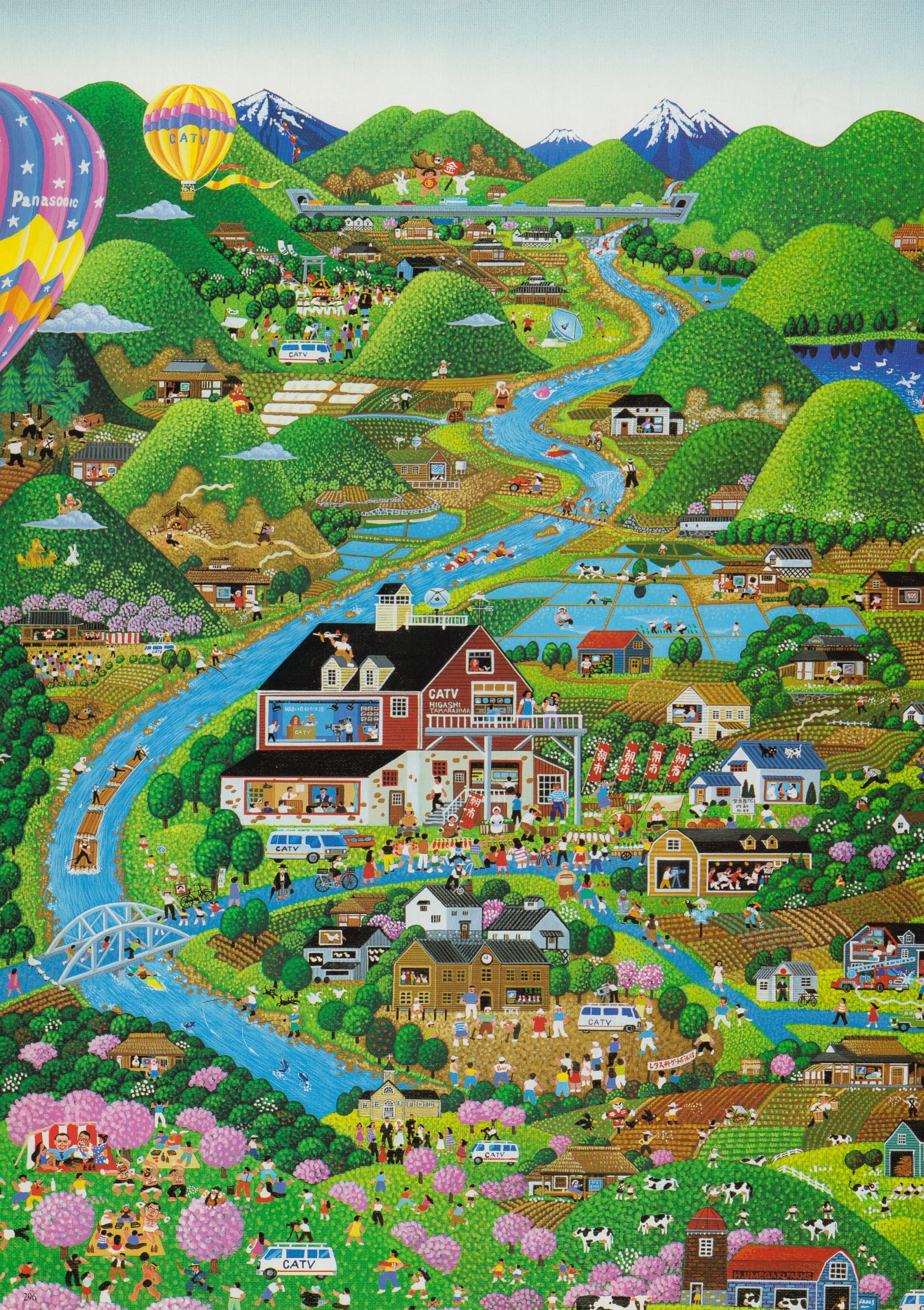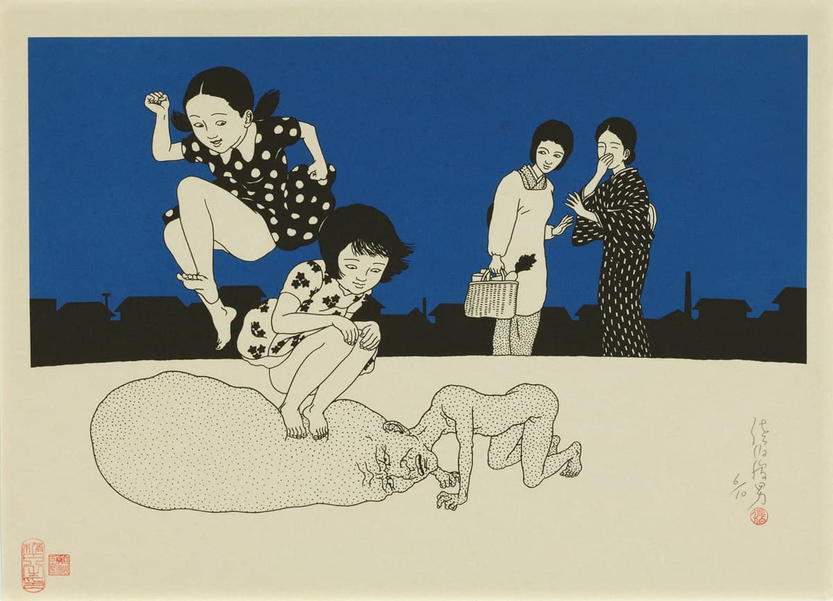 Grid of Thirty Black Ink Line Drawings of Suburban and Rural Scenes