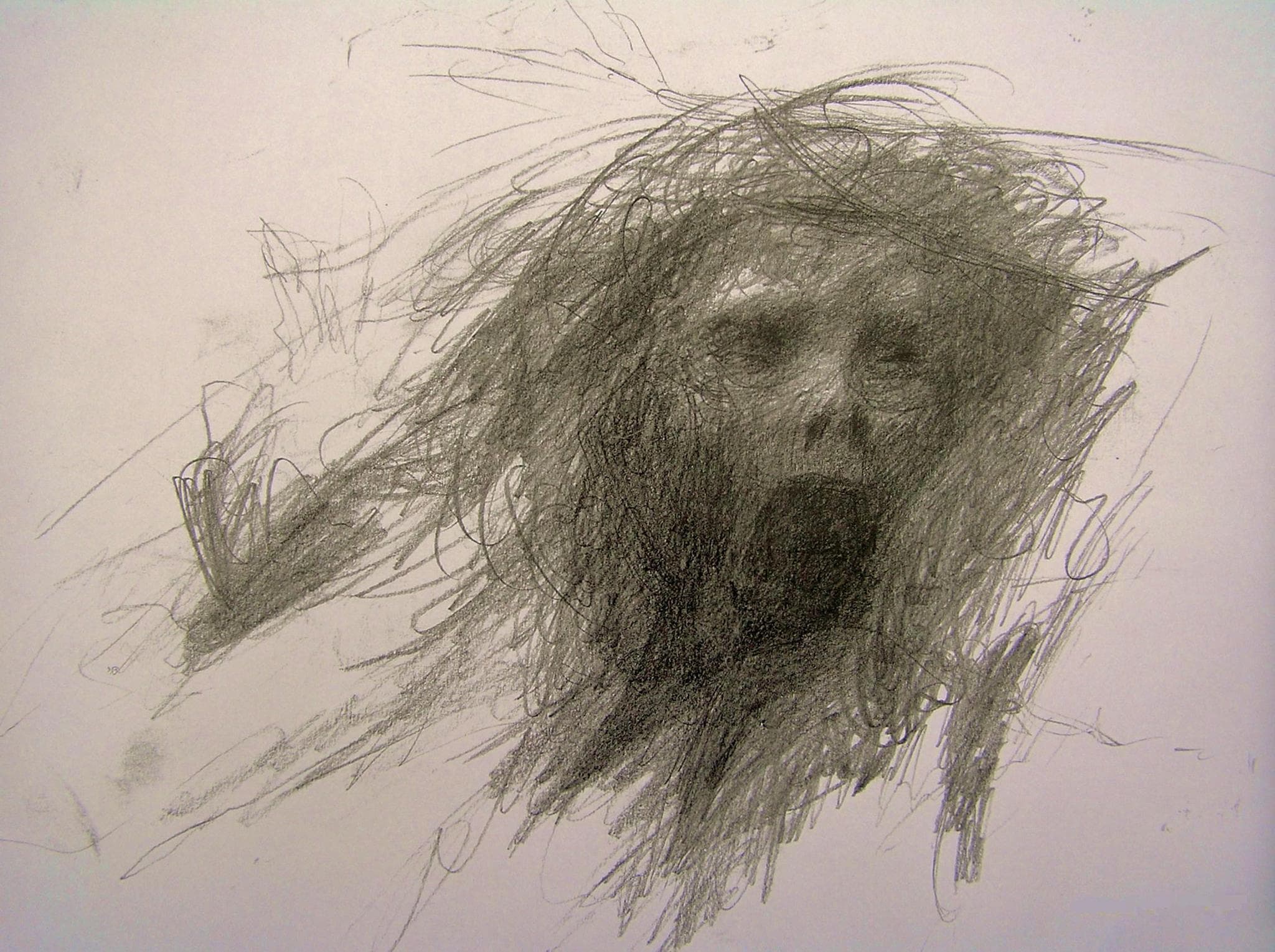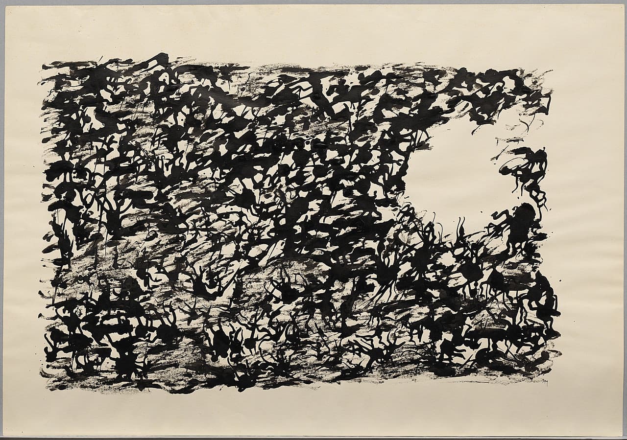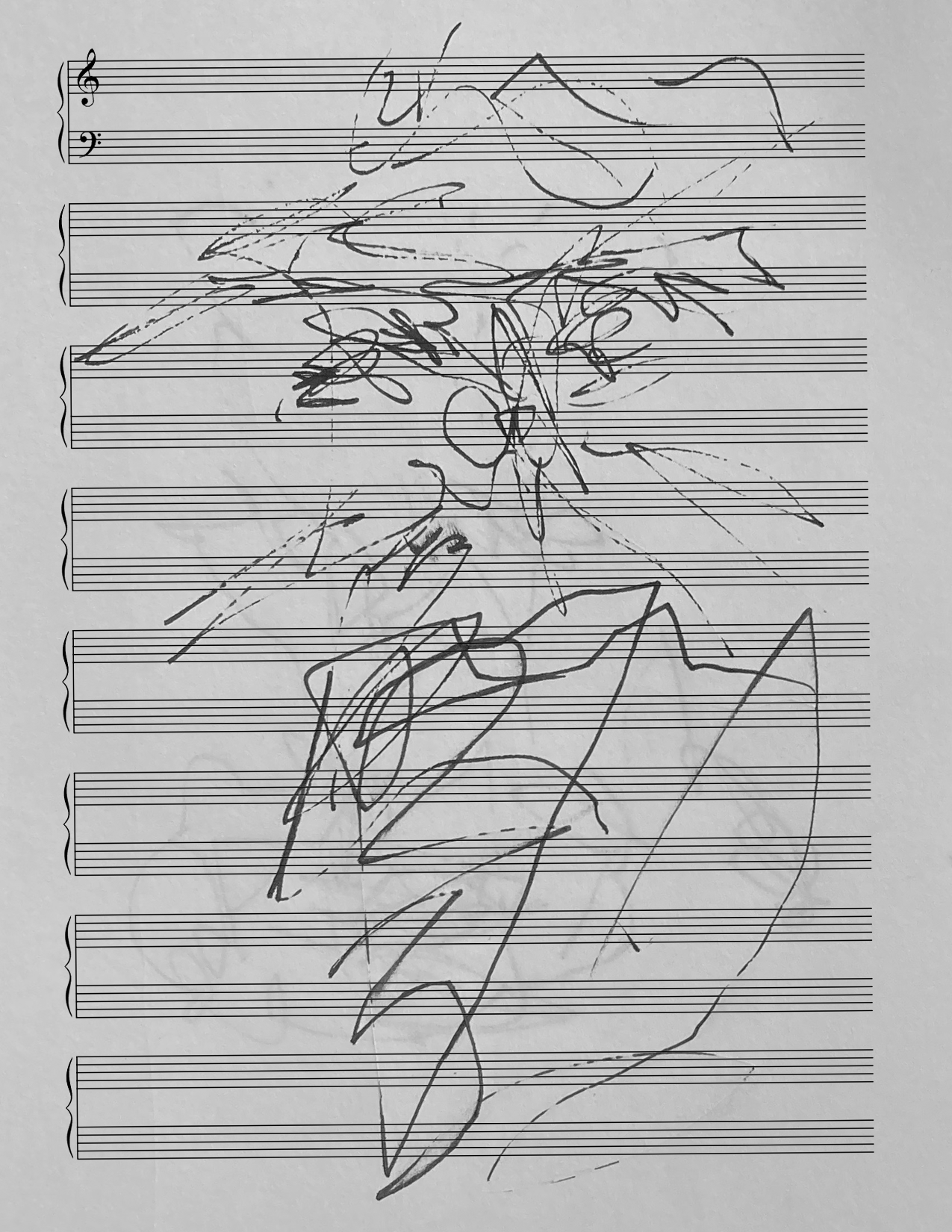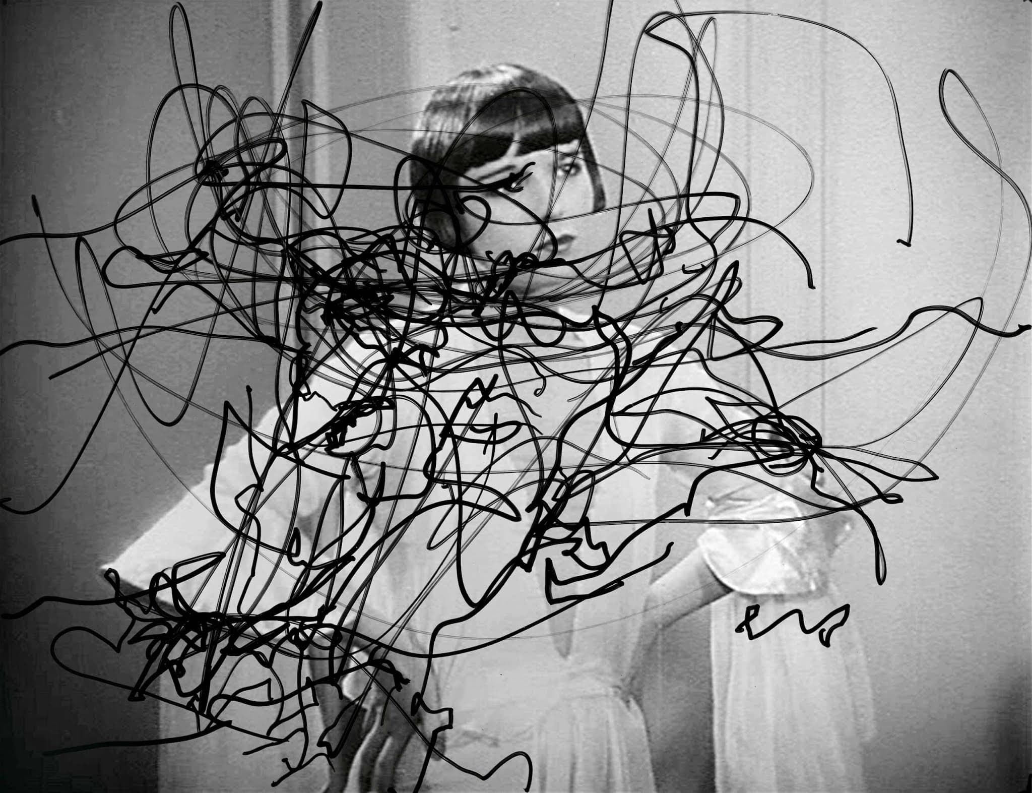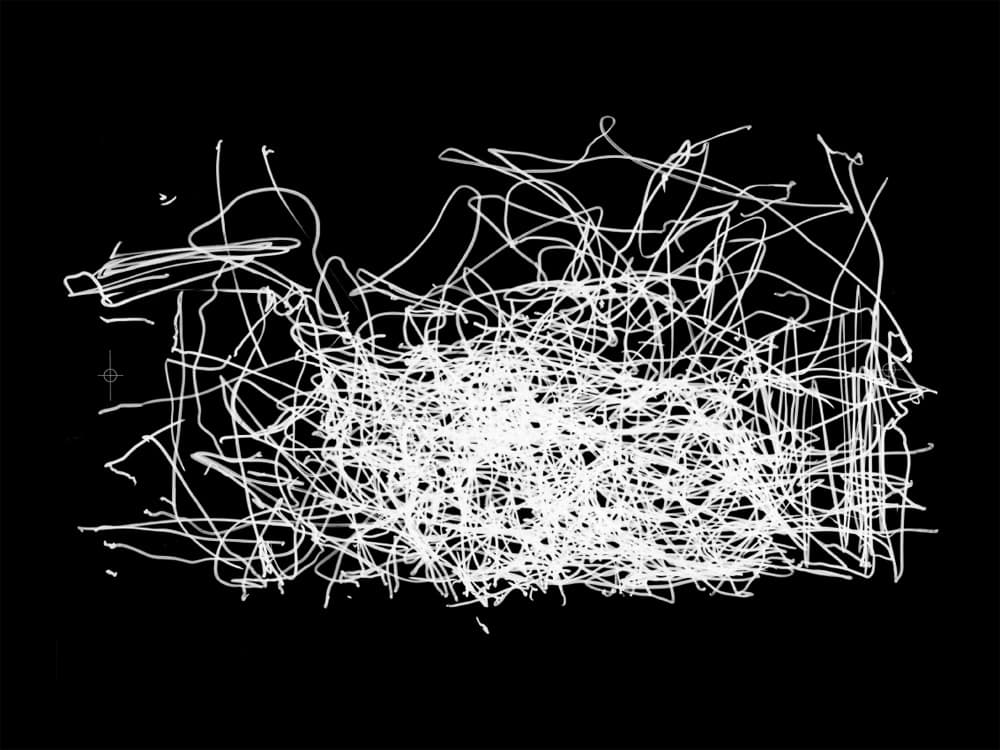 Abstract Drawing of Overlapping Black and Gray Gestural Lines on White Paper