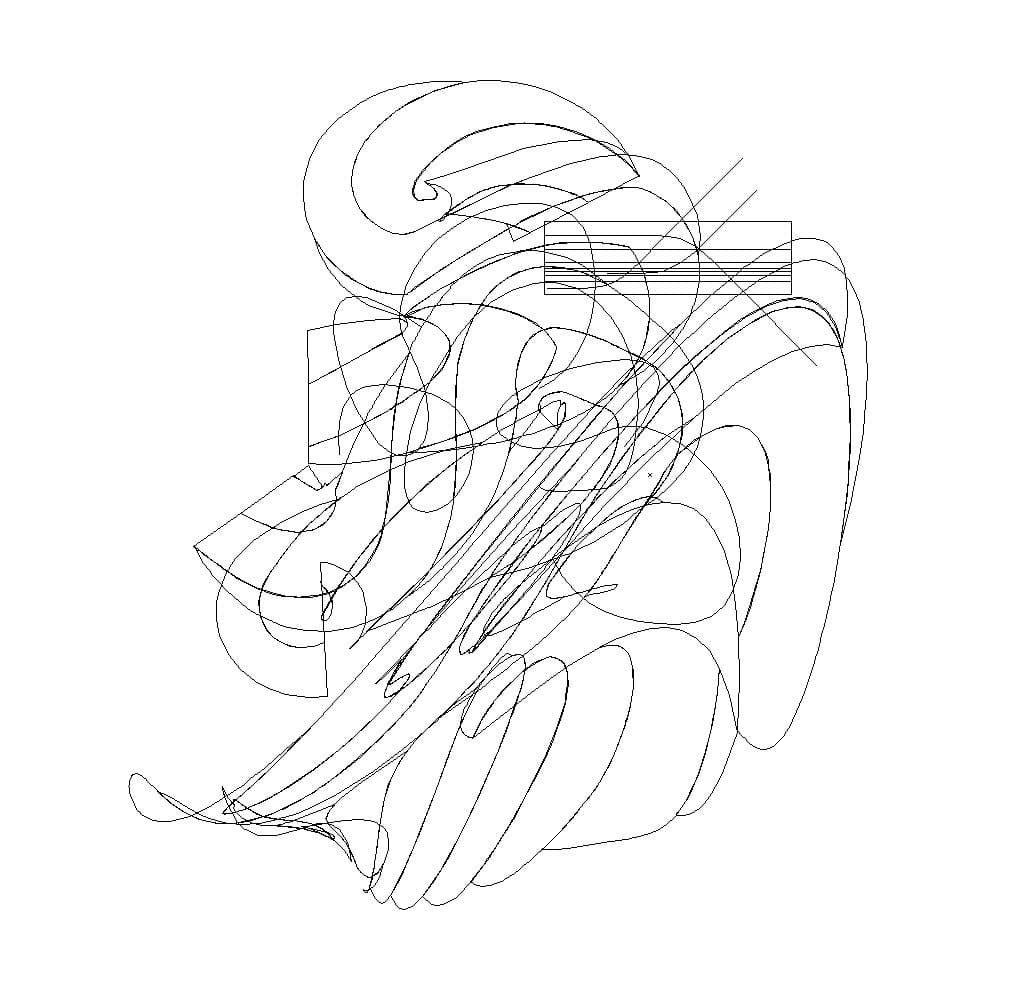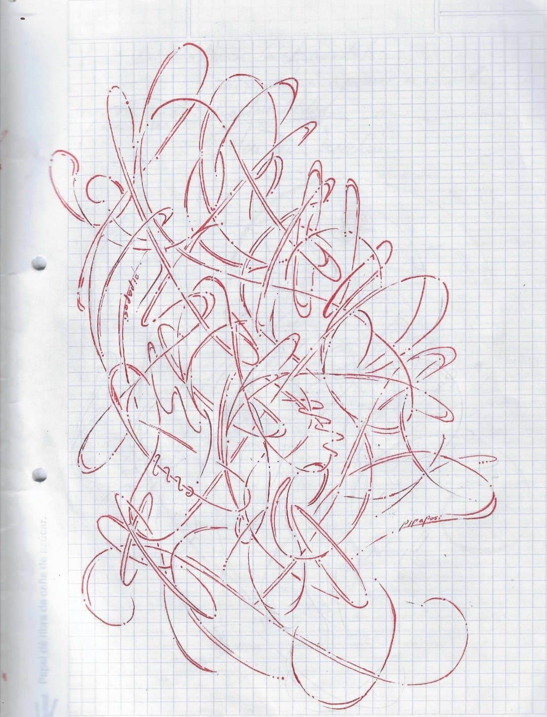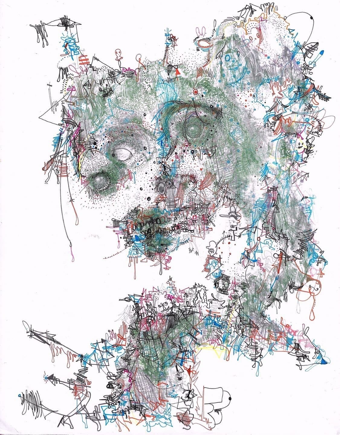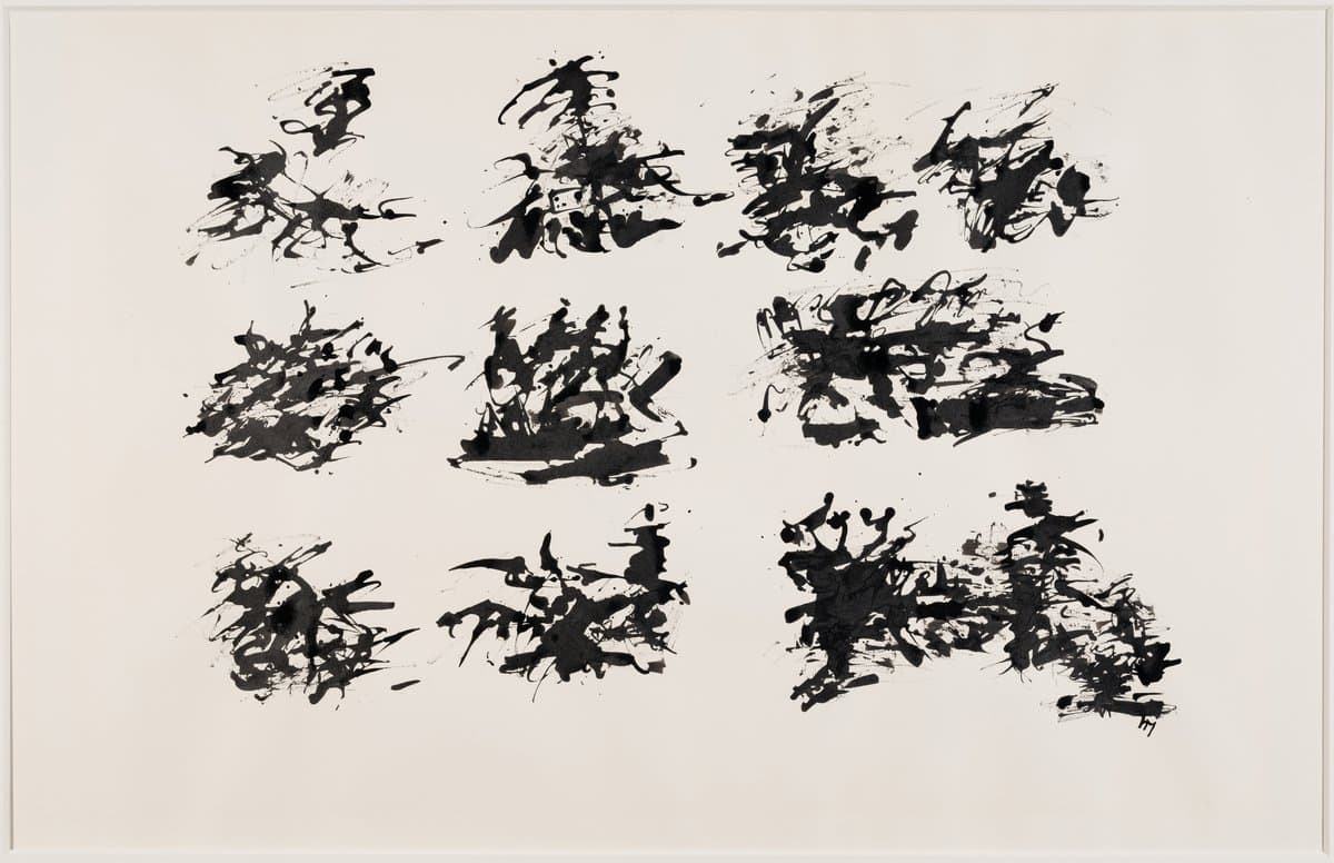 Abstract Drawing of Overlapping Black and Gray Gestural Lines on White Paper