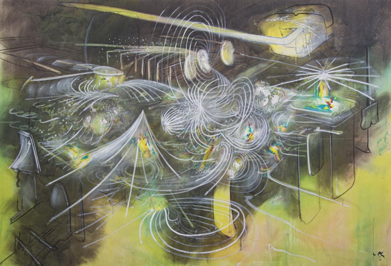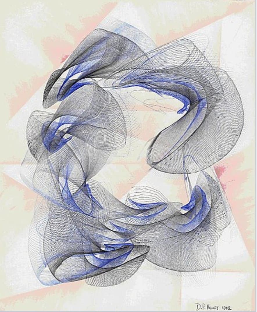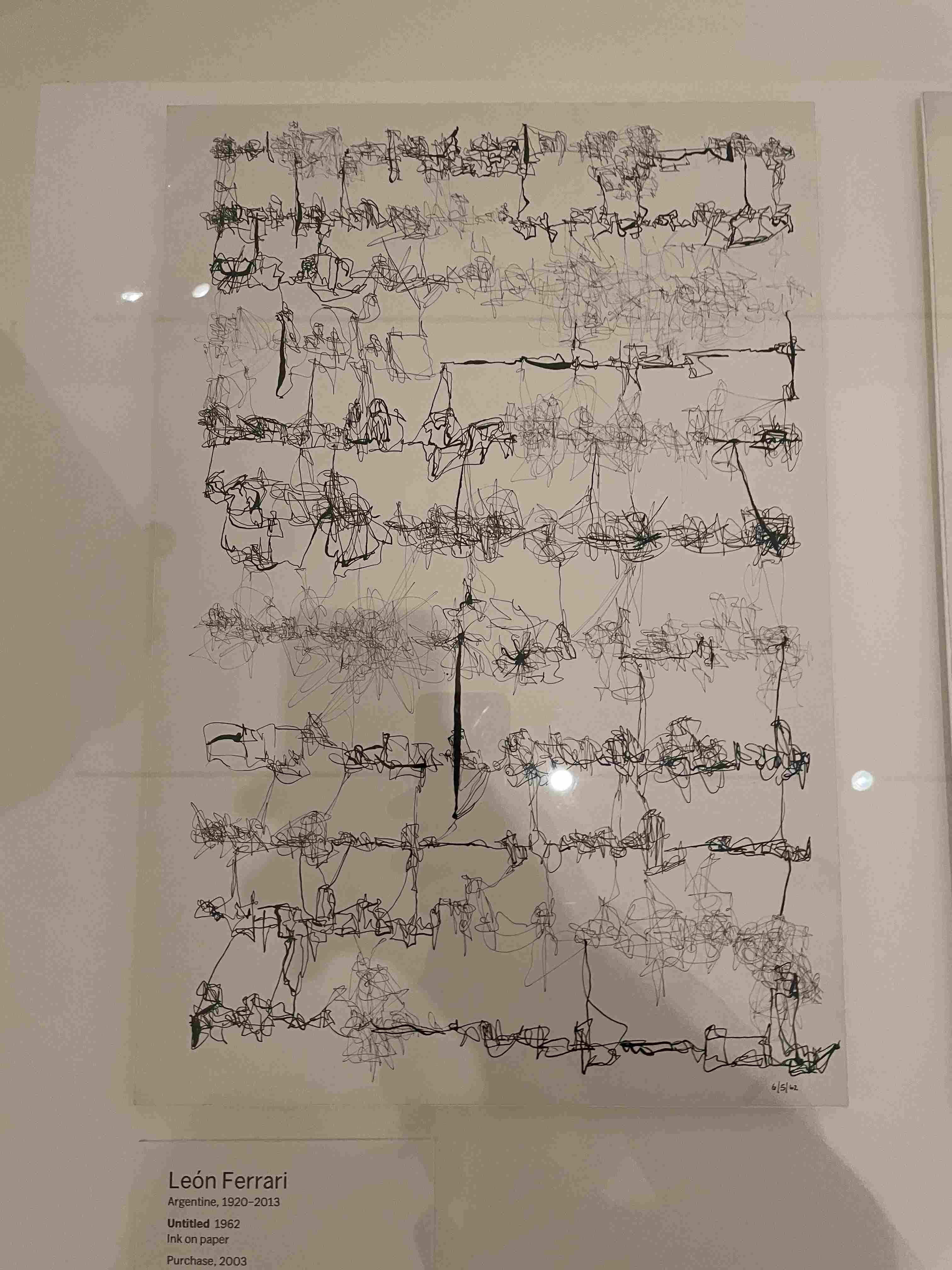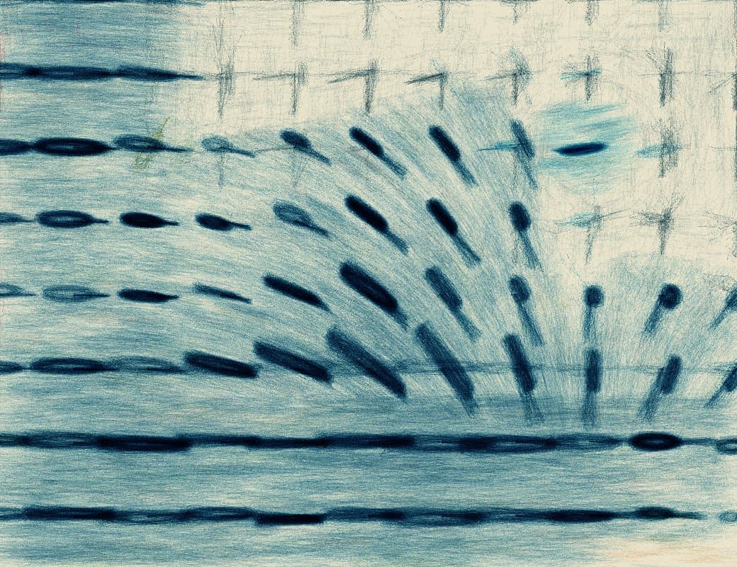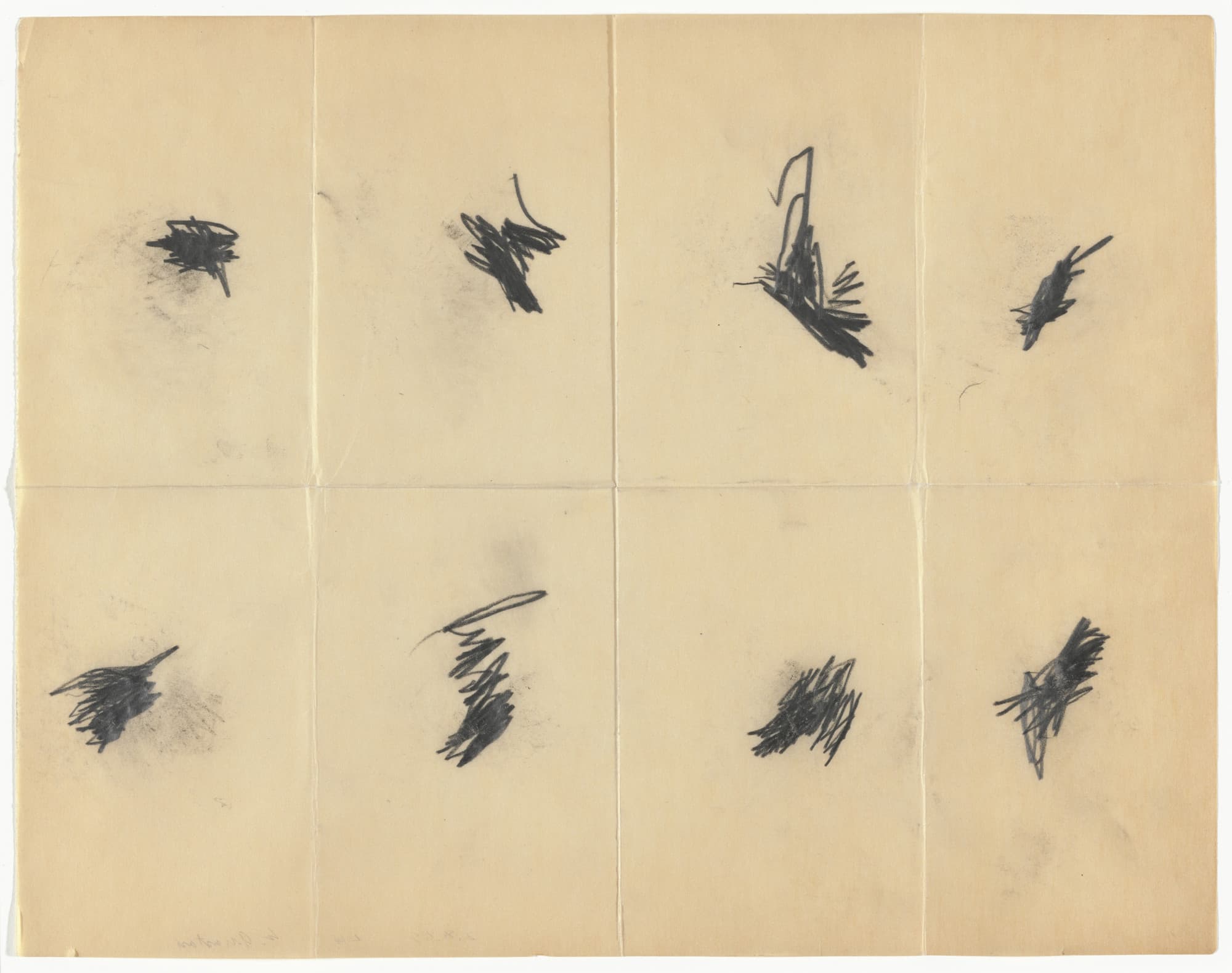 Abstract Drawing of Overlapping Black and Gray Gestural Lines on White Paper