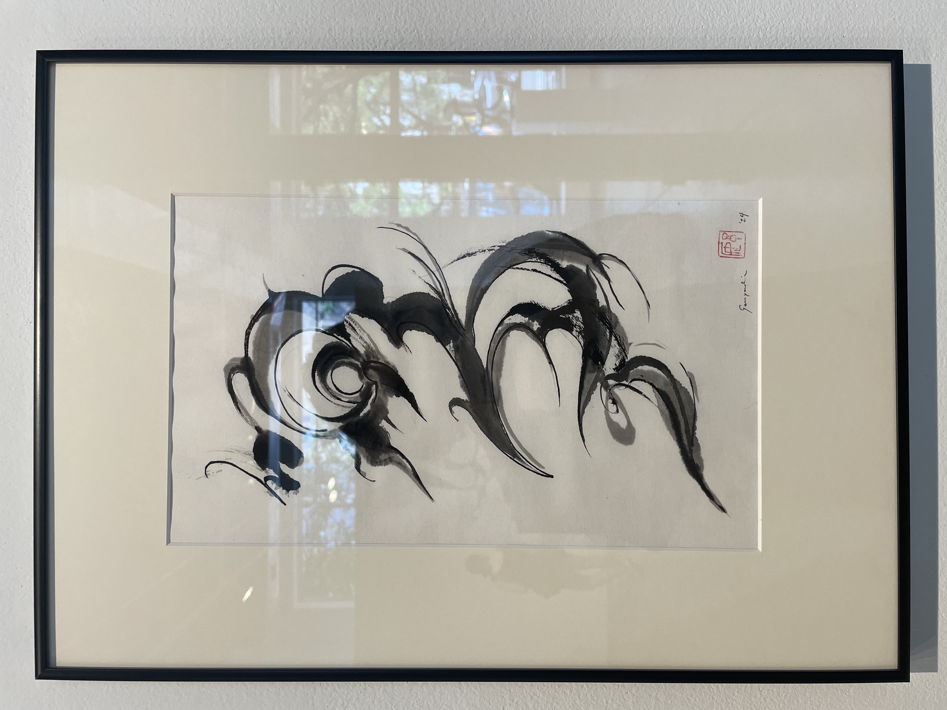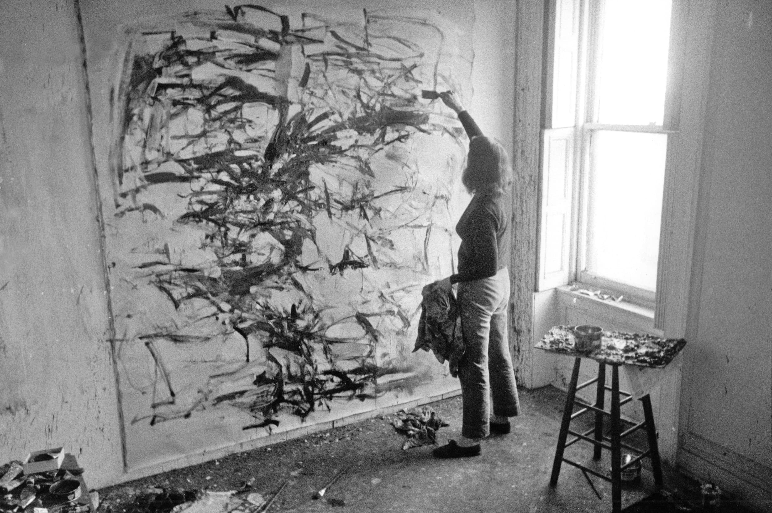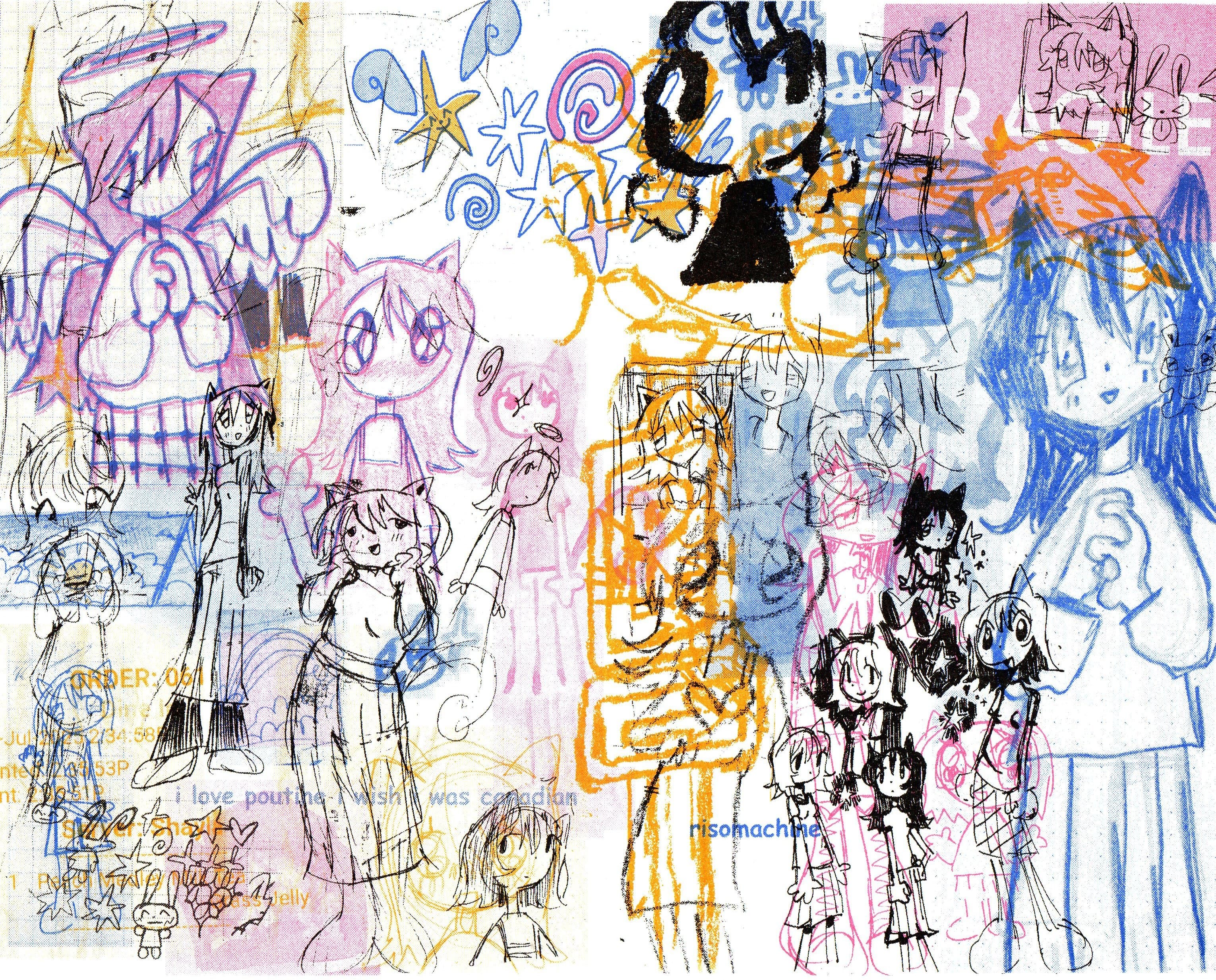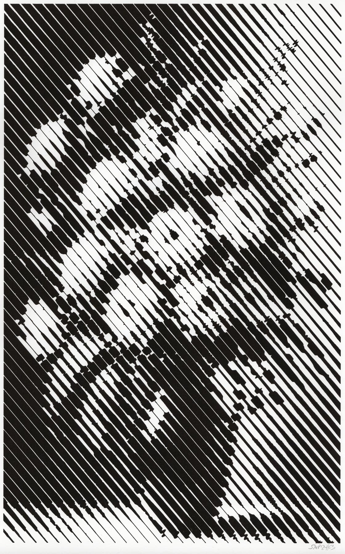 Abstract Drawing of Overlapping Black and Gray Gestural Lines on White Paper