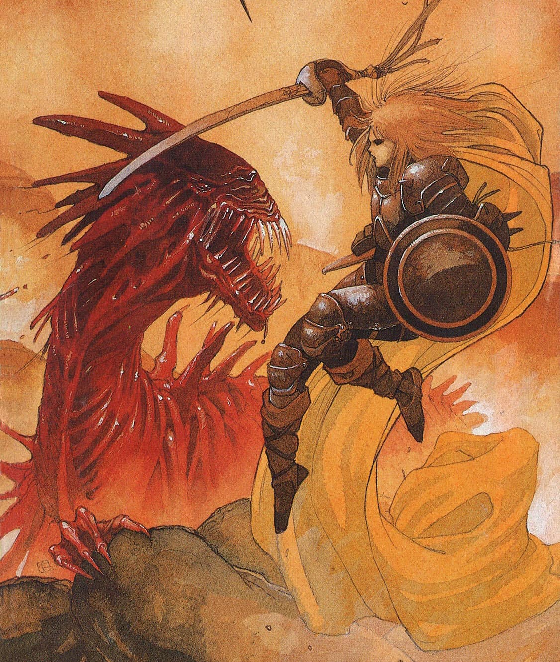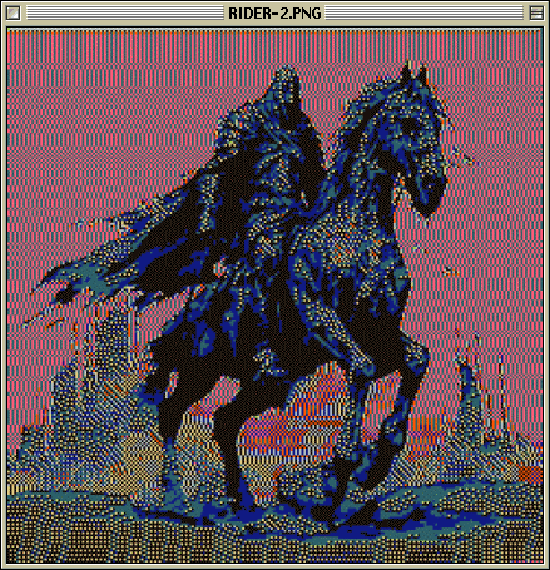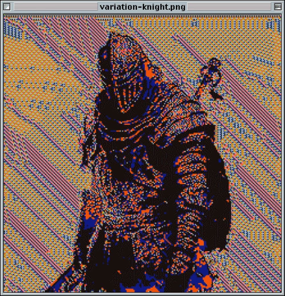 Pixel Art of an Armored Knight with a Sword on a Red Background in a Computer Window