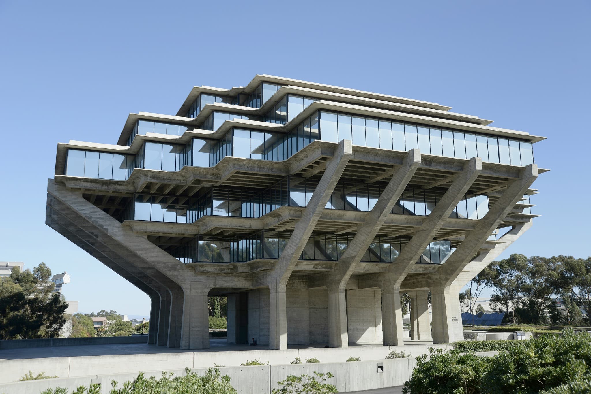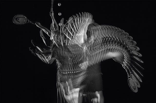 Black and white image of dark foliage or bushes above a light ground plane