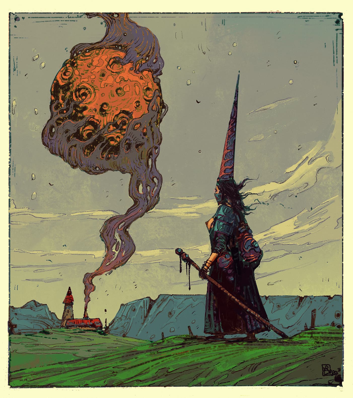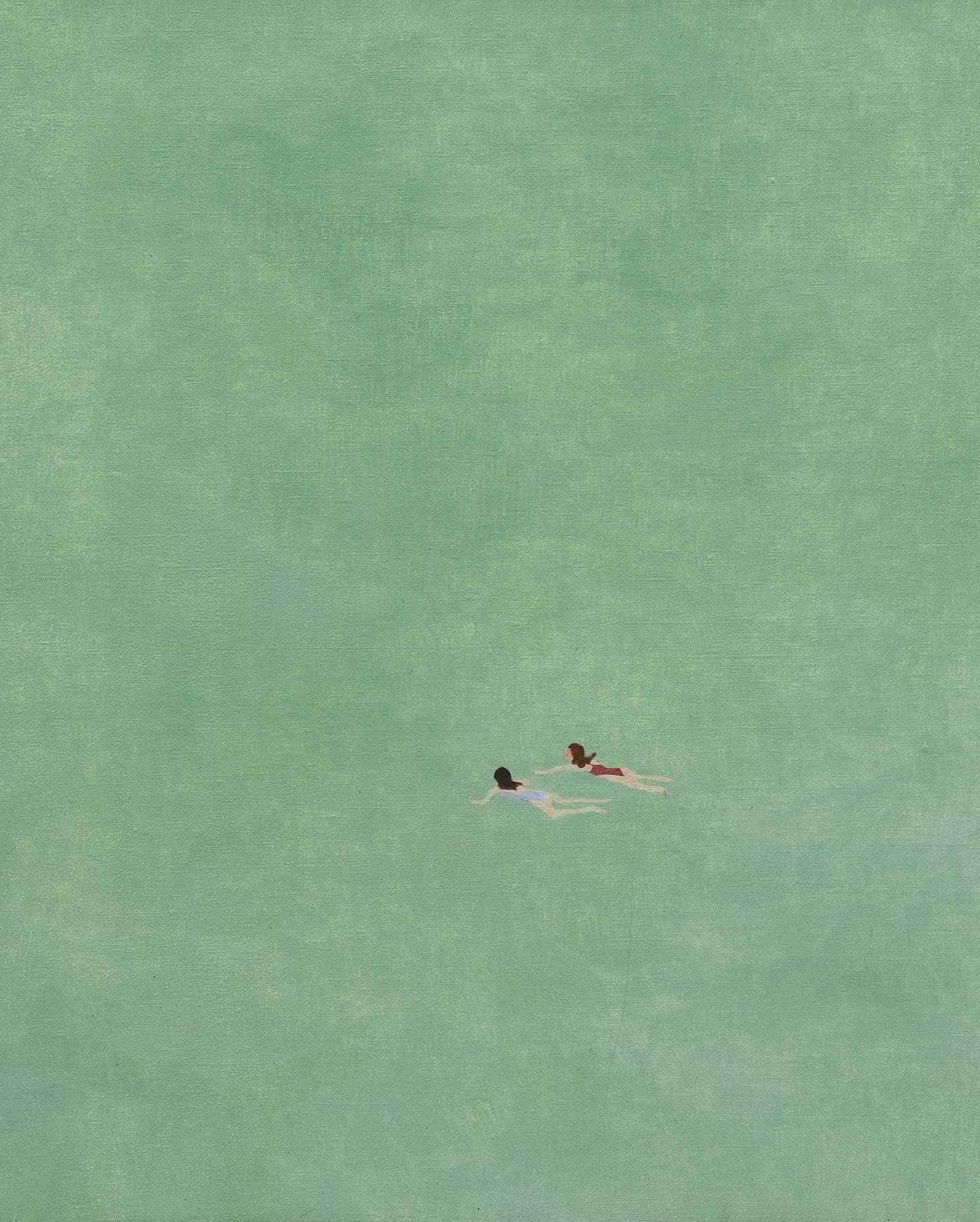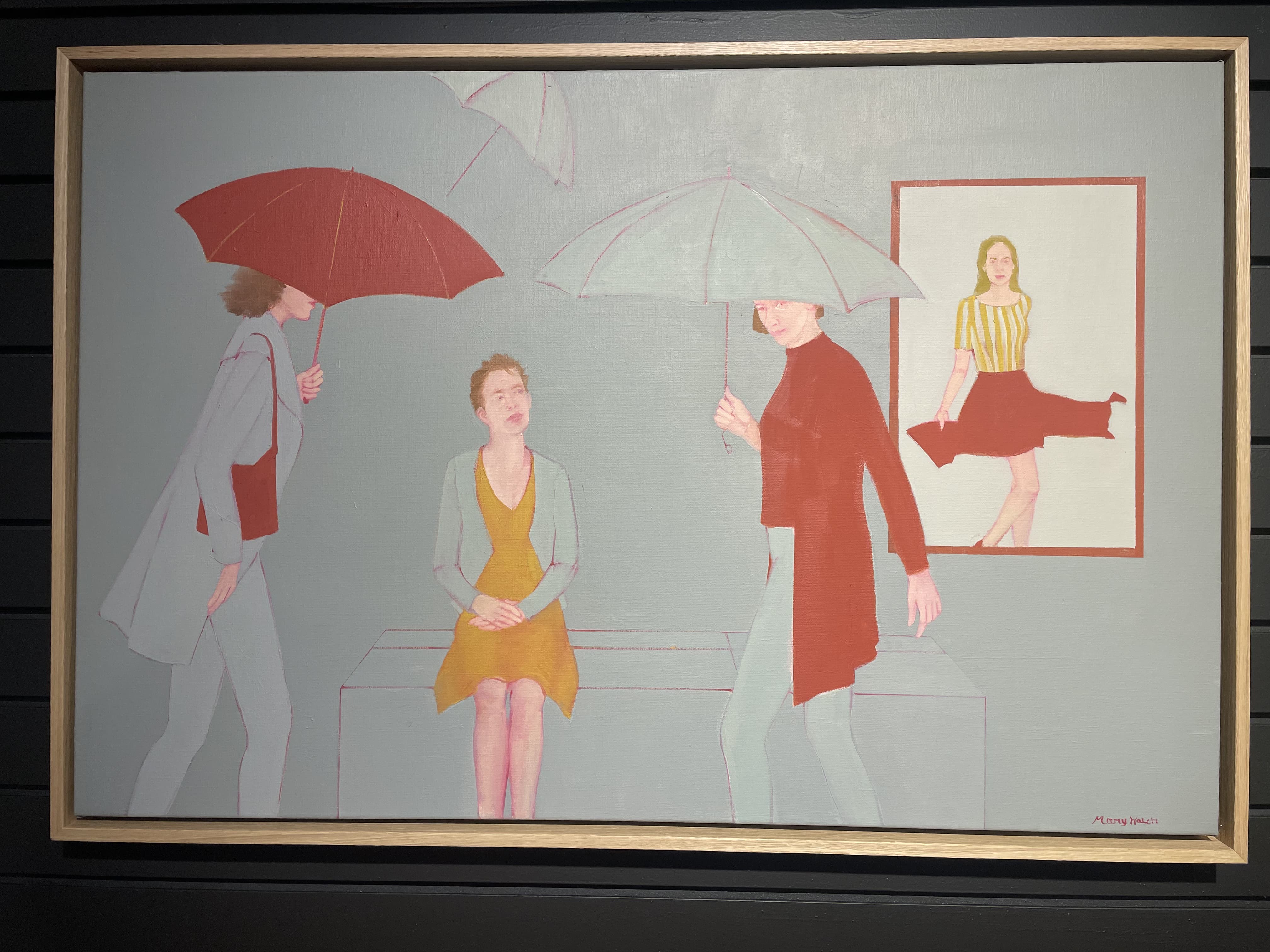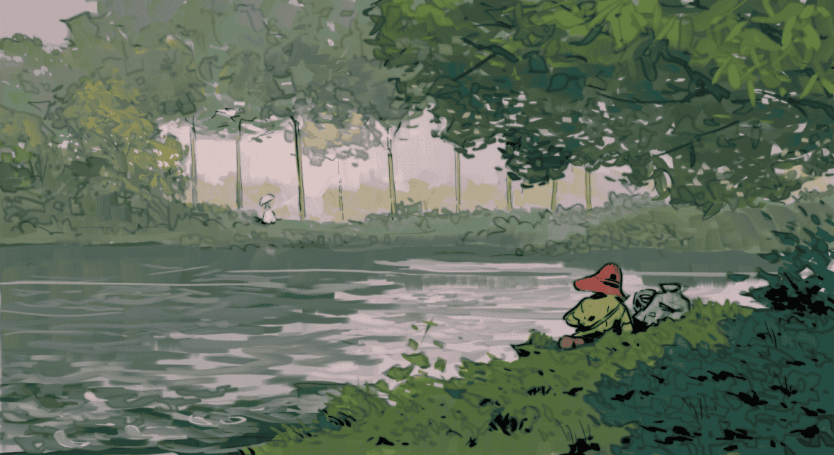 Watercolor Illustration of a Figure Holding a Green Umbrella