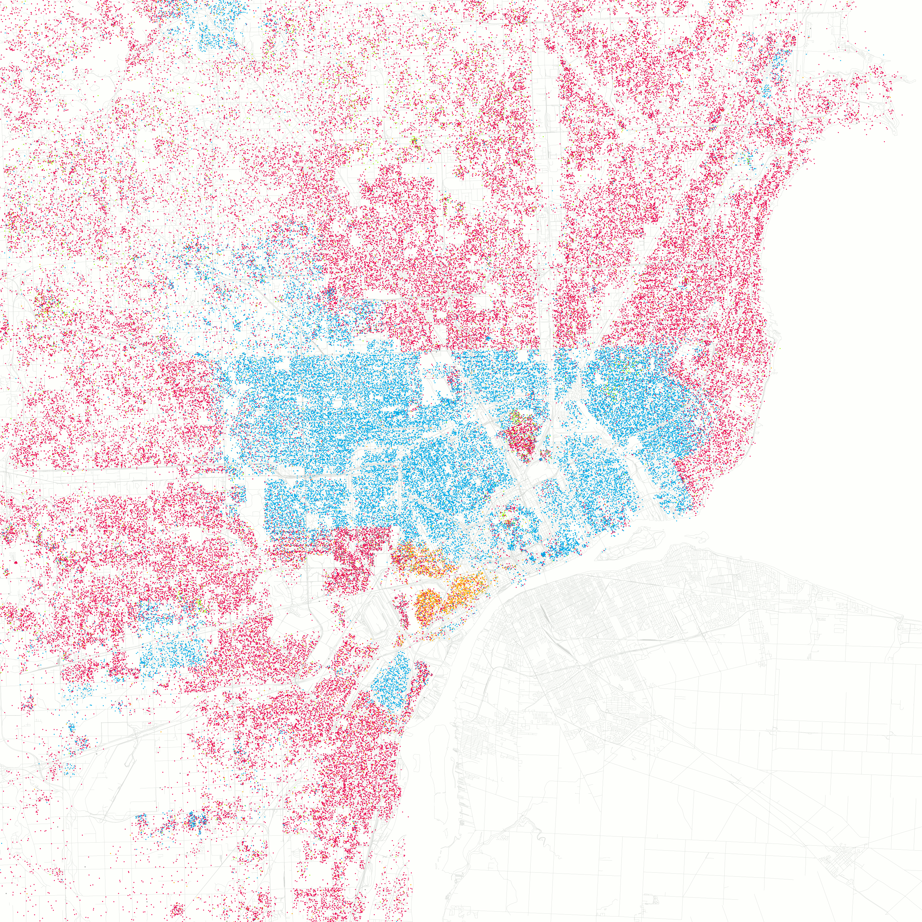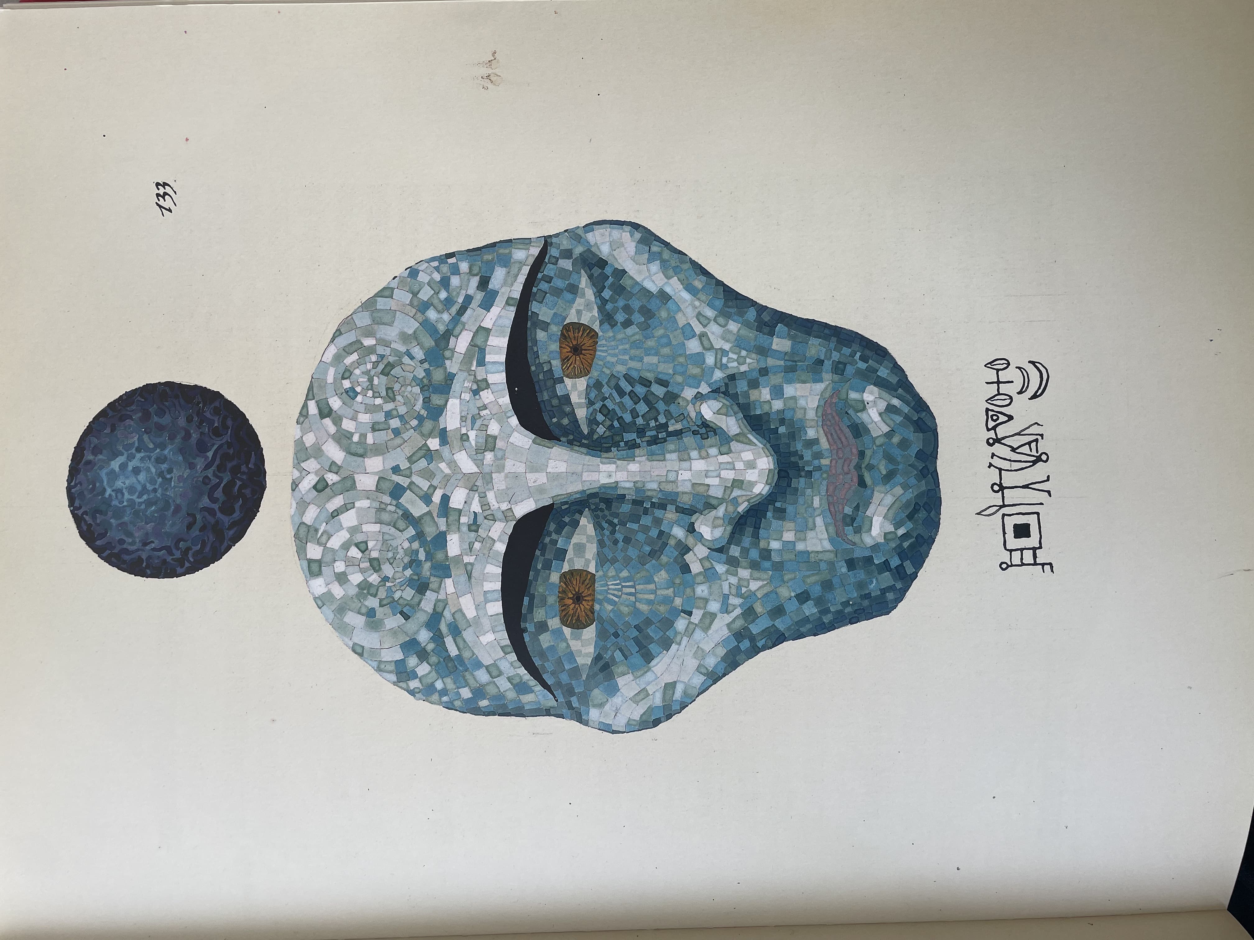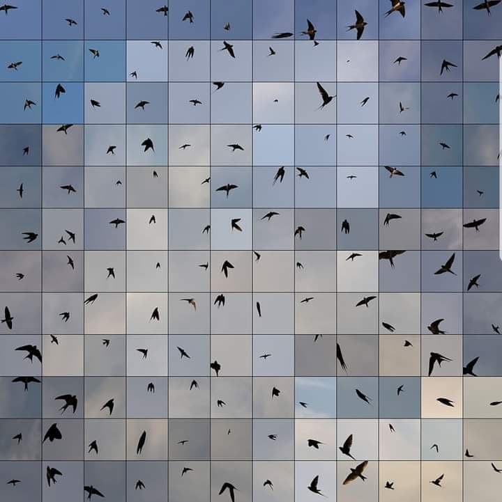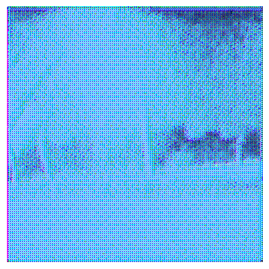Highly Pixelated Close-up of a Blue and White Bird's Head (Likely a Blue Jay)