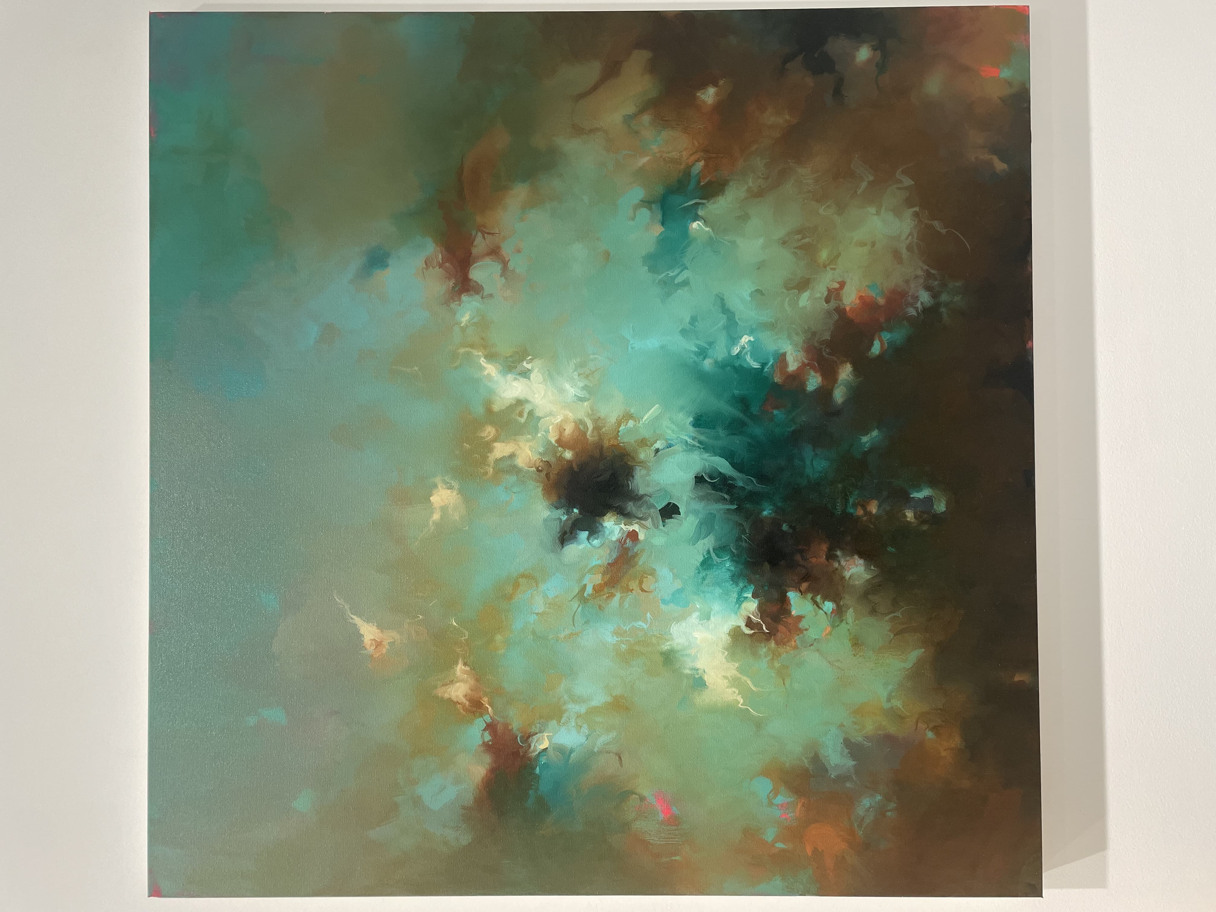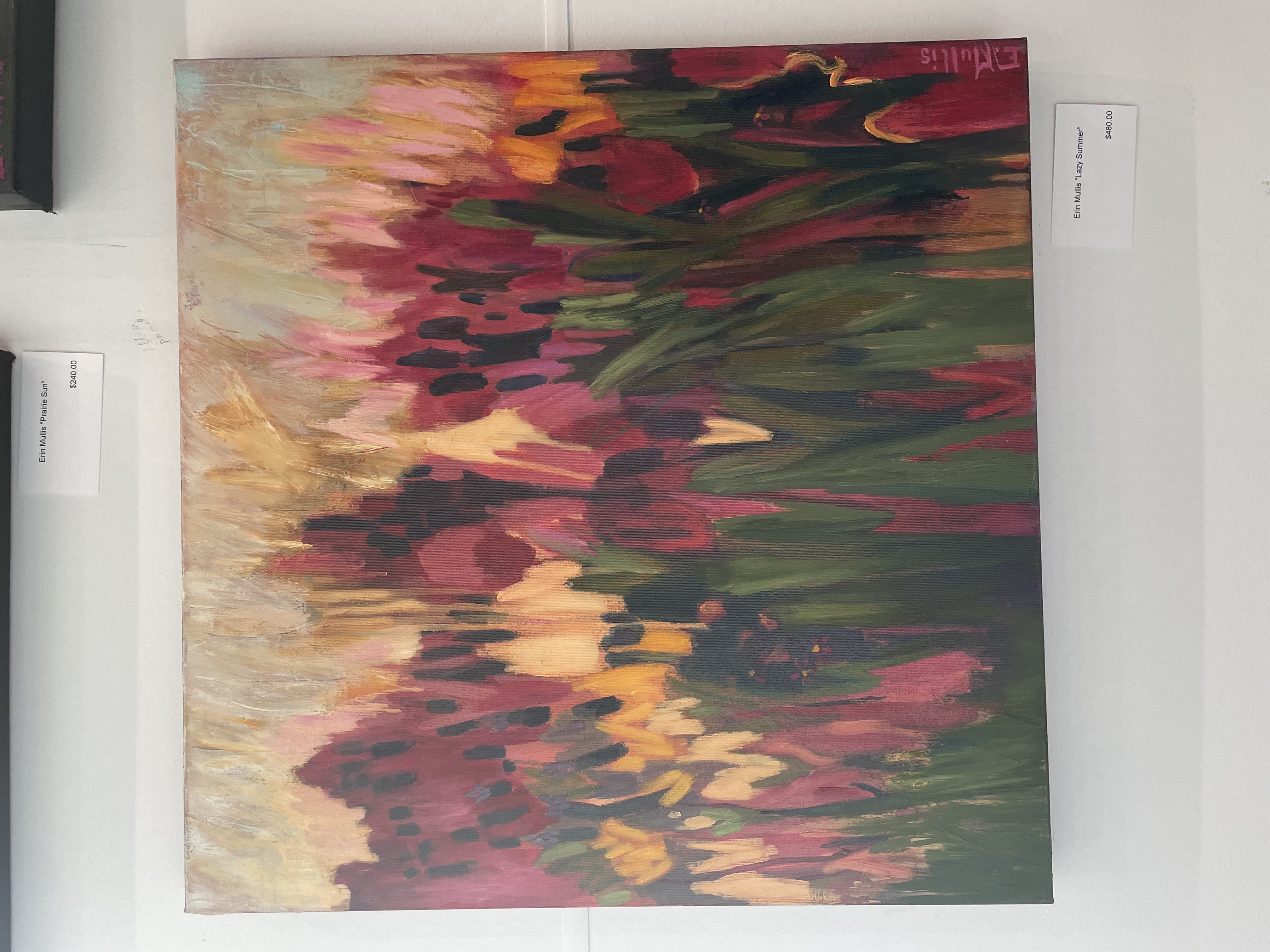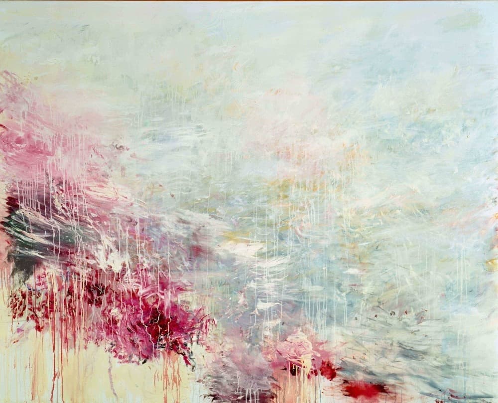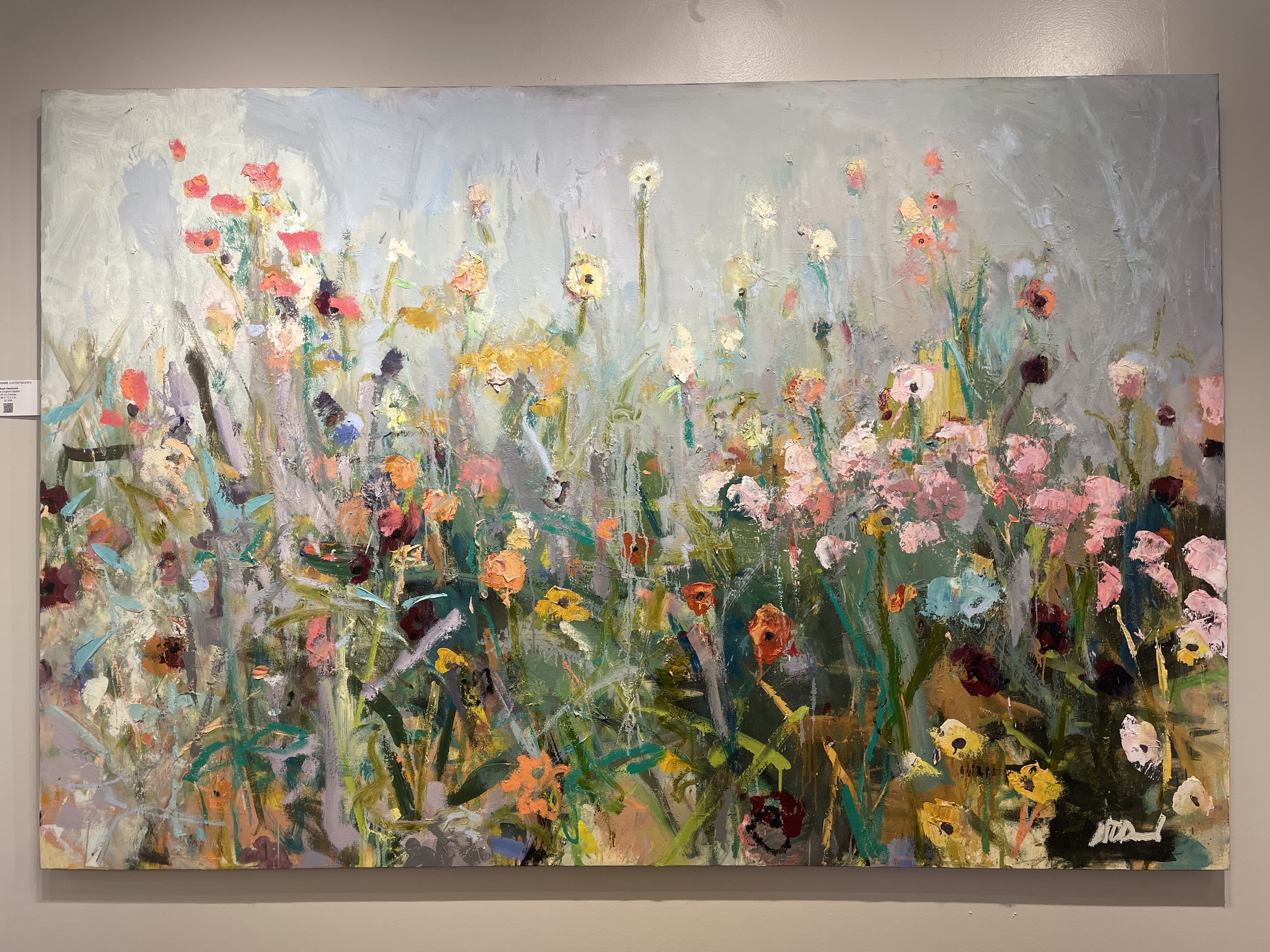 Oil Painting of Pink and Peach Roses in a Garden