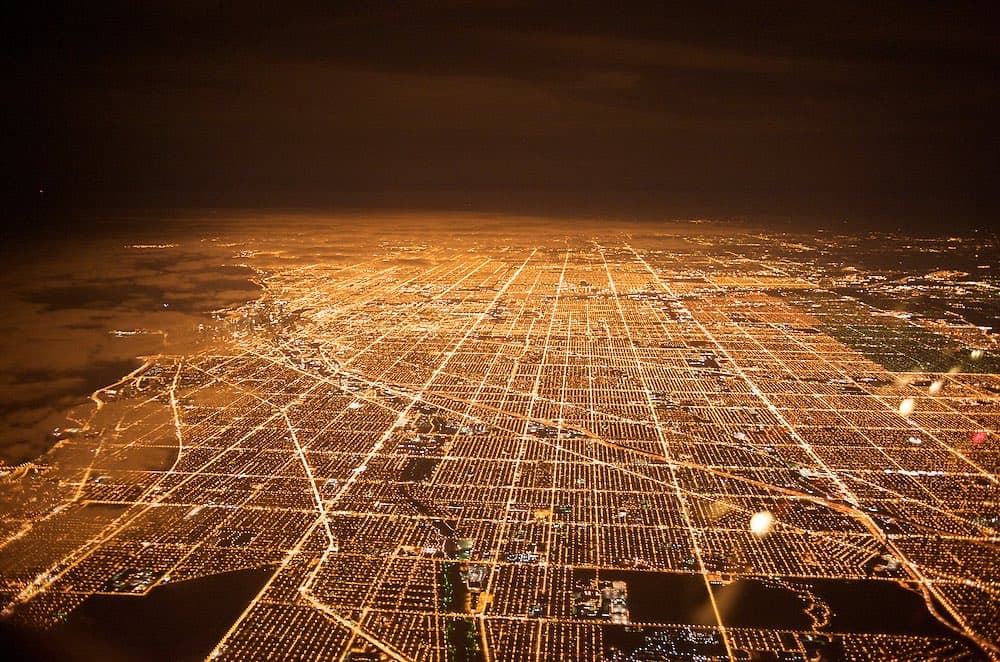 Graphic Comparing Aerial Maps of Siena City Center and Houston Highway Interchange
