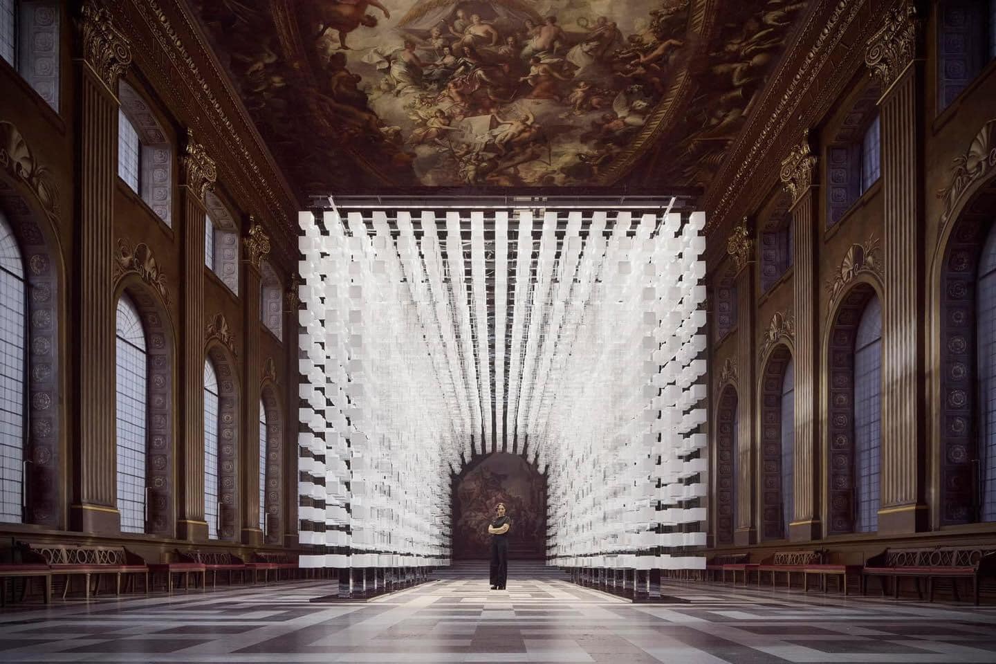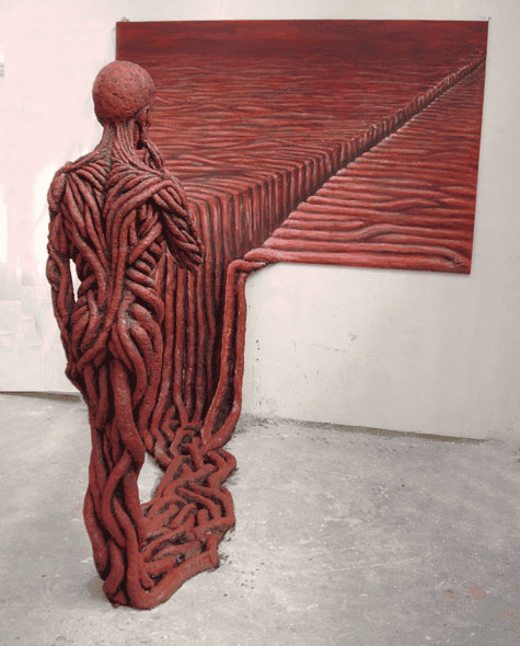 Installation of Red Hollow Bricks in a White Gallery Space