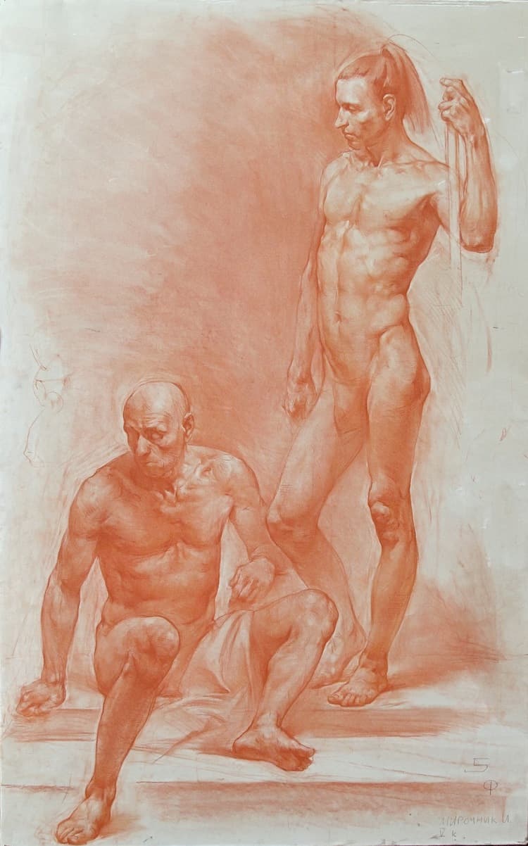 Study of Two Standing Figures (A Draped Man and a Nude Man) by Michelangelo (c. 1504–1505)