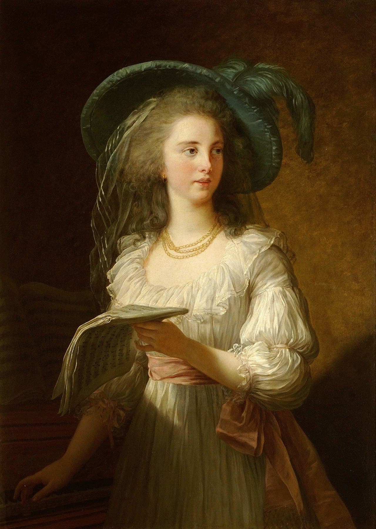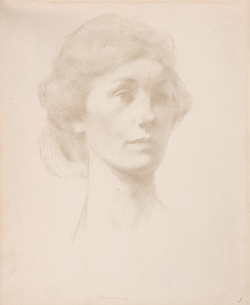 Head and shoulders of a young woman, looking down by Leonardo da Vinci (c. 1508)